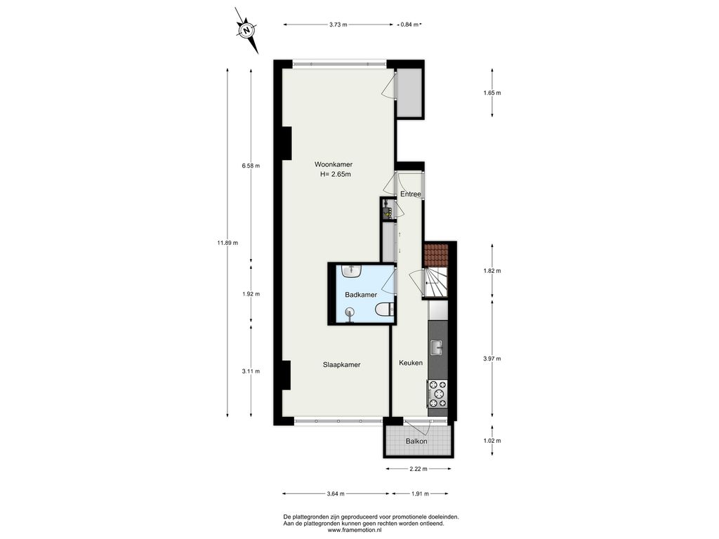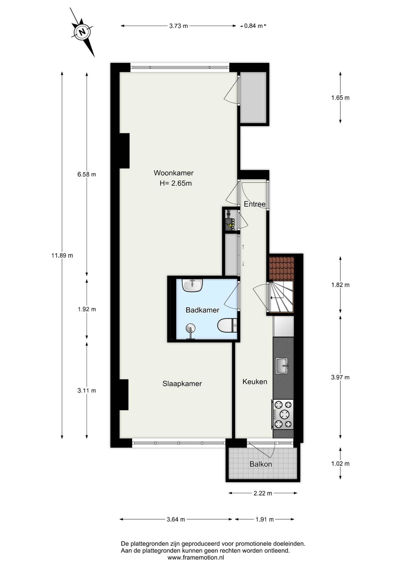 Gebruiksoppervlak 1e verdieping ca. 61 m²