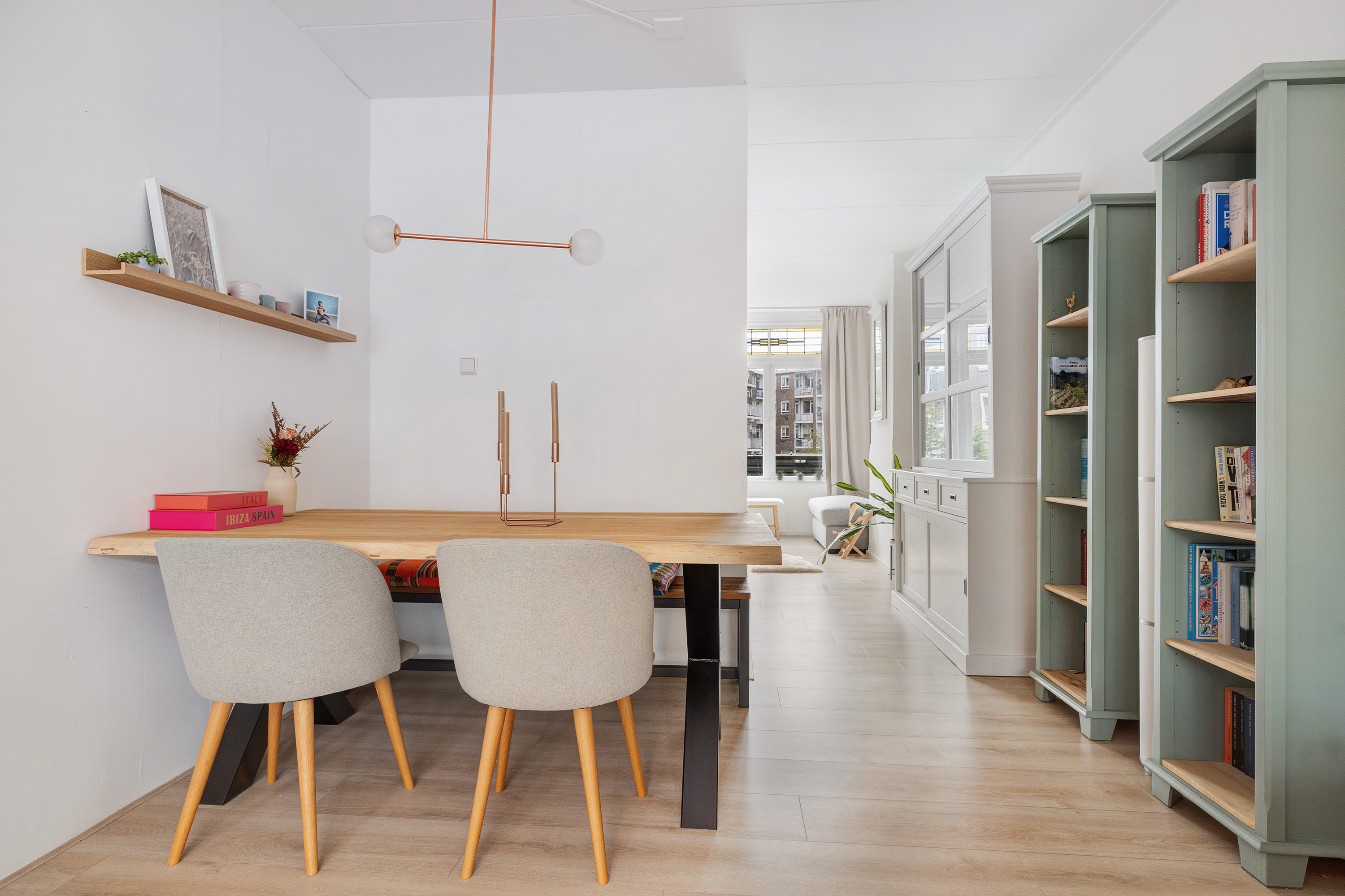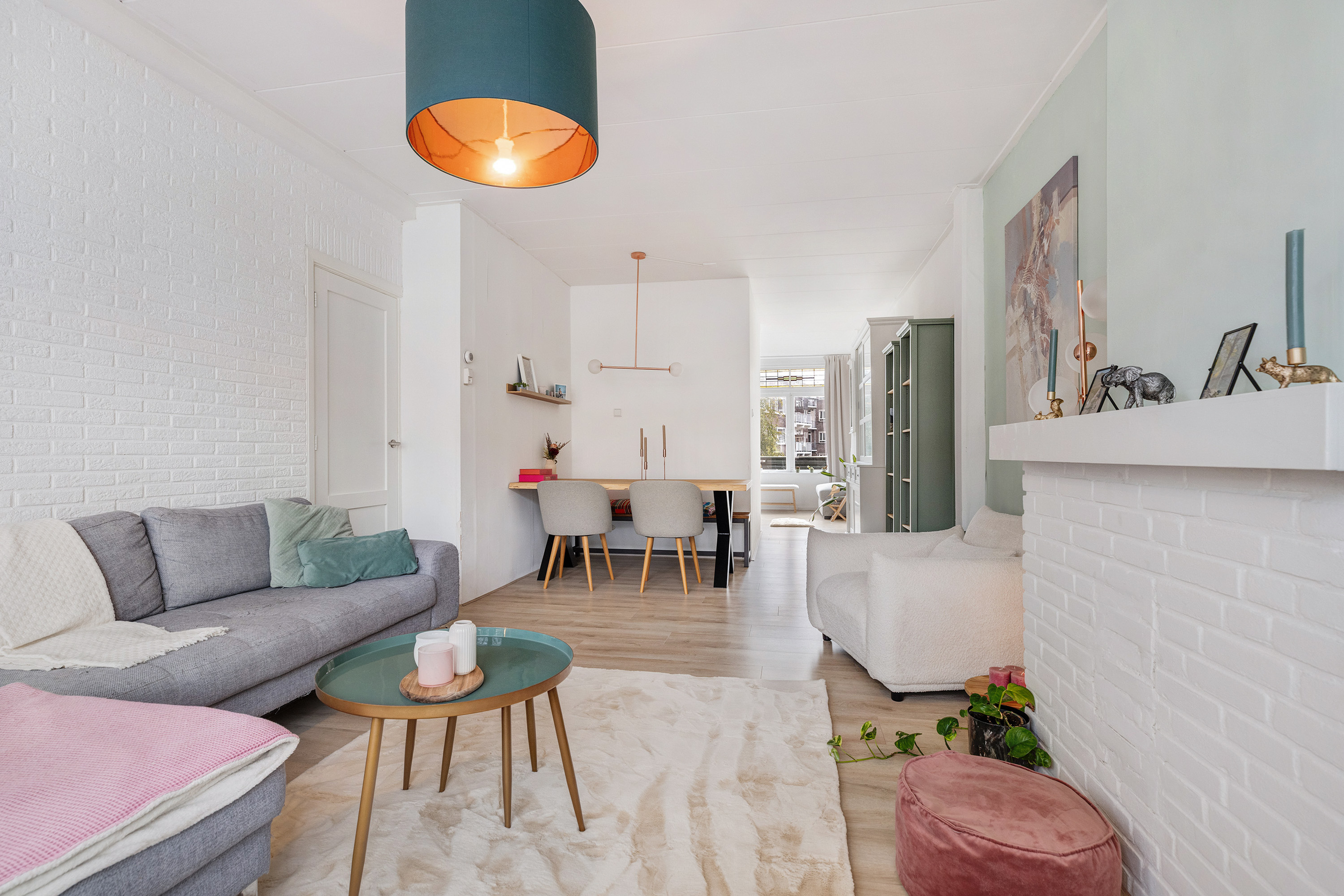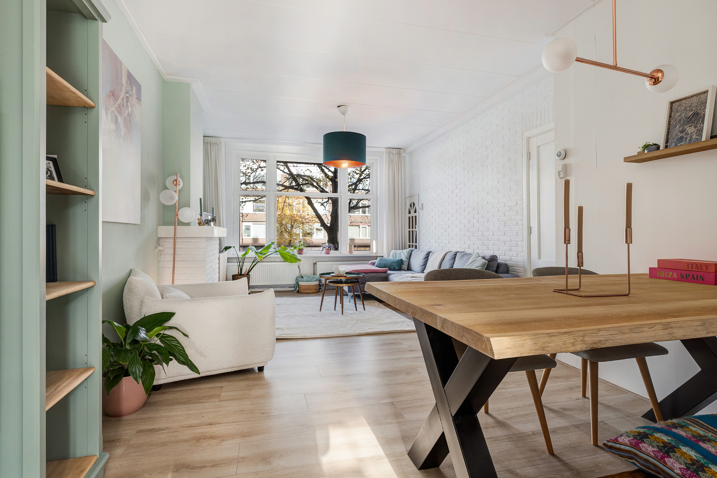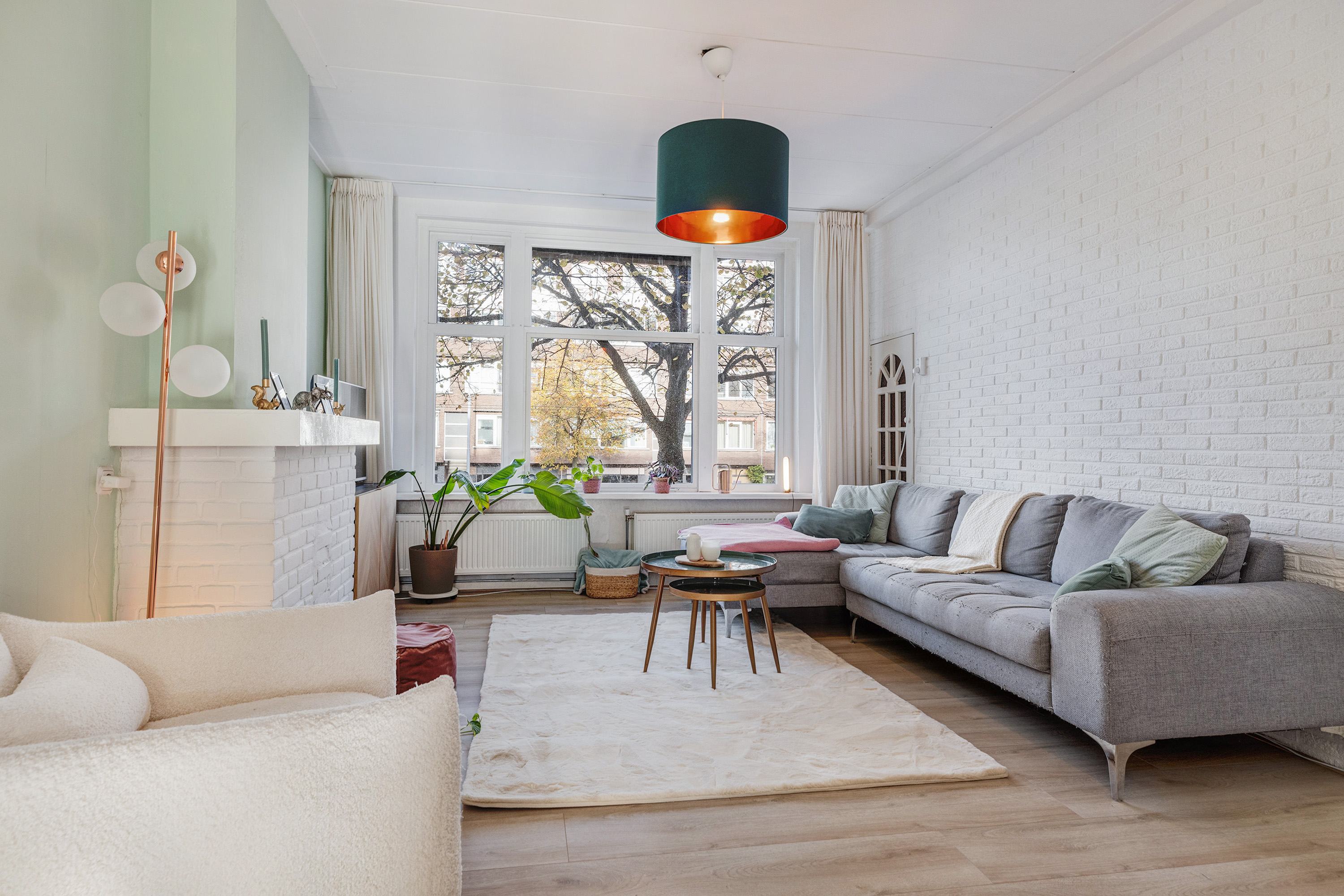 Lichte, sfeervolle woonkamer aan de voorzijde