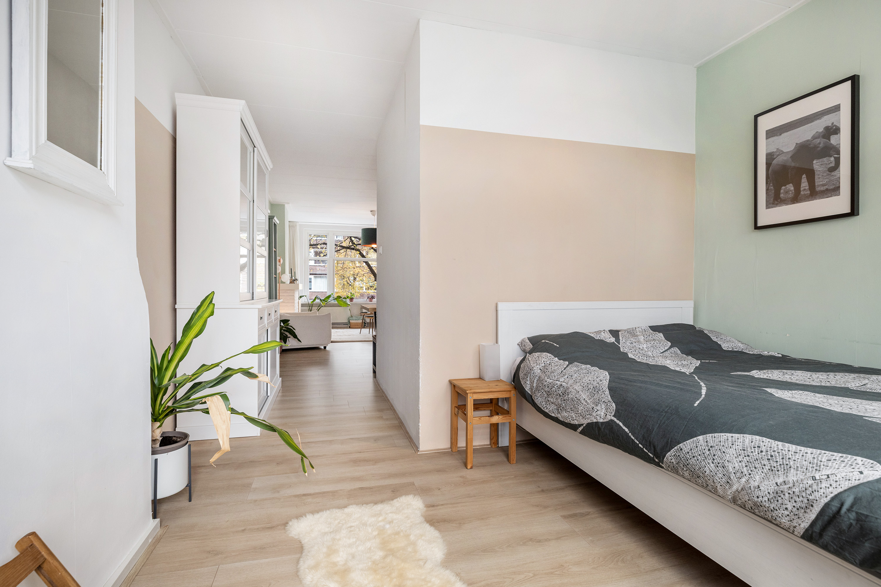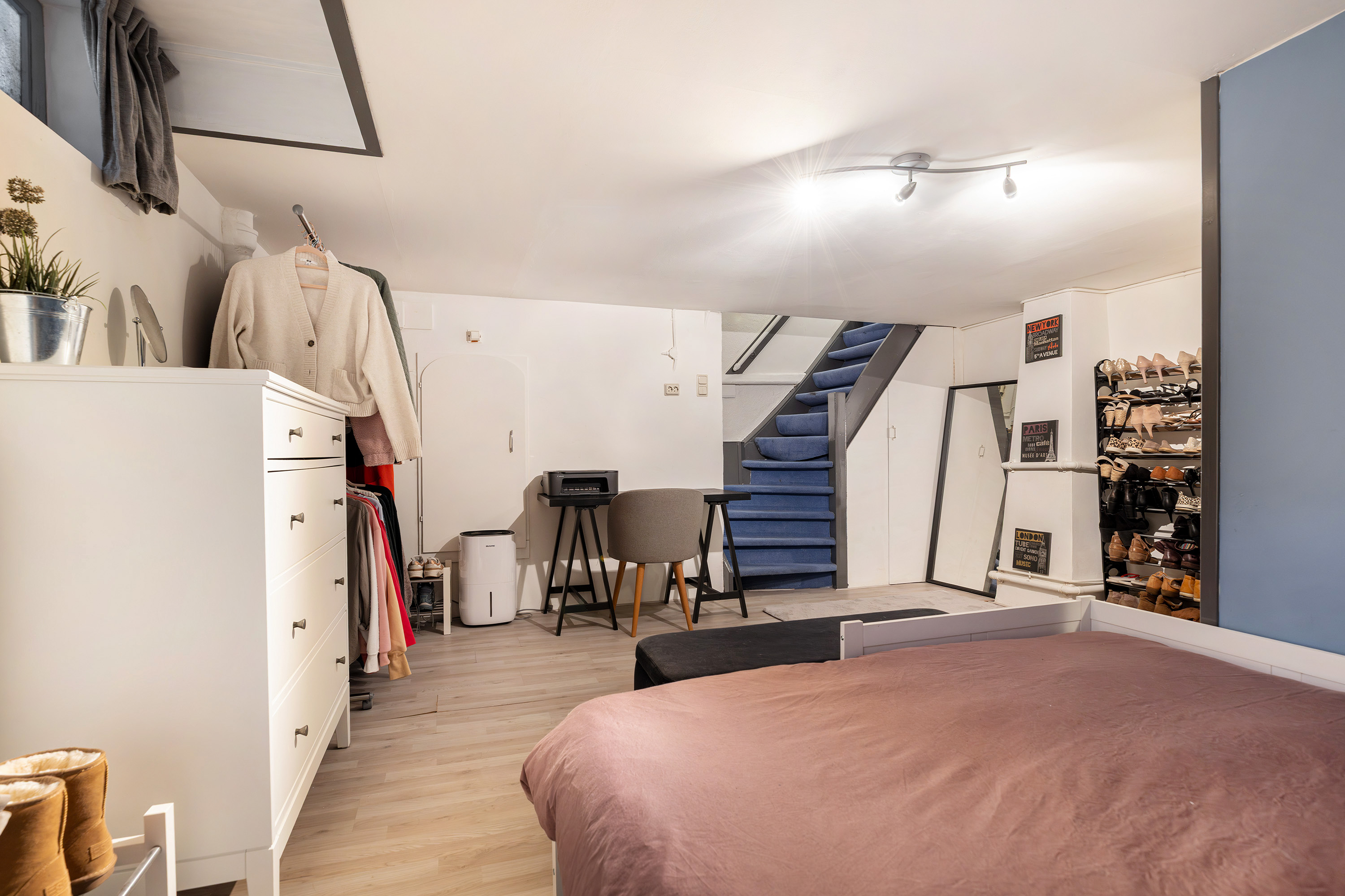 Multifunctionele ruimte/slaapkamer met aparte ruimte voor wasapparatuur