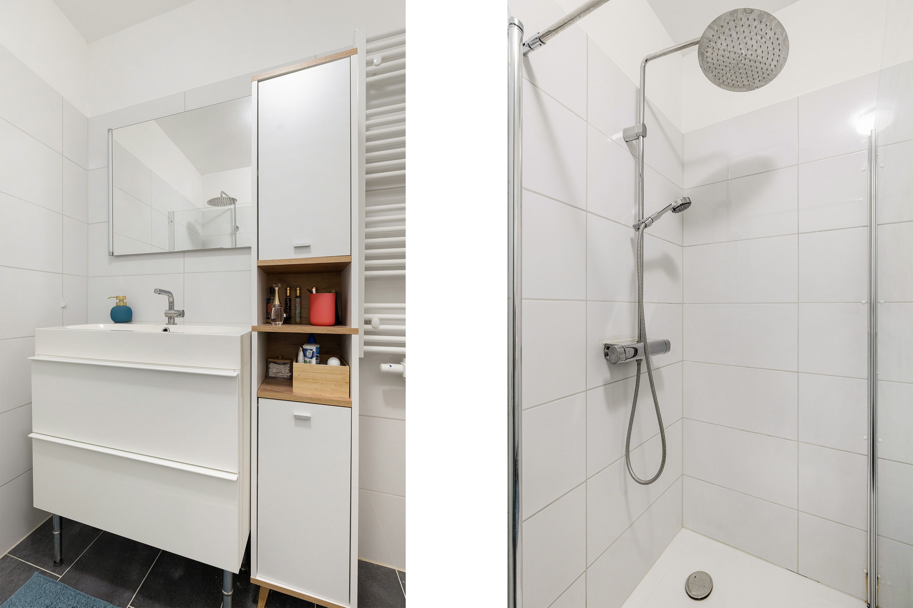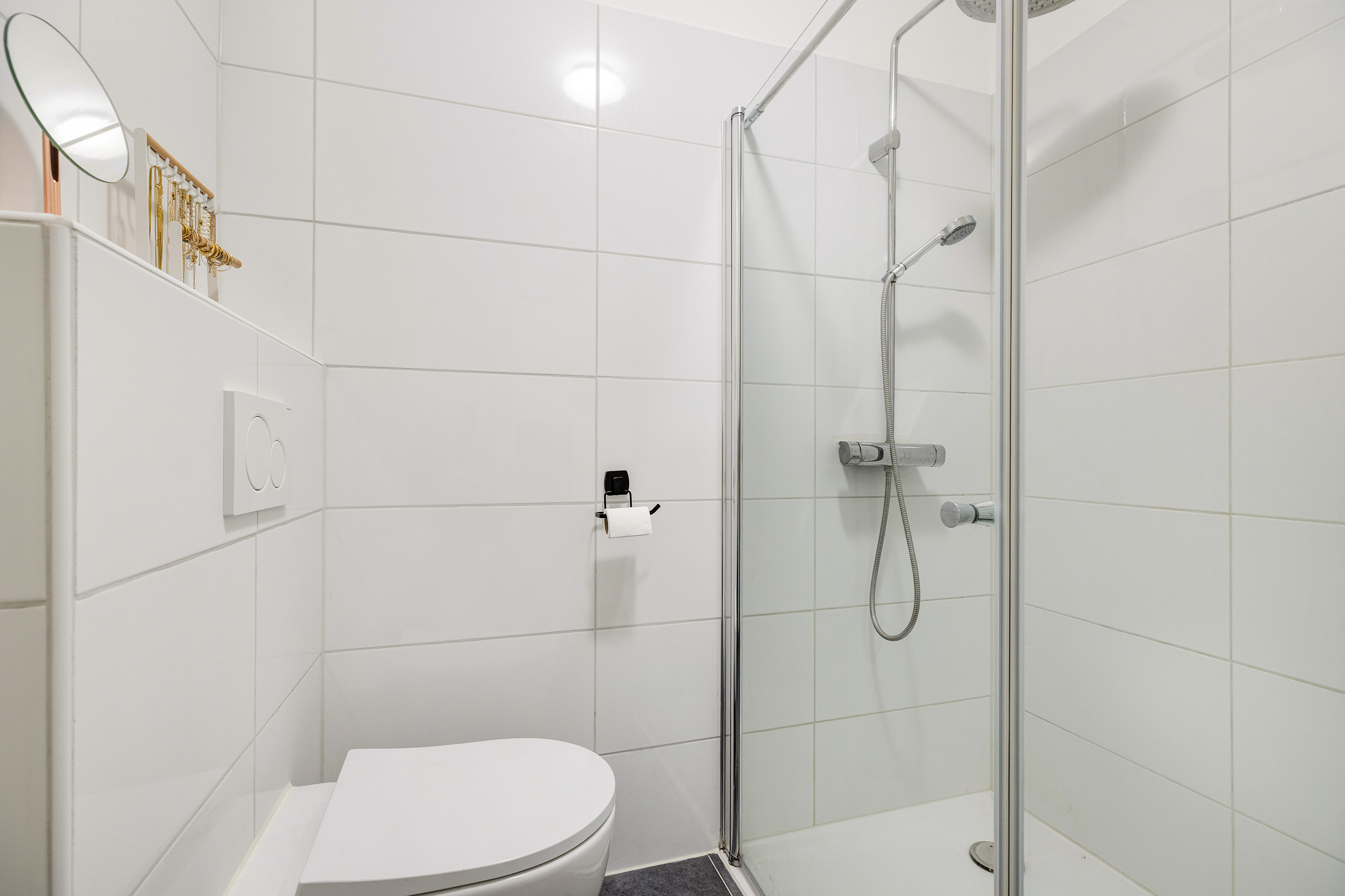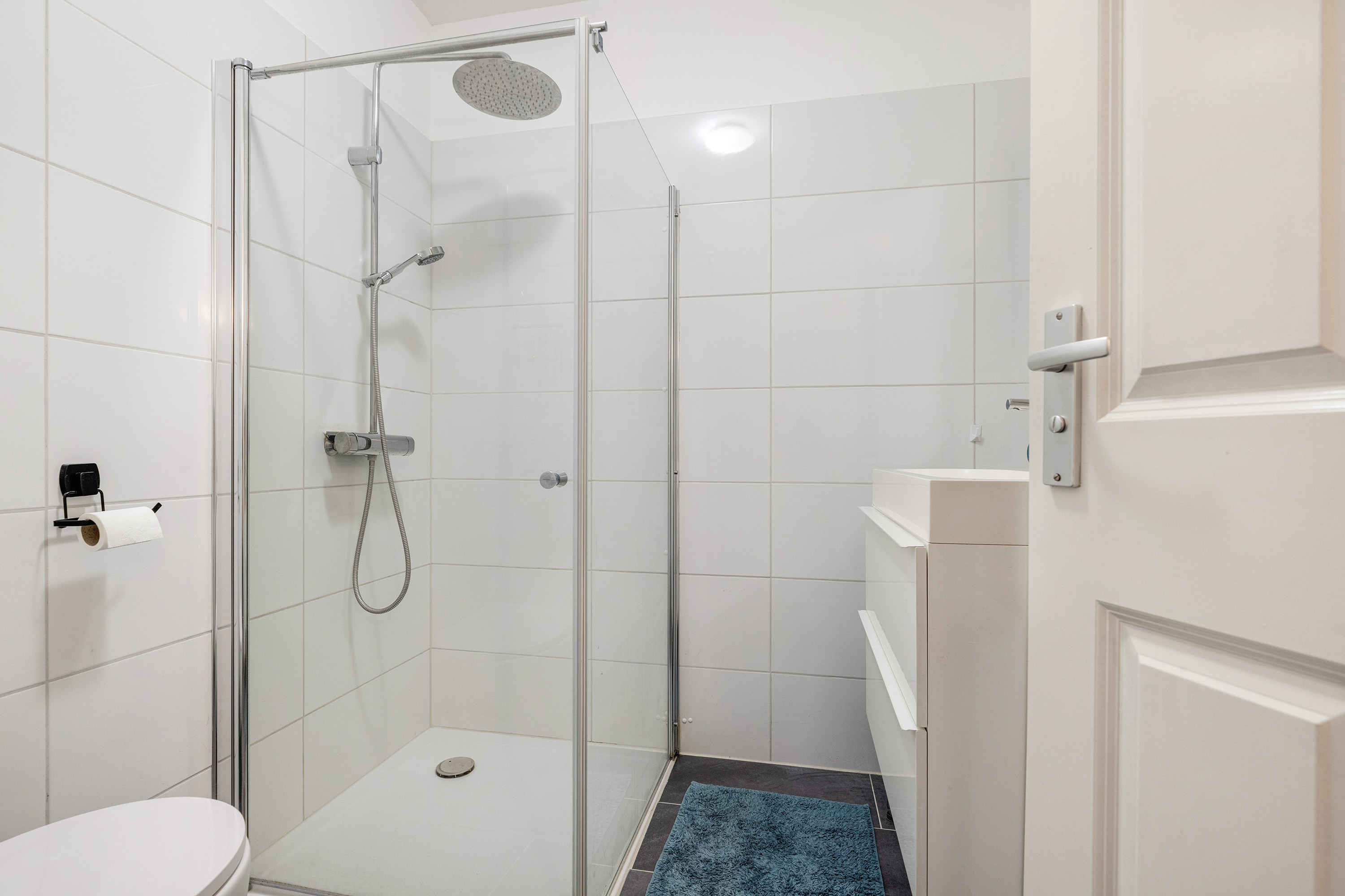 In 2020 vernieuwde badkamer met douche, WC en wastafel