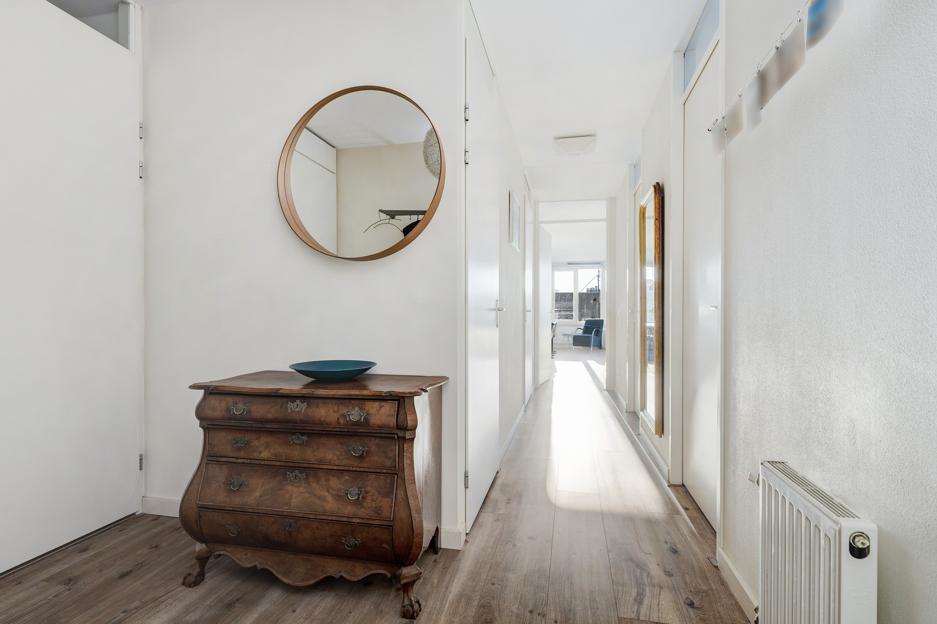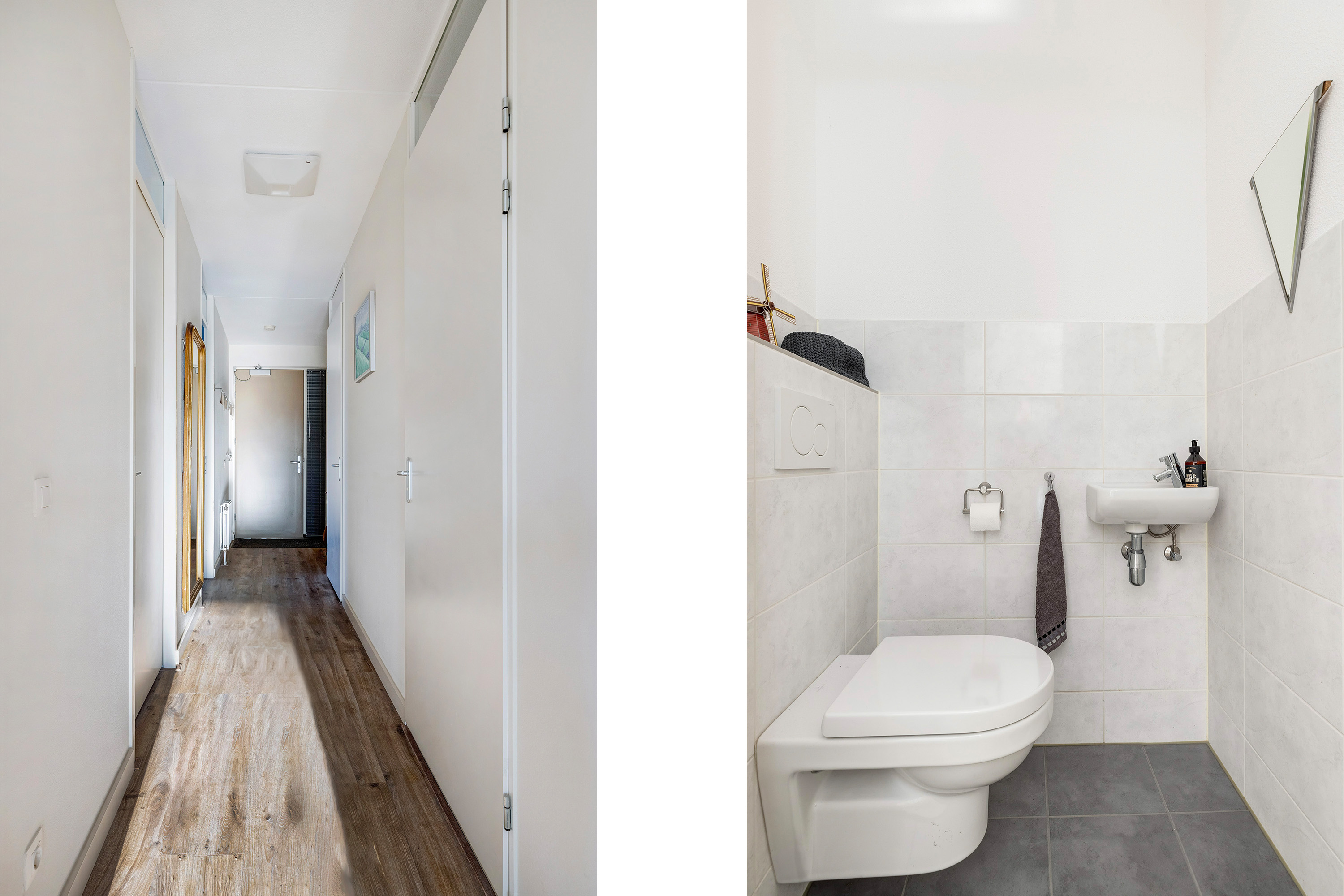 Royale gang met ruimte voor de garderobe, modern toilet, meterkast en toegang naar de verschillende vertrekken.