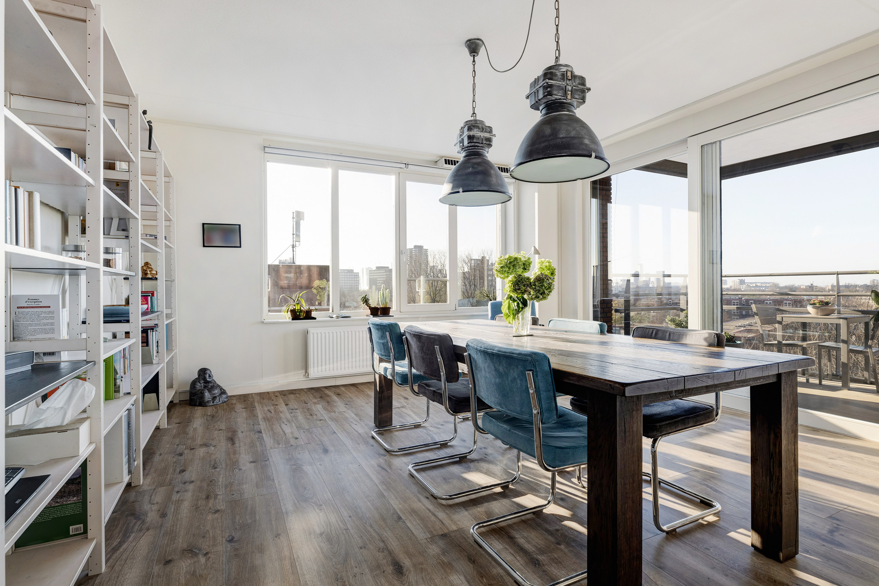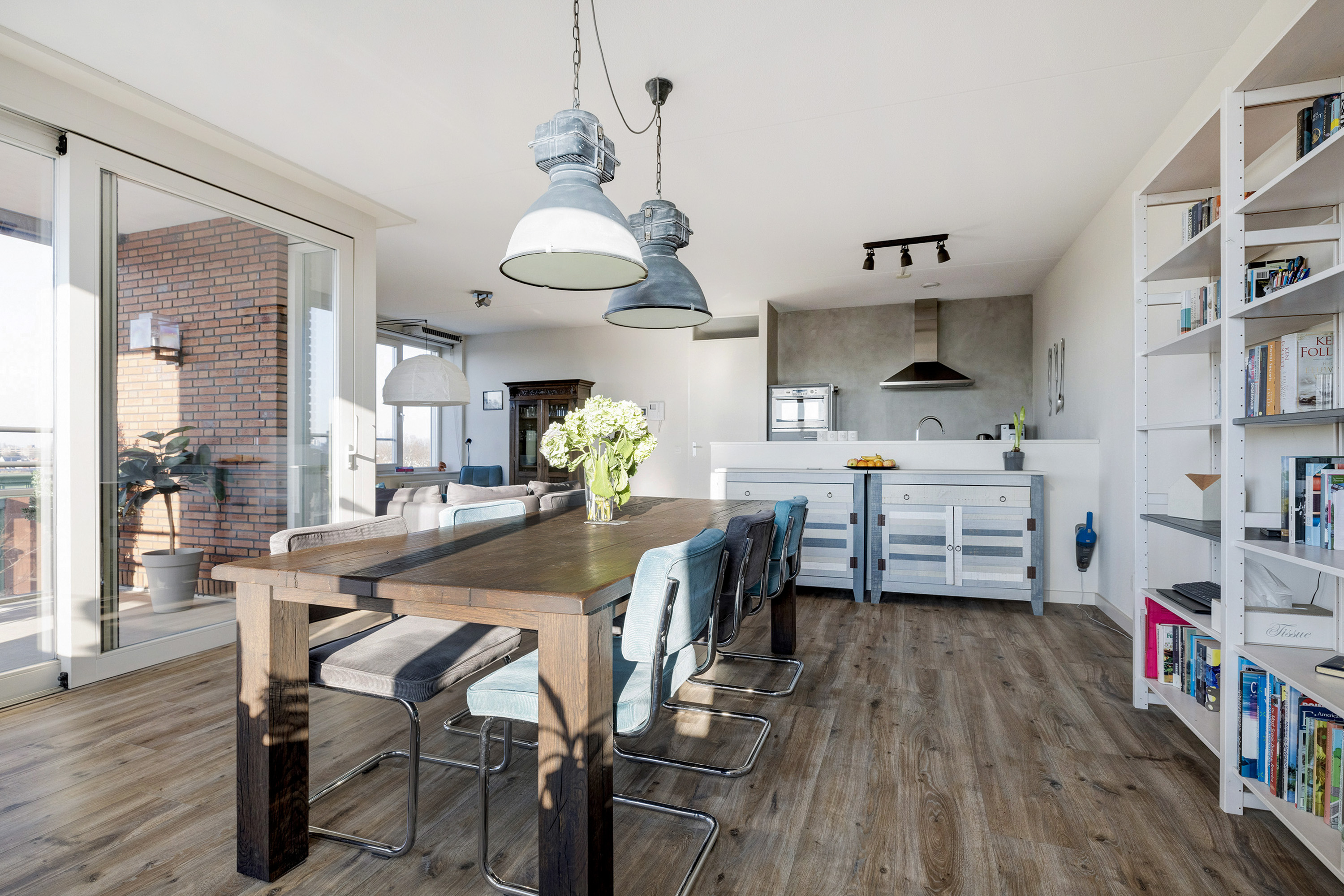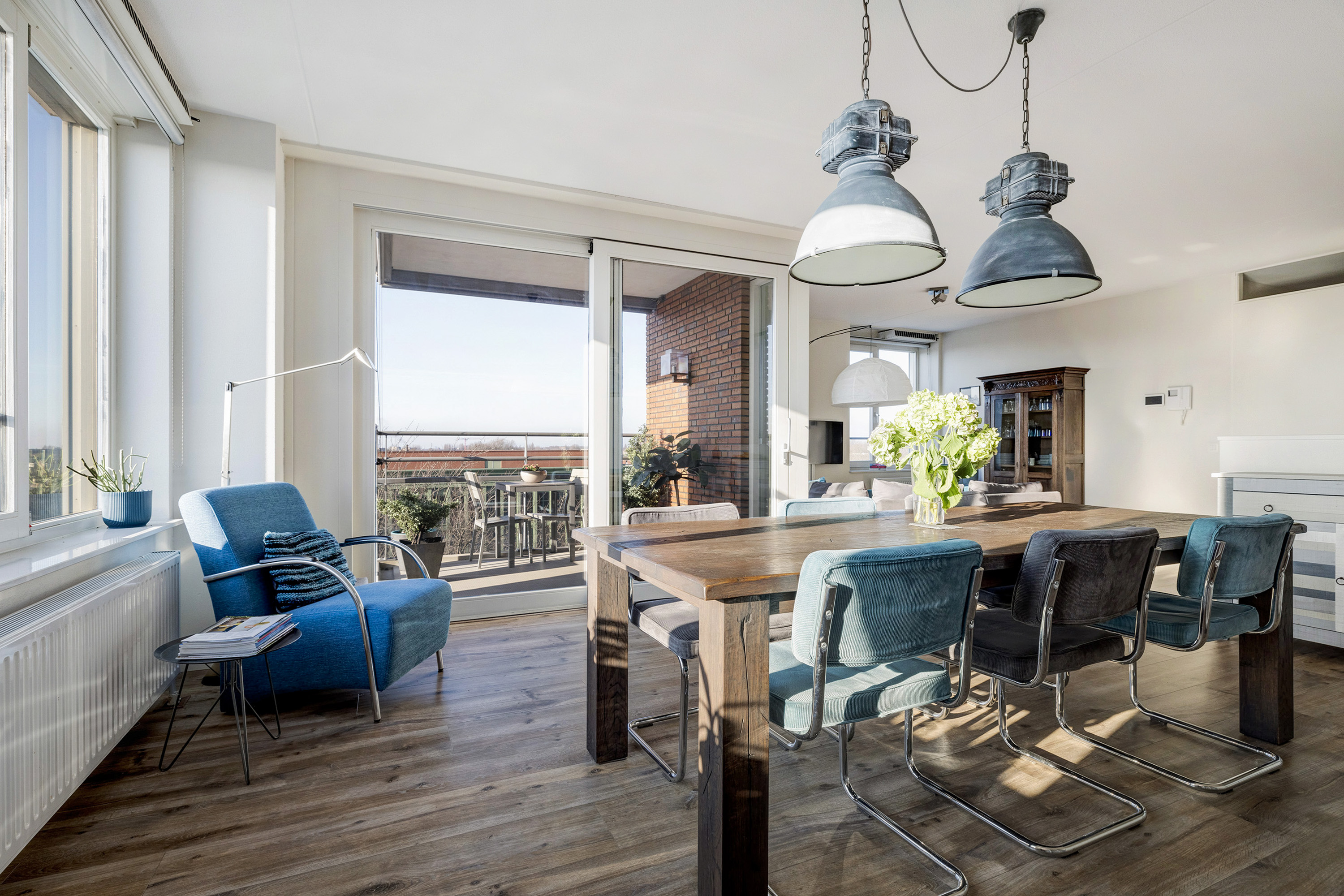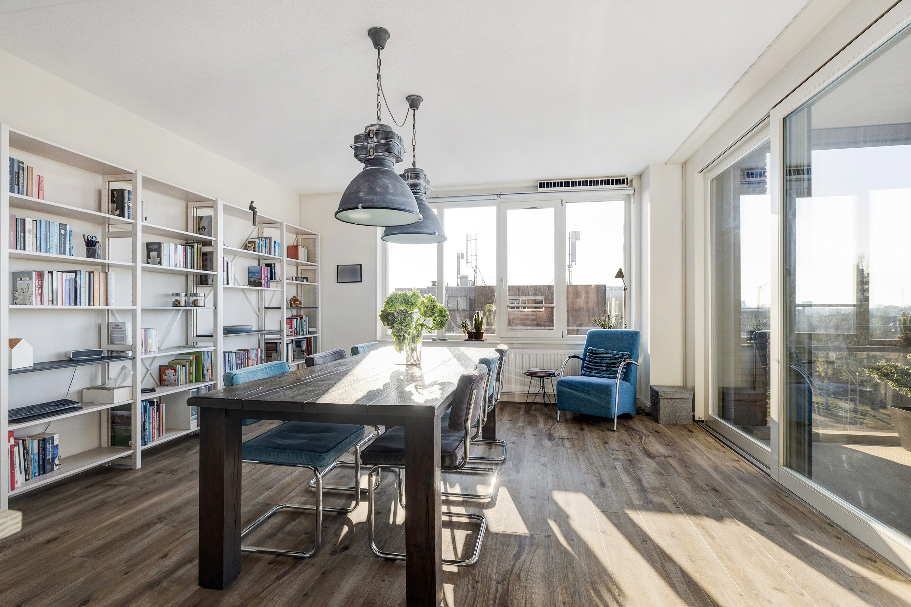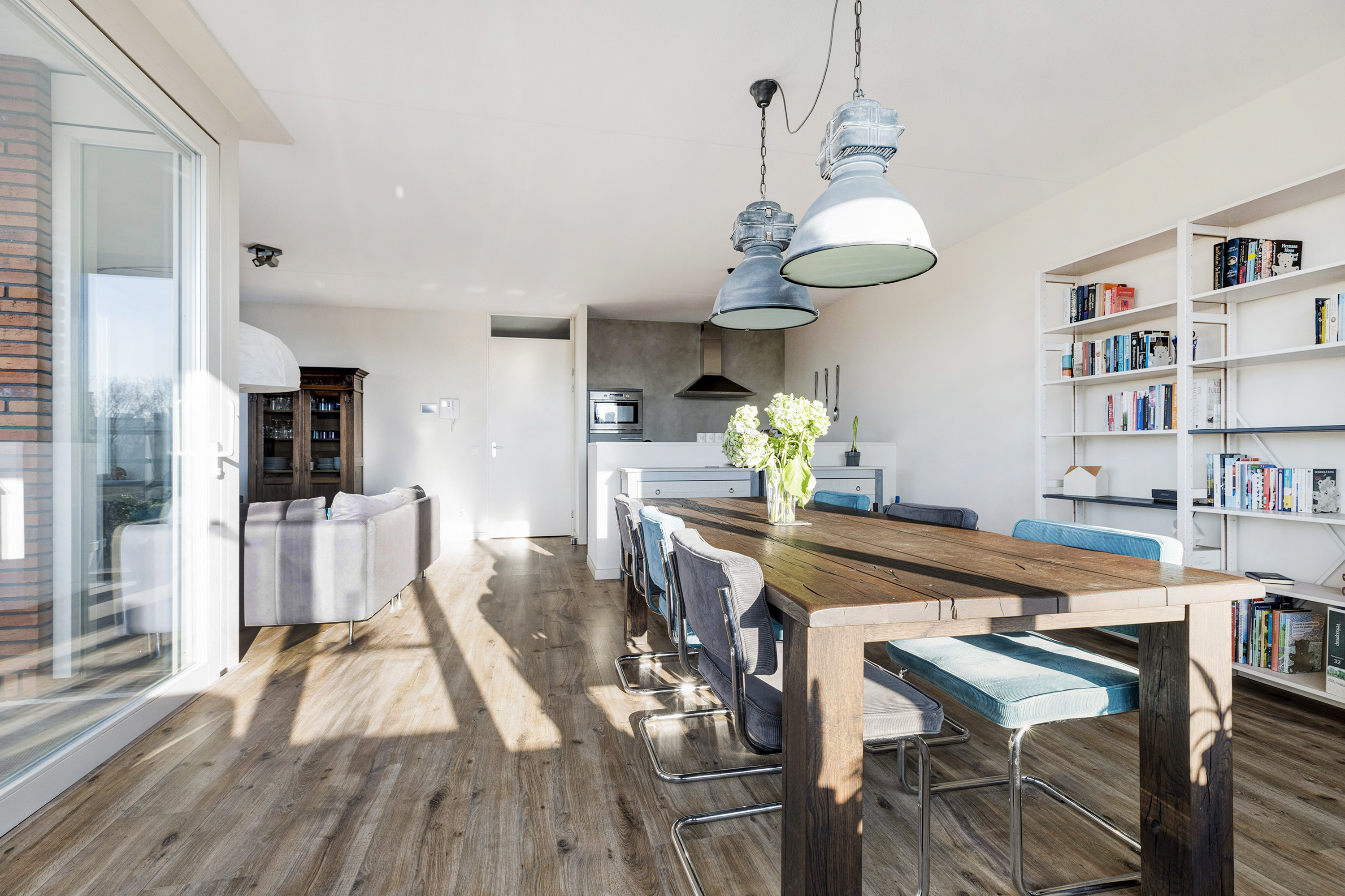 Door de vele raampartijen en de ligging op het westen, is dit een hele lichte woning.