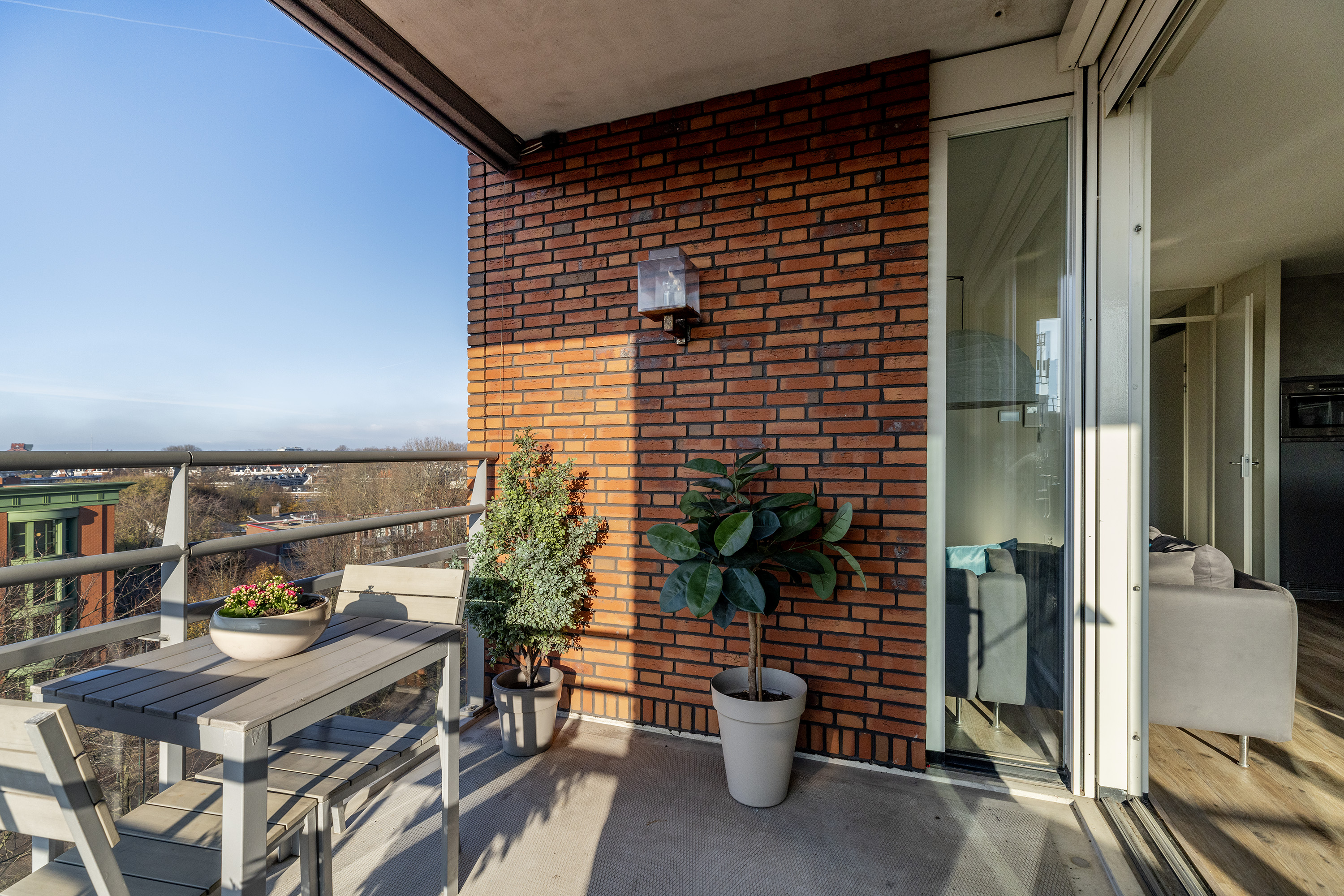 Ruim balkon op het westen met mooi uitzicht en privacy