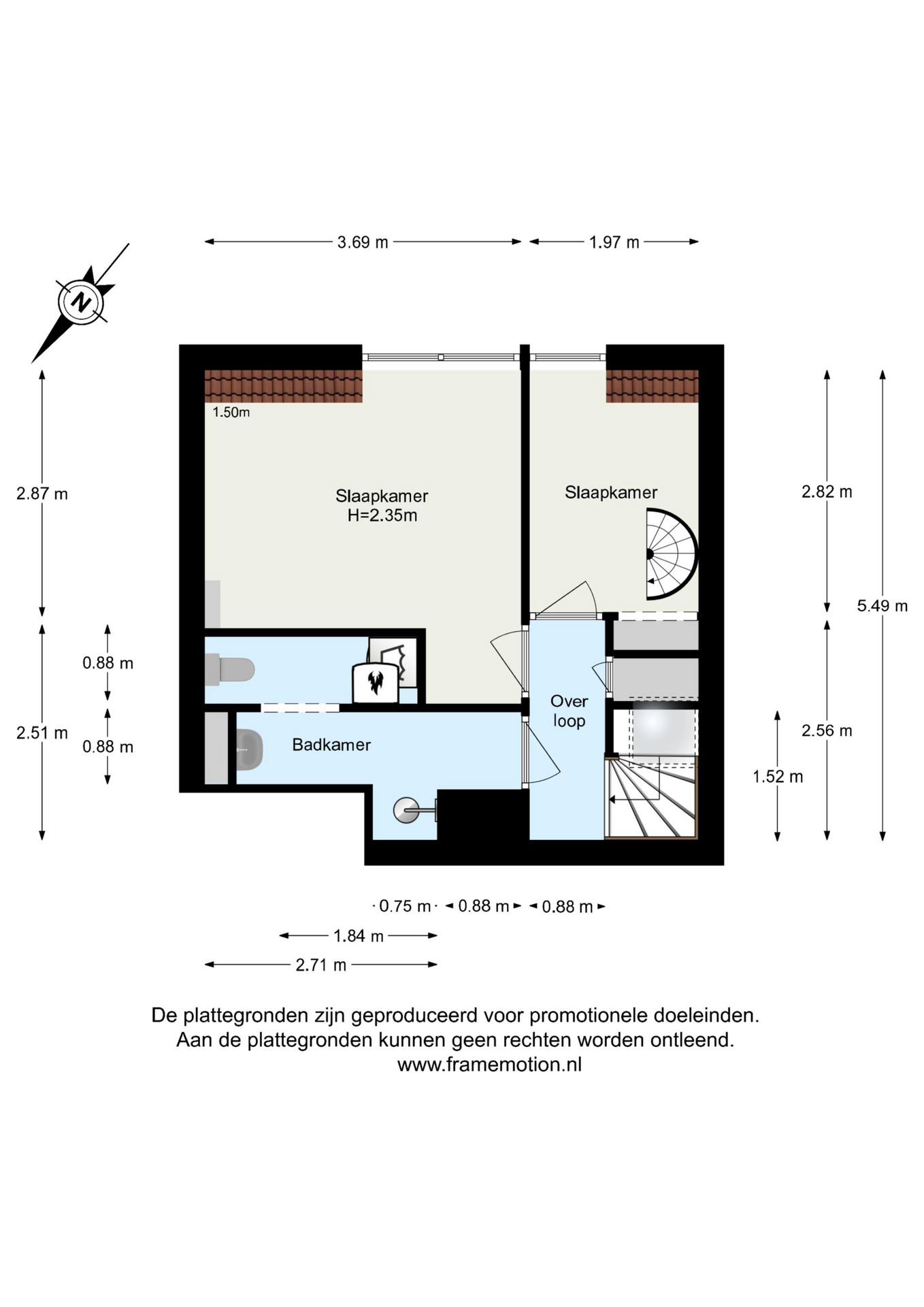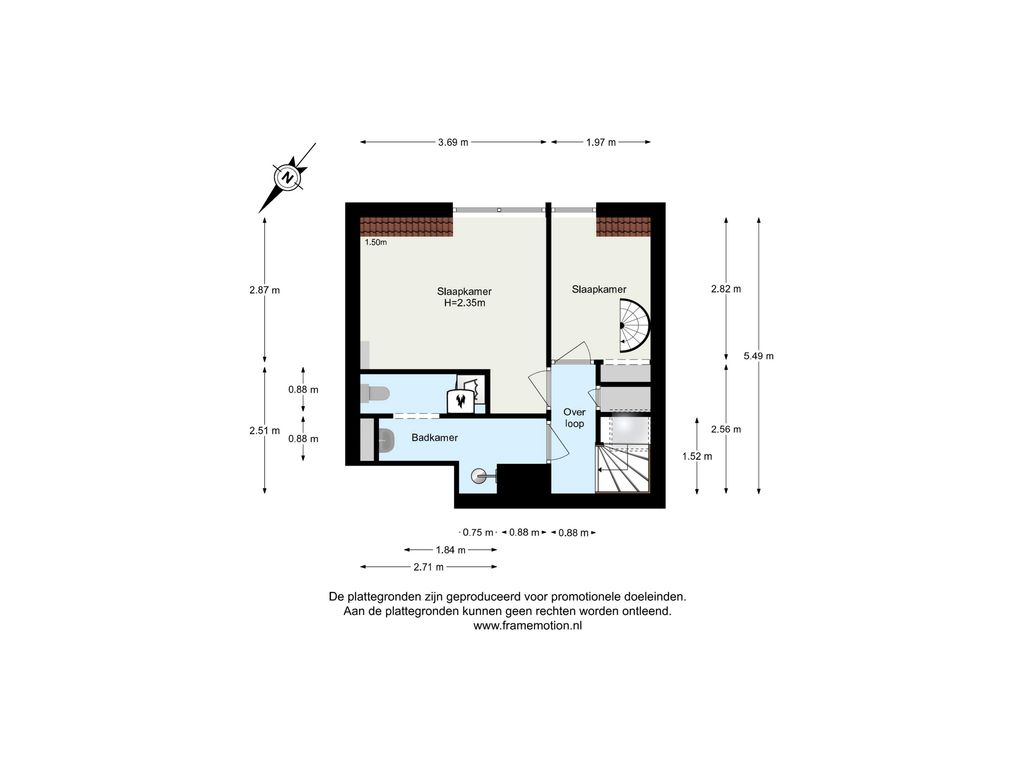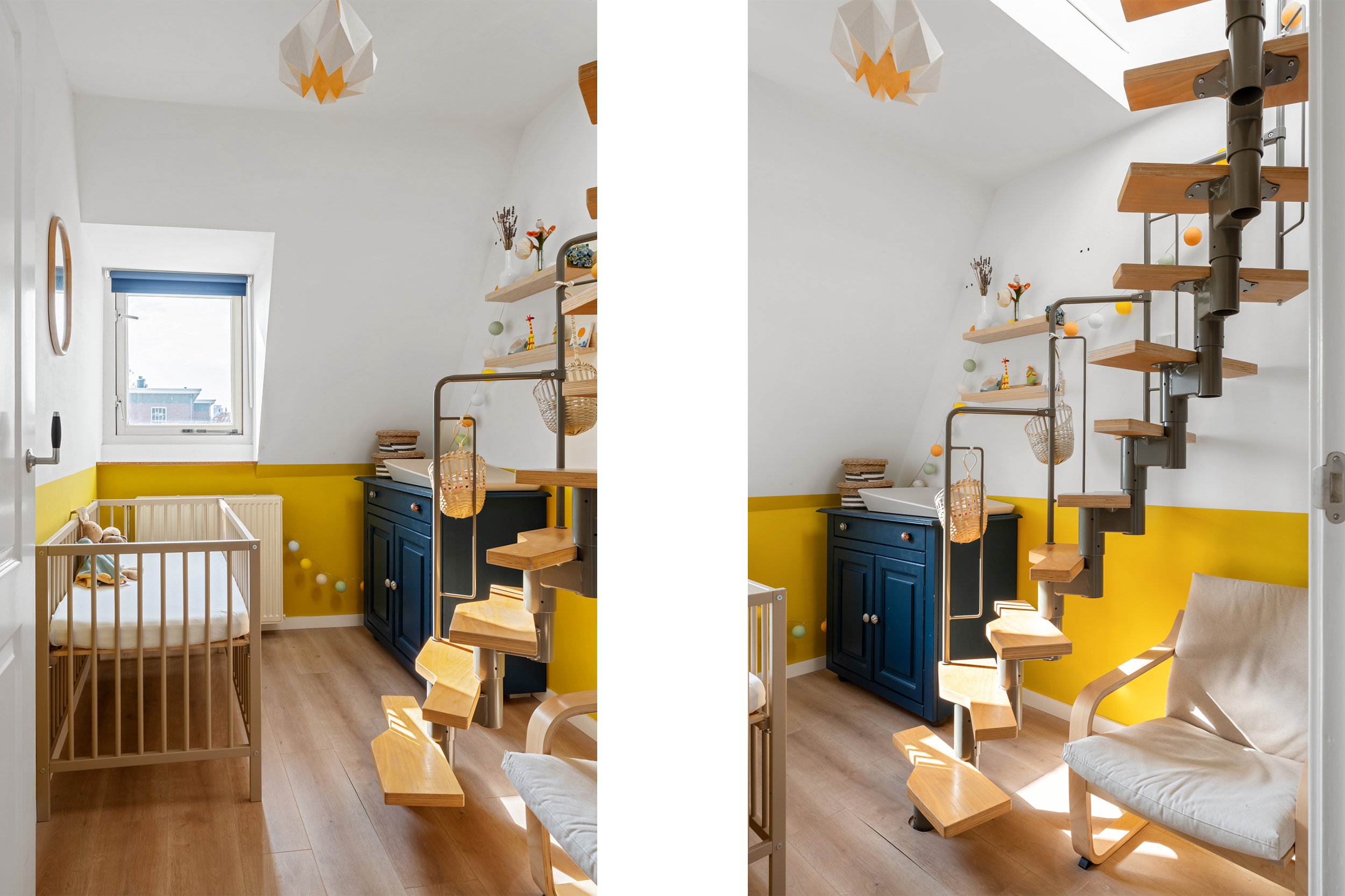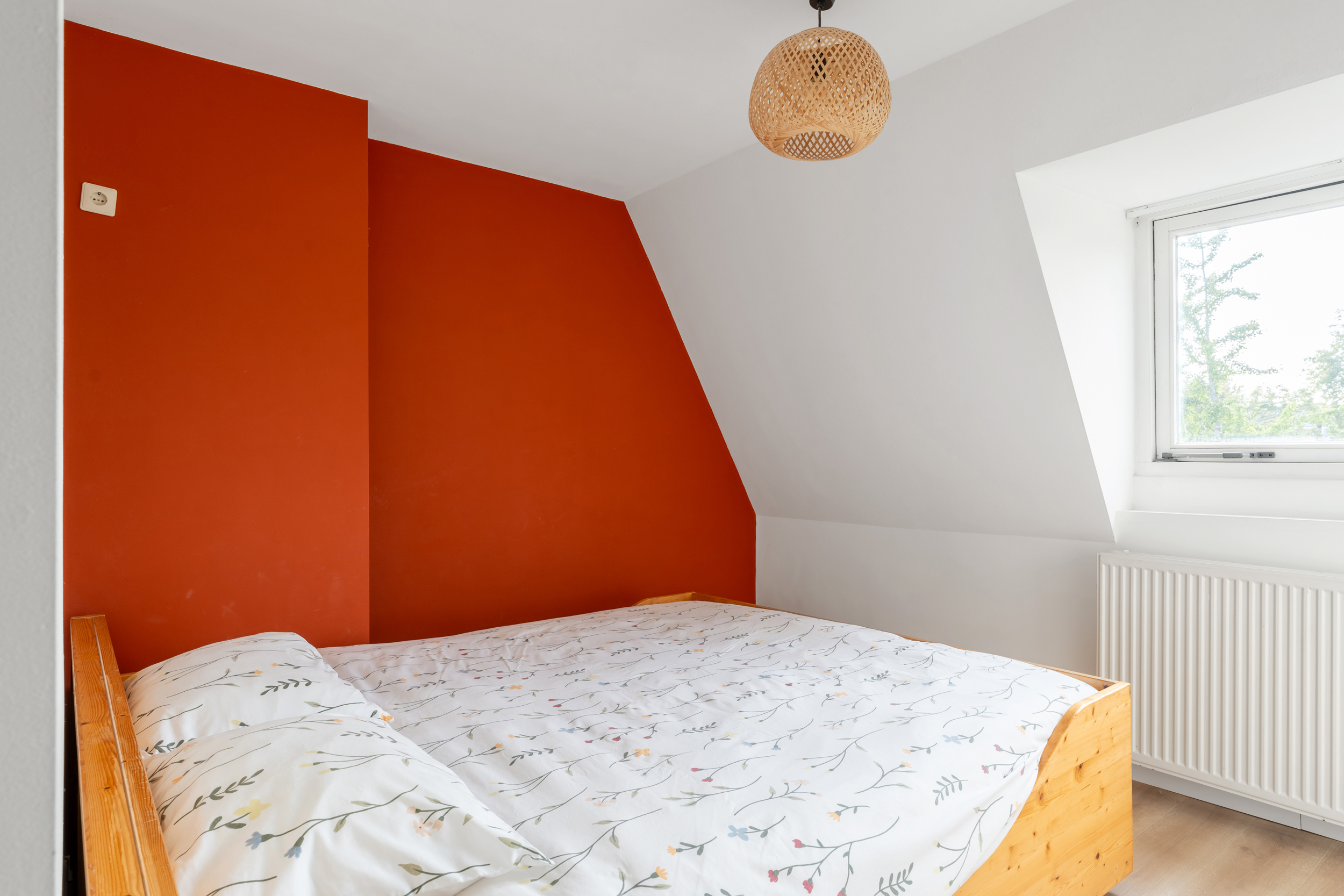 Slaapkamer II (2.82 x 1.97 m) met toegang naar zolder.