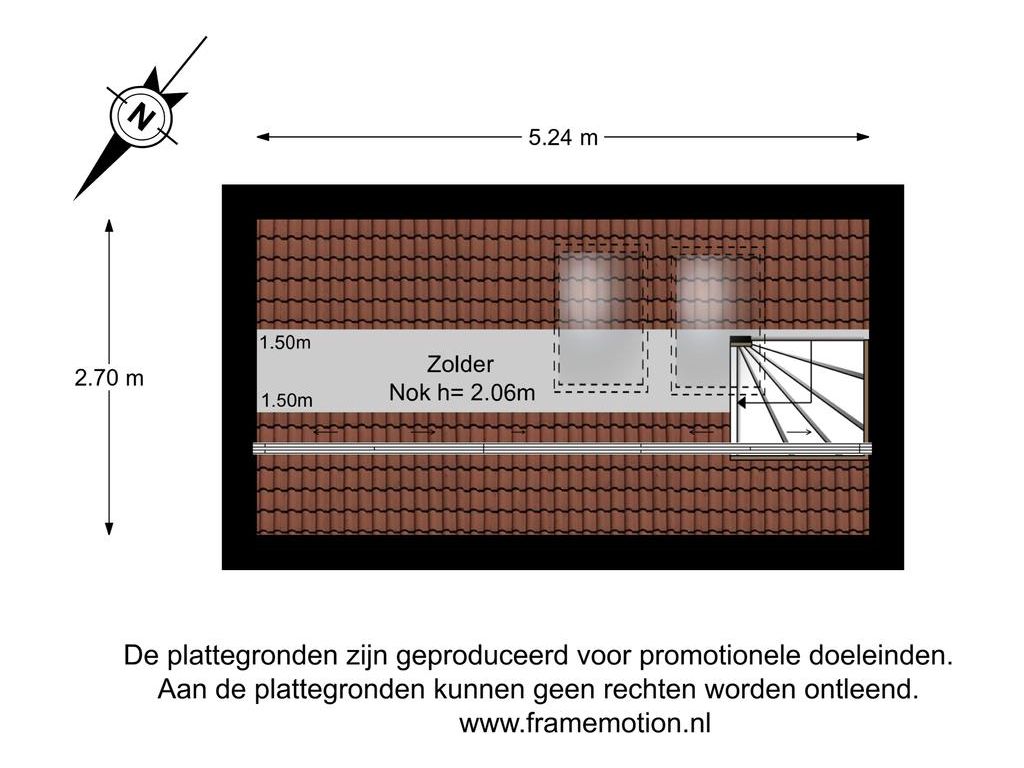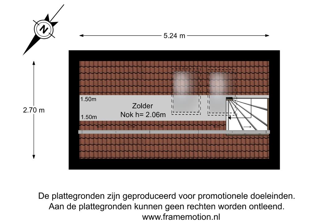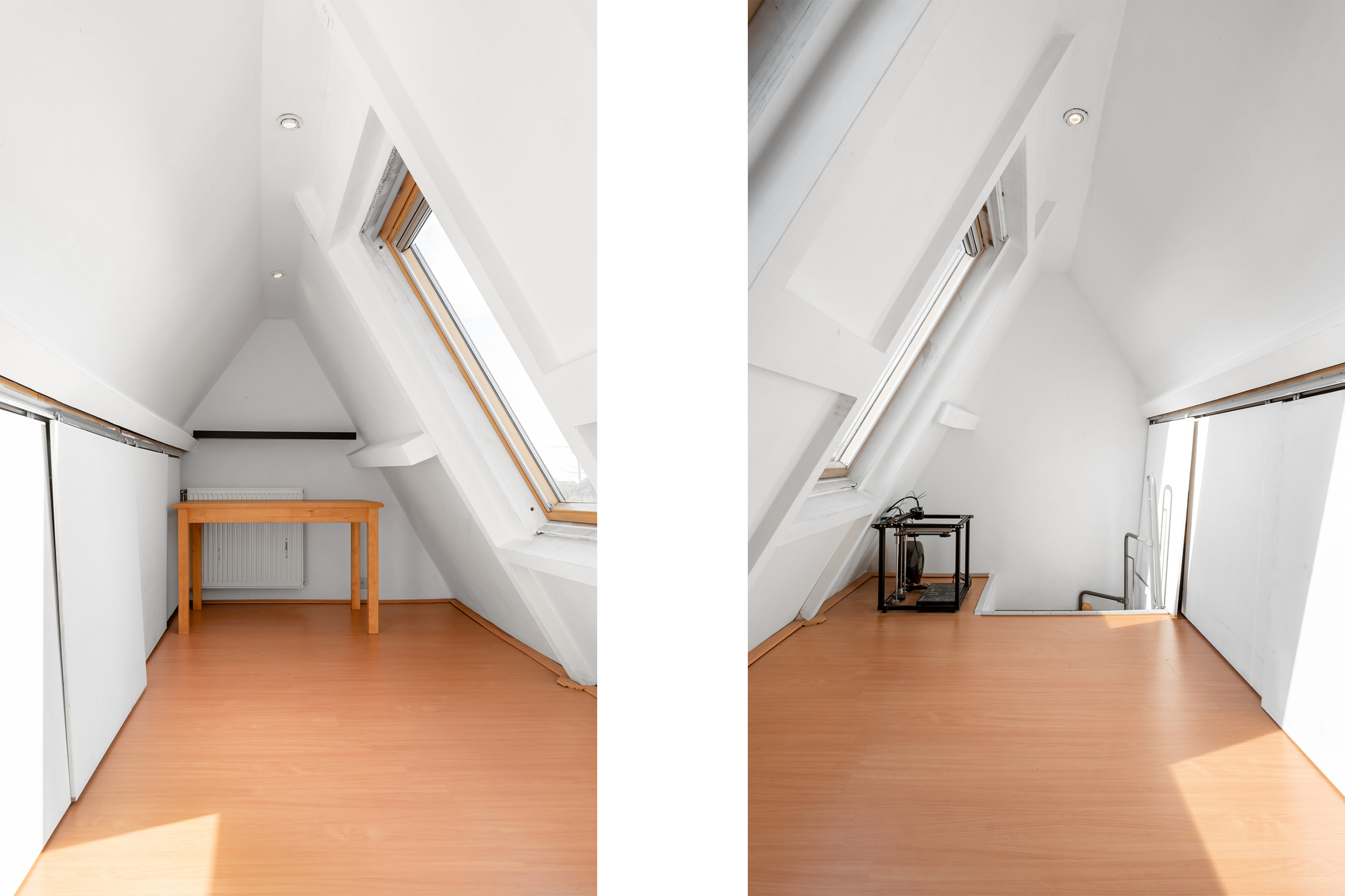Praktische zolder (niet mee gesplitst) met dakraam te gebruiken als bergruimte en werkruimte.