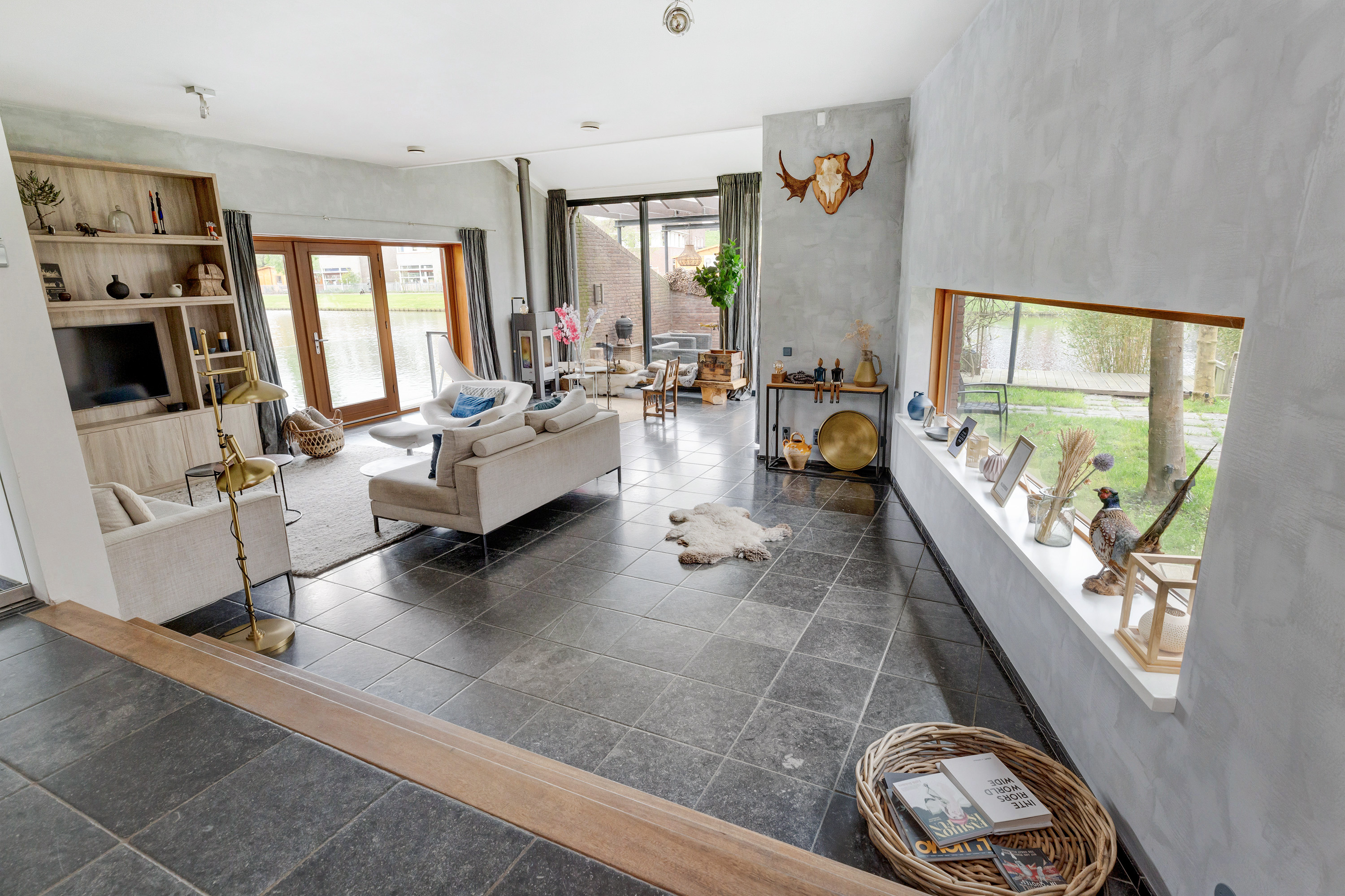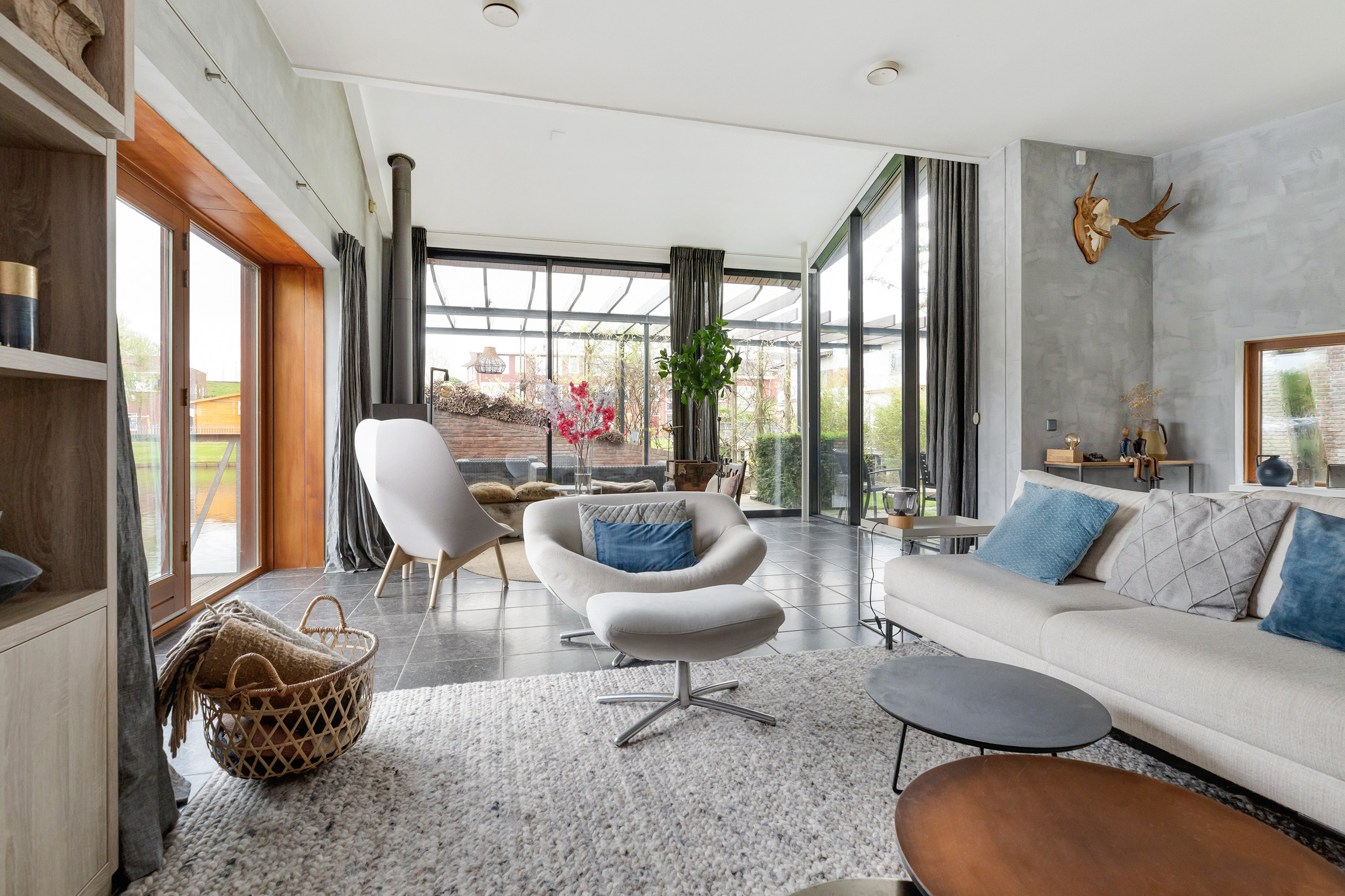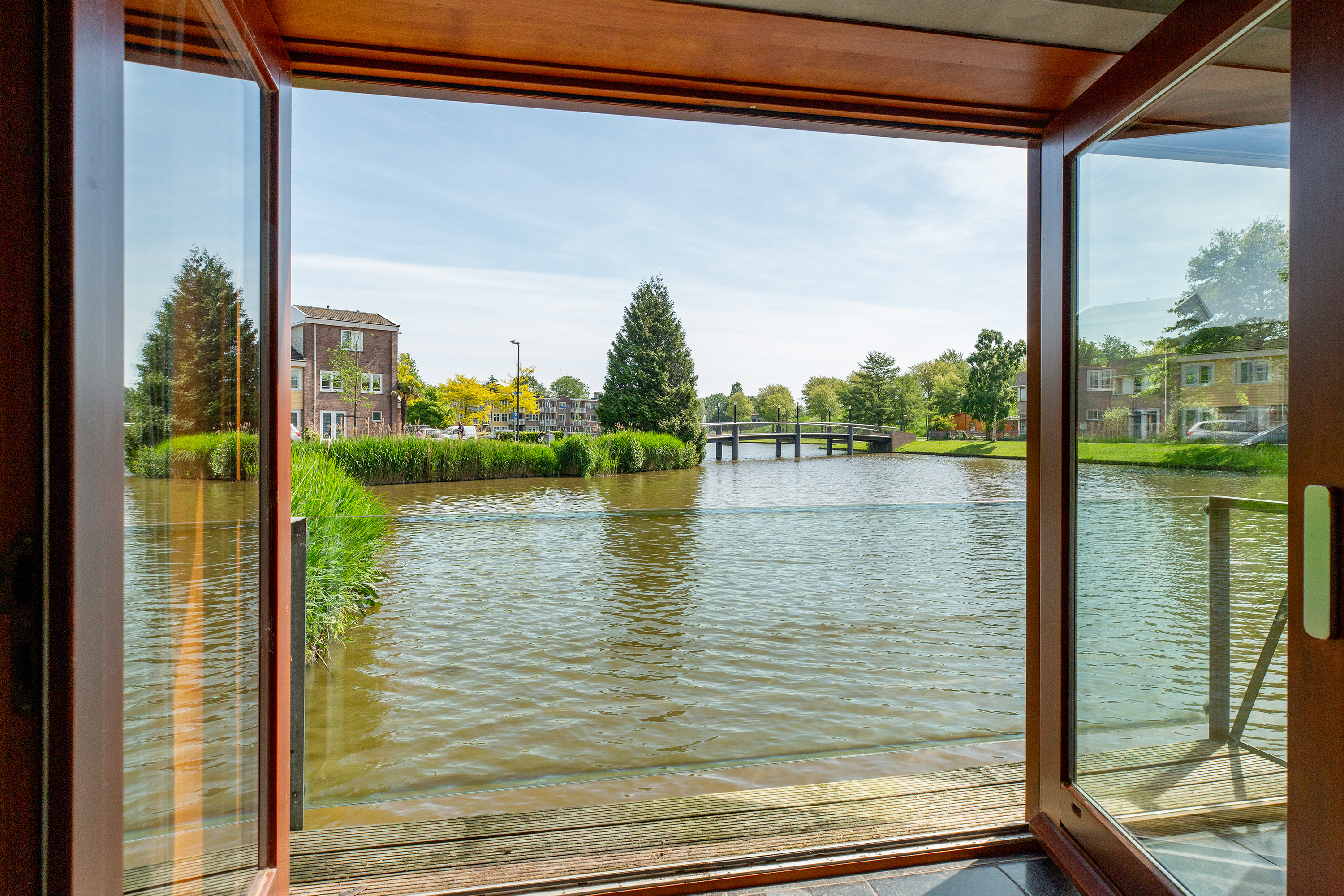 De architect heeft een stijlvolle en tijdloze woning ontworpen, die door een binnenhuisarchitect is getransformeerd tot een huis vol pure klasse en verfijning. De ligging is werkelijk schitterend, met waterpartijen aan twee zijden en heerlijk vrij uitzicht aan drie zijden. De tuin met ruim terras biedt de perfecte setting om van de zon te genieten, of het nu met een kop koffie in de ochtend is, een glas wijn in de namiddag, of een gezellige barbecue in de avond.