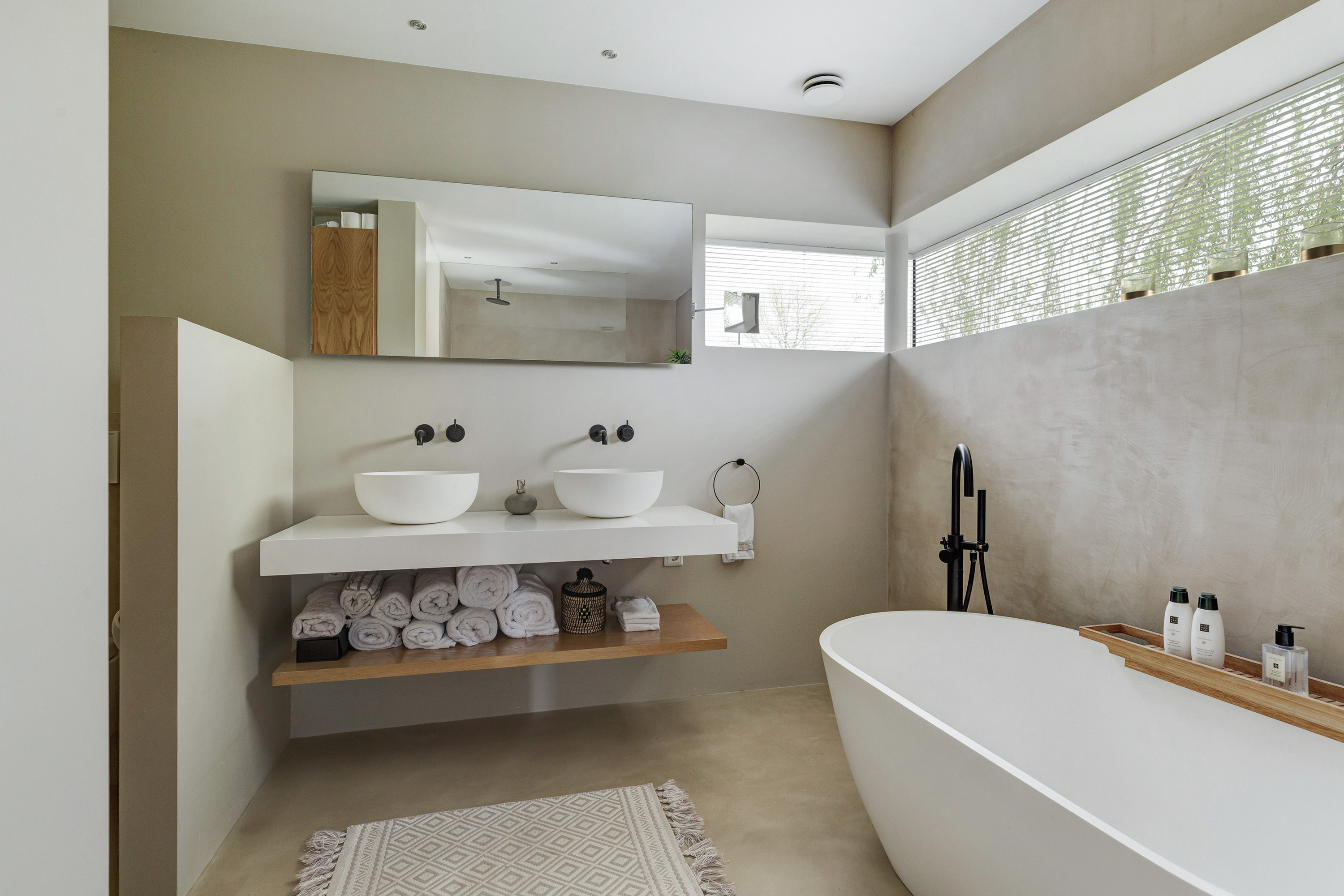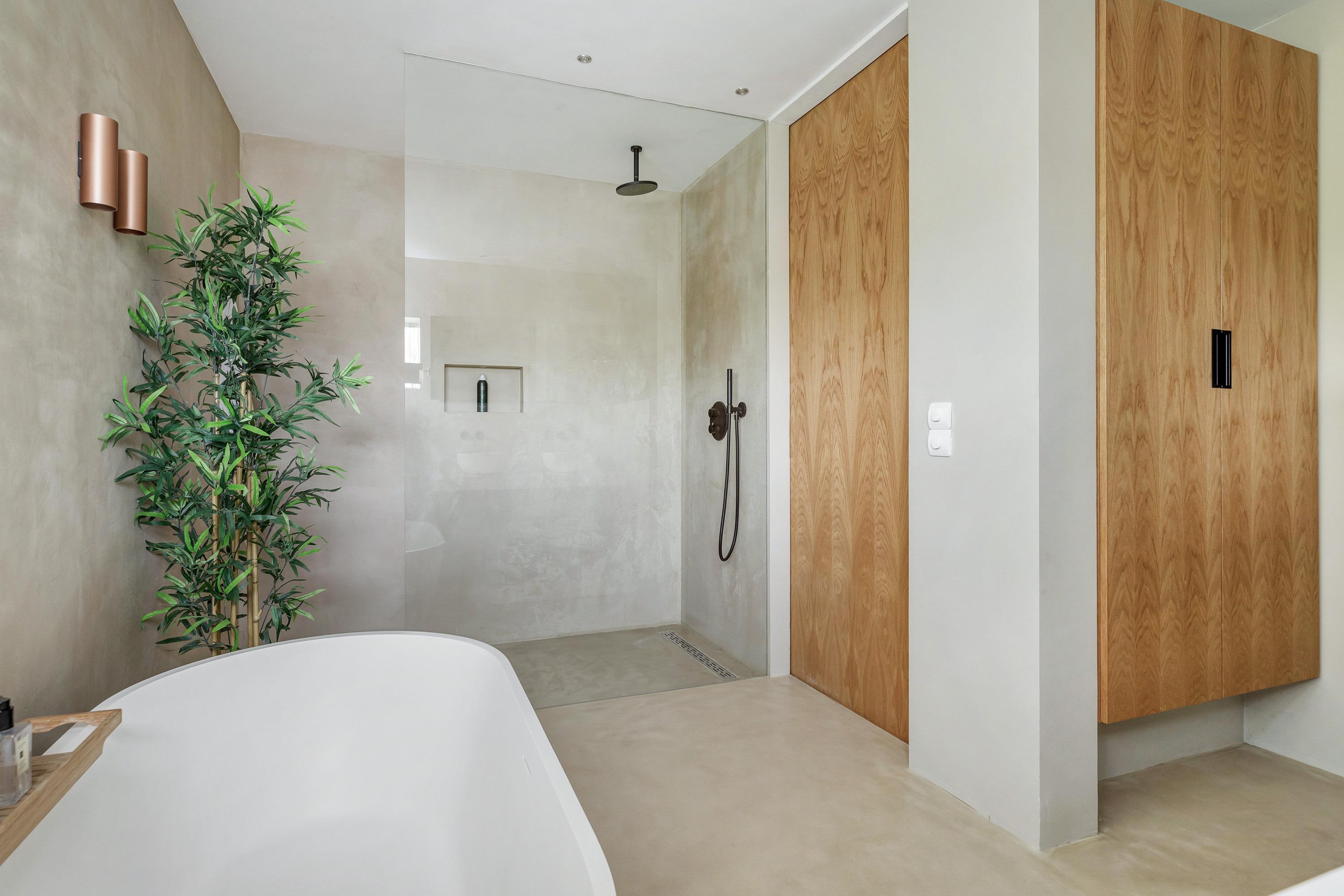 Via de dressingroom met kleedkasten heb je toegang tot een zeer luxe badkamer met twee wastafels, toilet, ligbad, inloopdouche en slaapkamer I, met openslaande deuren naar een royaal terras op het zuiden;