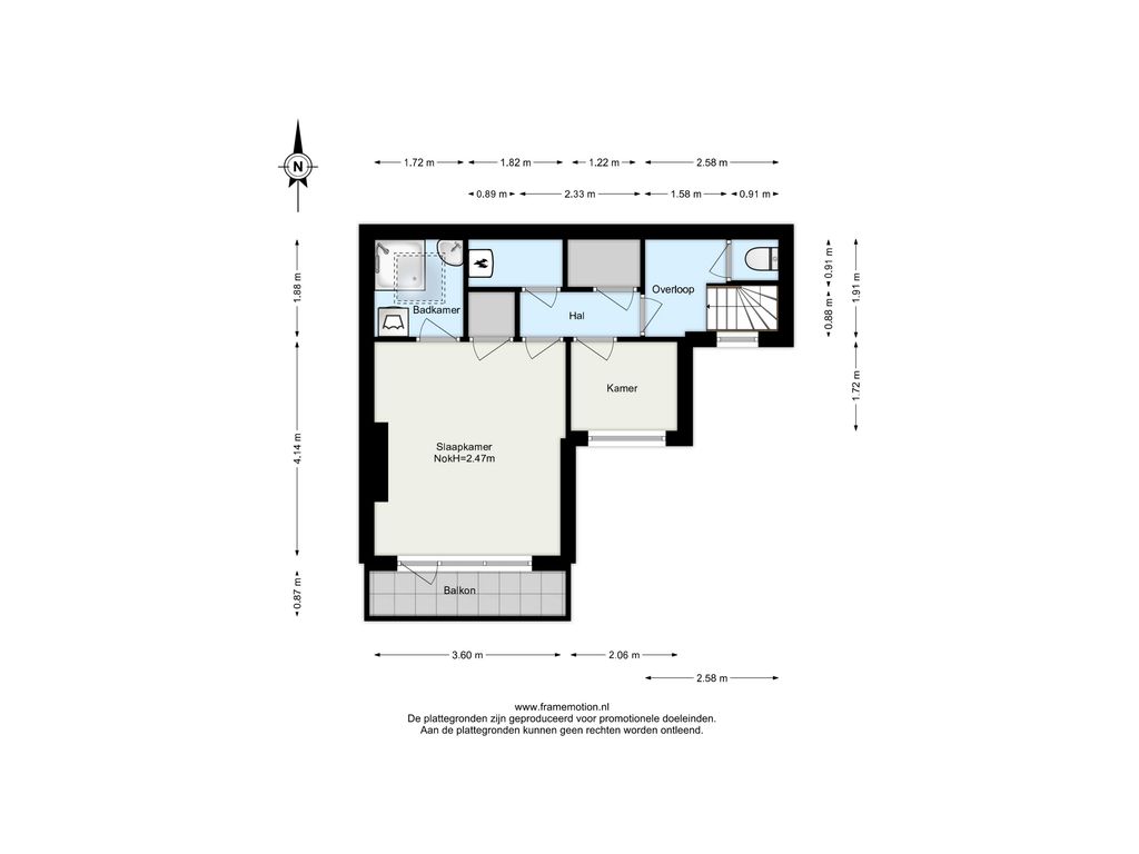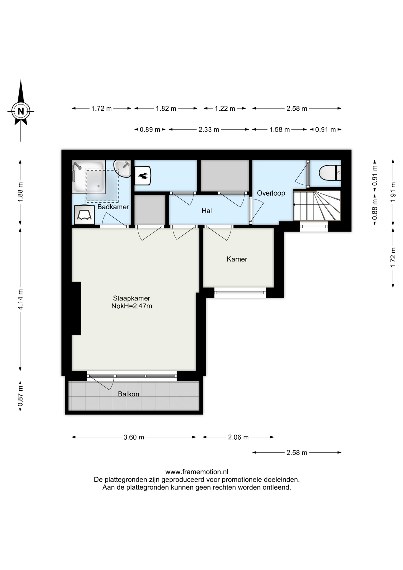 Slaapkamer (ca. 1.72 x 2.06 m).