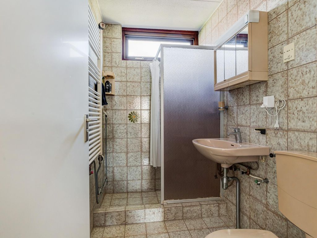 De 2e badkamer is voorzien van een douche, wastafel en toilet.