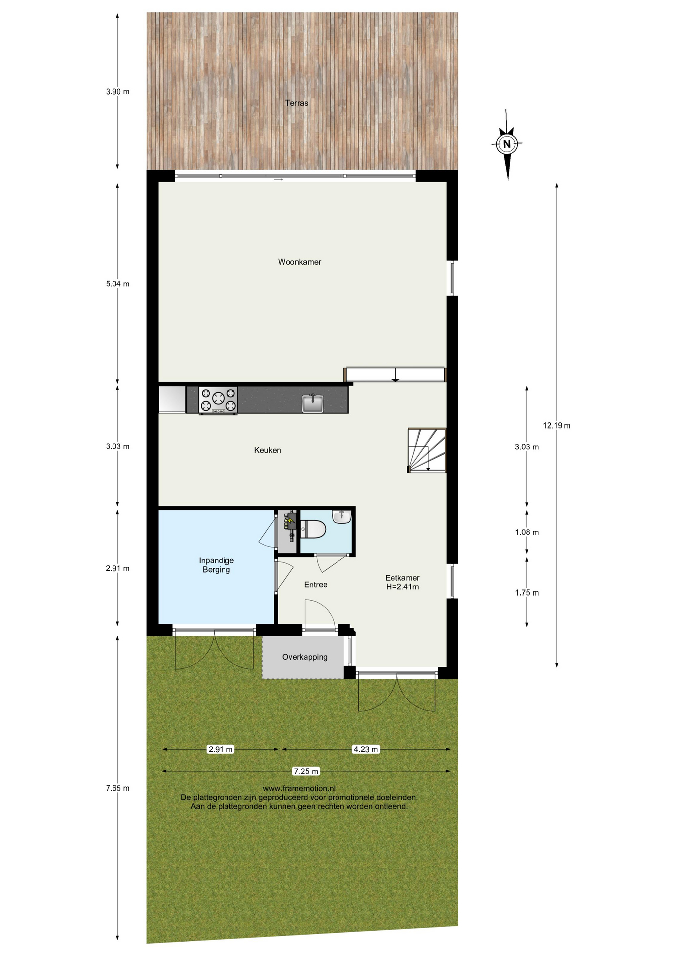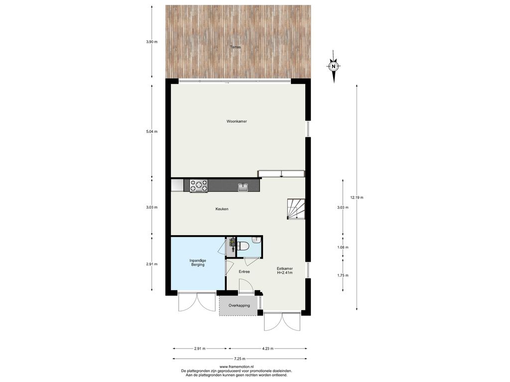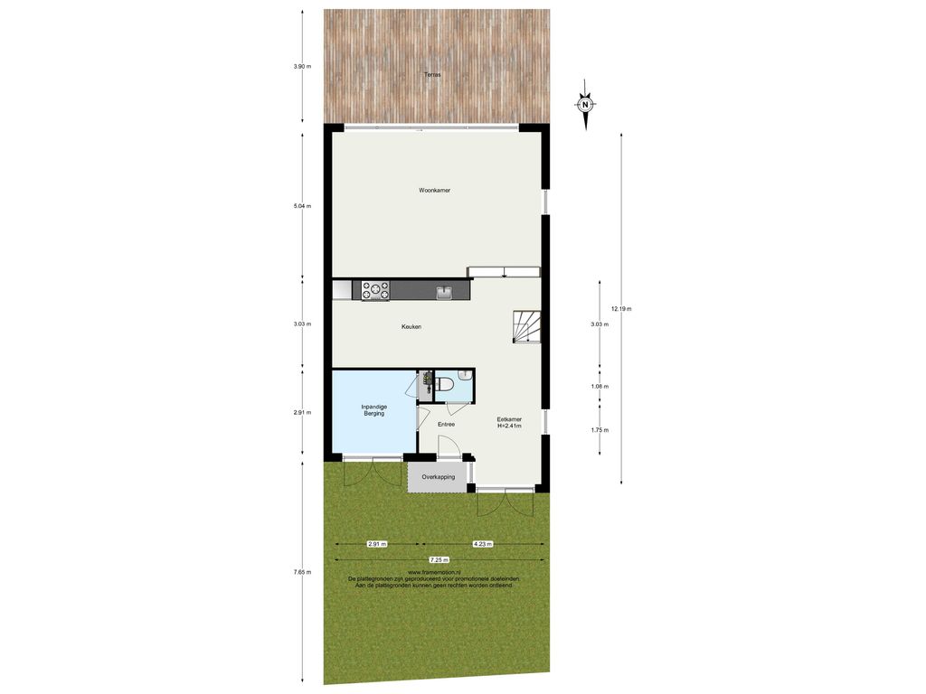 Voorkamer ca. 7.00 x 2.30 m met openslaande deuren naar voortuin en aangrenzend de open eetkeuken voorzien van inbouwpapparatuur.