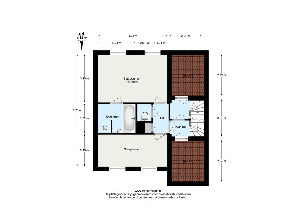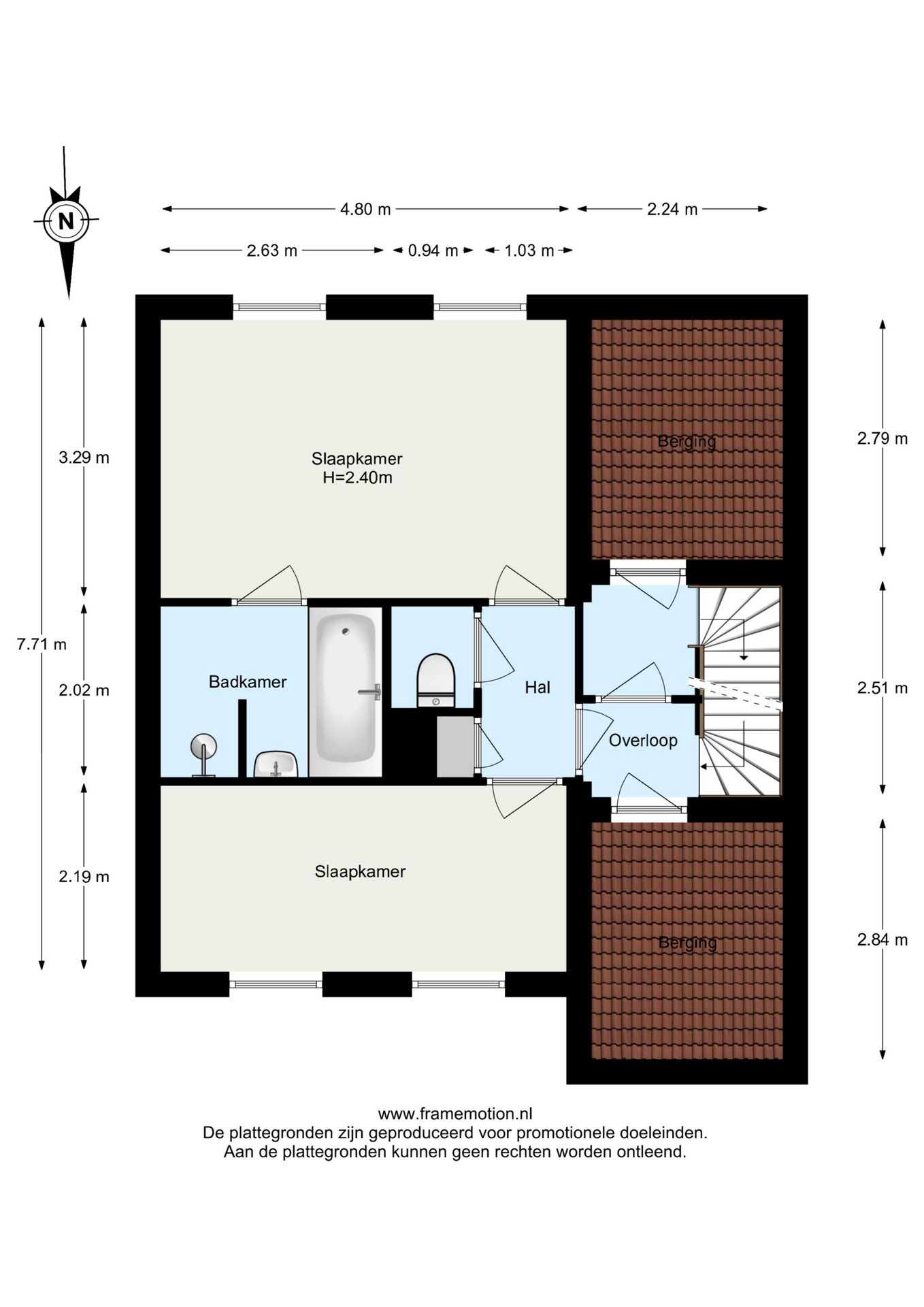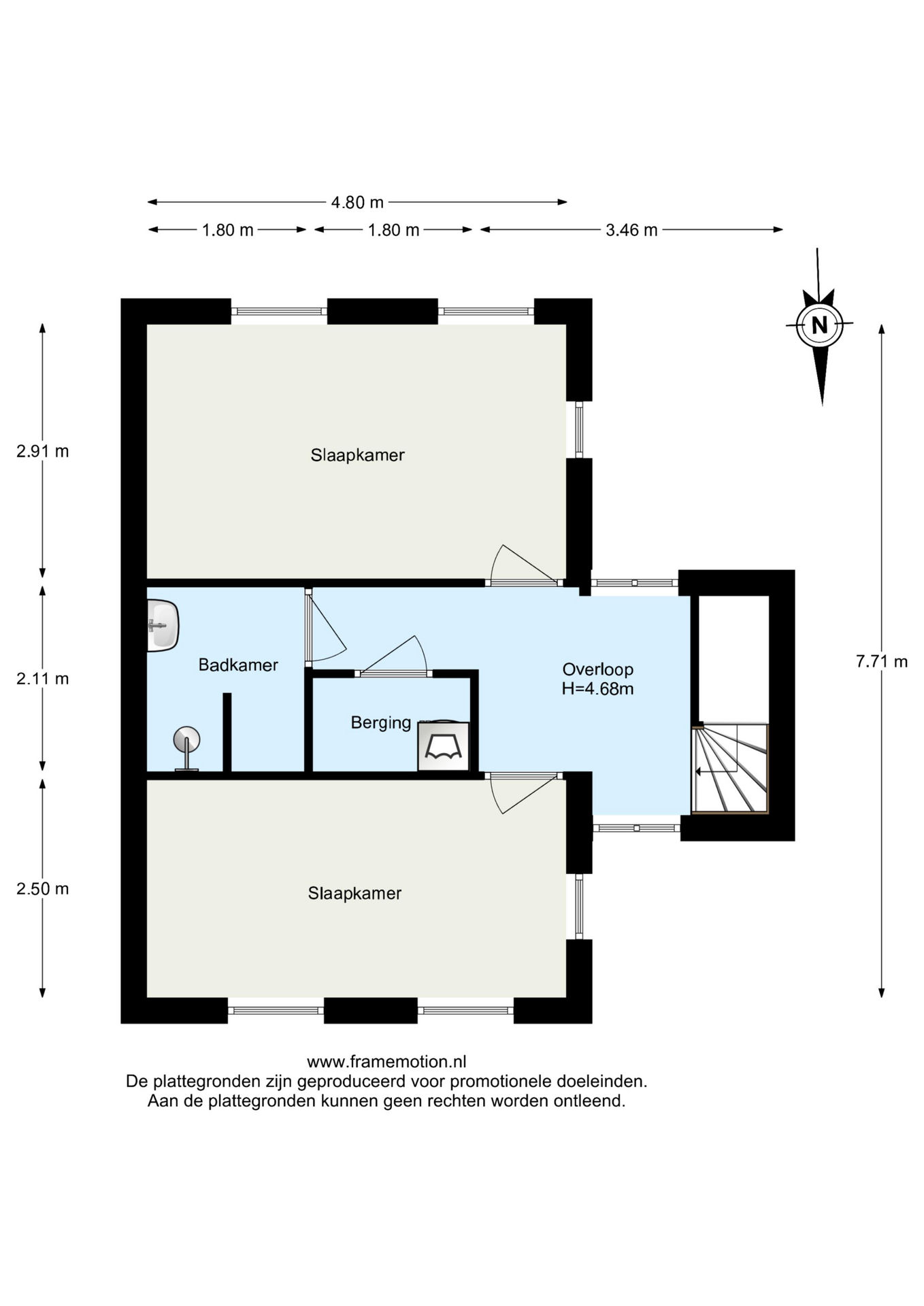 2e badkamer ca. 1.80 x 2.15 m met douche en wastafel