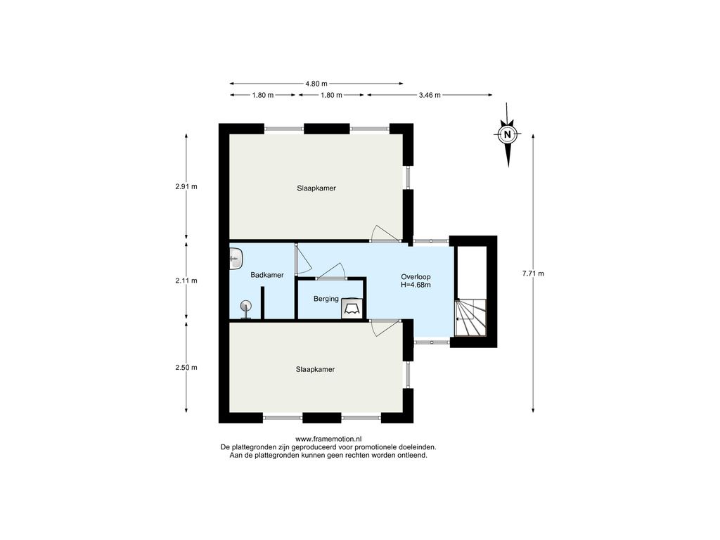 Slaapkamer IV met airco ca. 2.91 x 4.80 m
