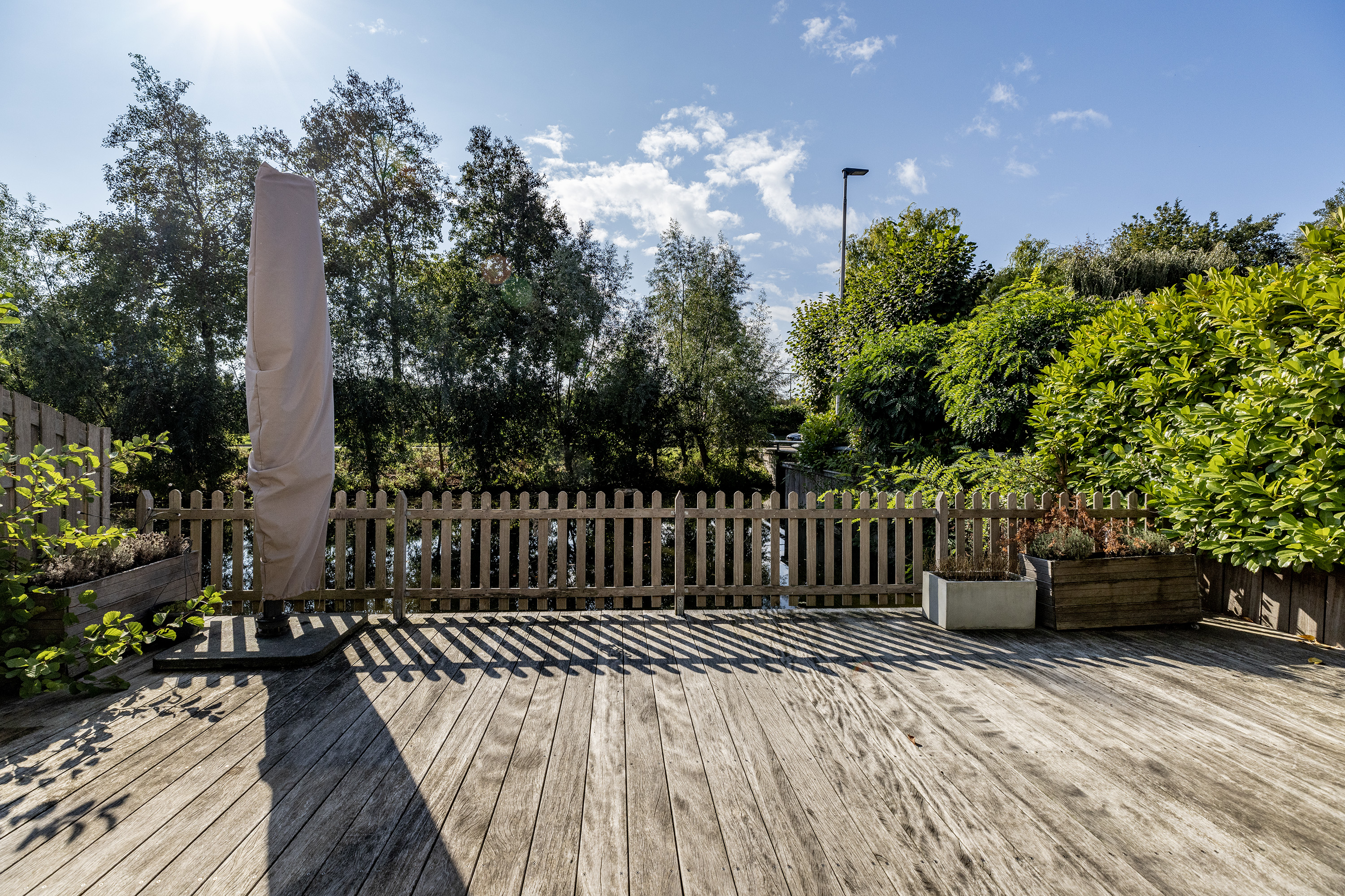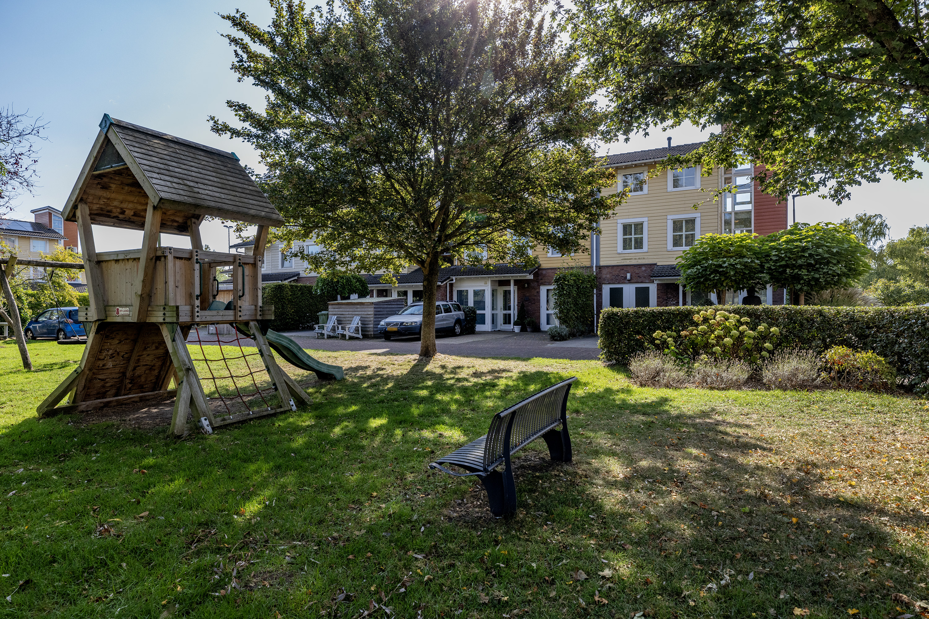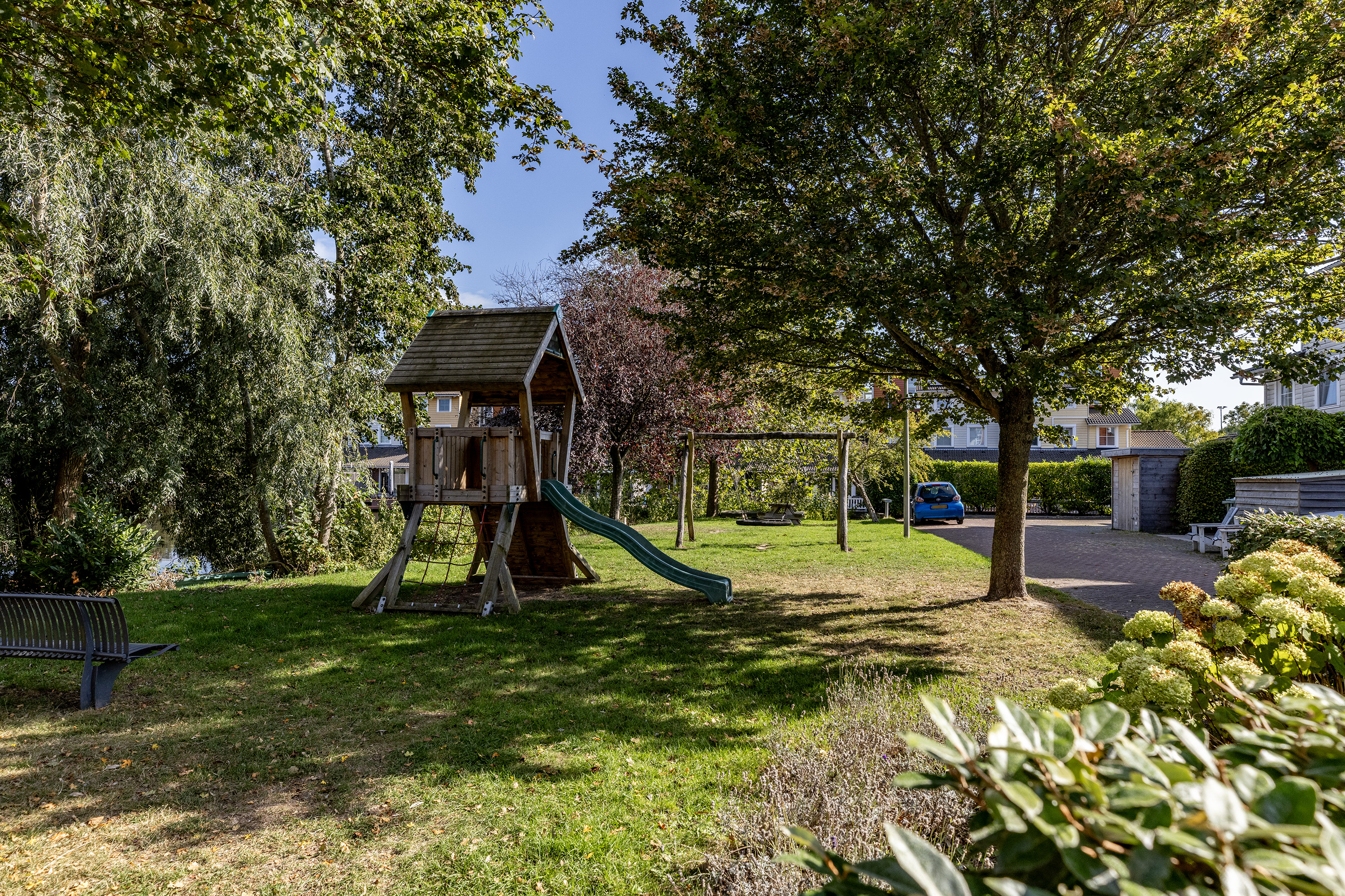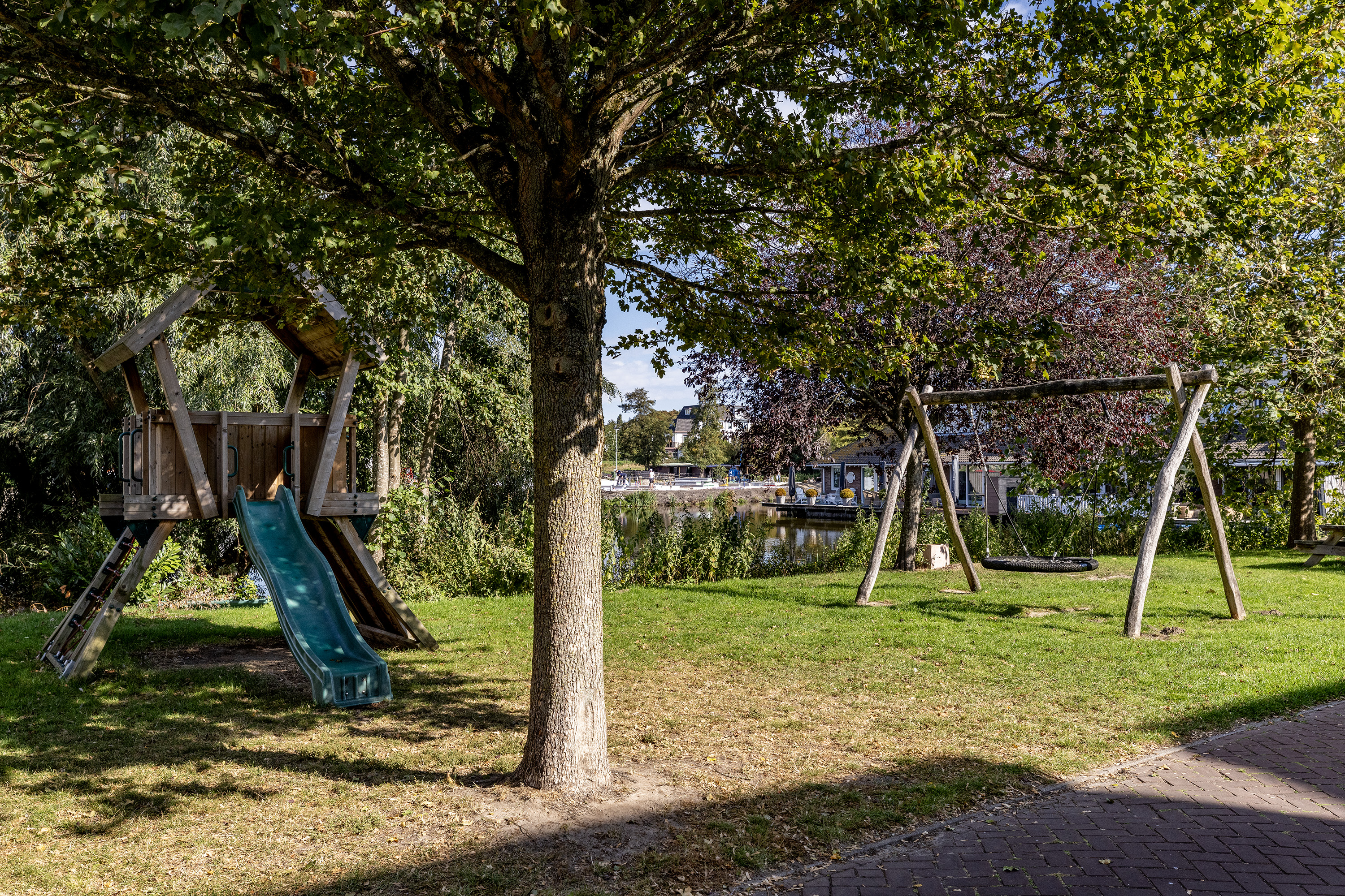 Buiten vind je een voortuin met parkeergelegenheid voor twee auto’s op eigen terrein en een groot vlonderterras aan het water, waar je altijd een fijne plek in de zon, schaduw of uit de wind hebt. Aan de voorzijde ligt een gezamenlijk stuk grond met een speelplaats: een plek waar kinderen vrij kunnen spelen, rennen en ontdekken, terwijl je als ouder met een gerust hart toekijkt. De woning is duurzaam gebouwd en heeft energielabel A, waardoor comfort en lage energiekosten hand in hand gaan.