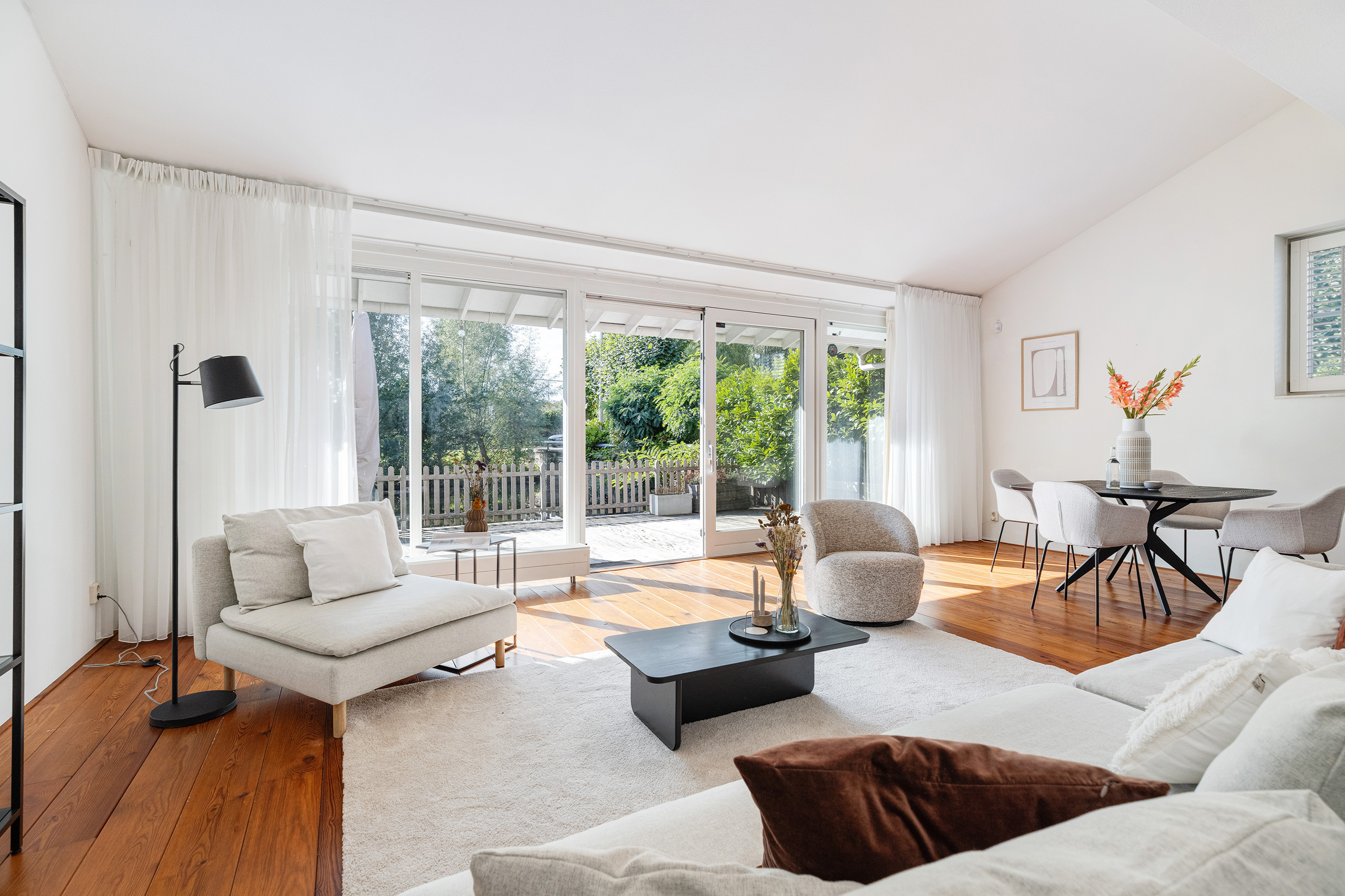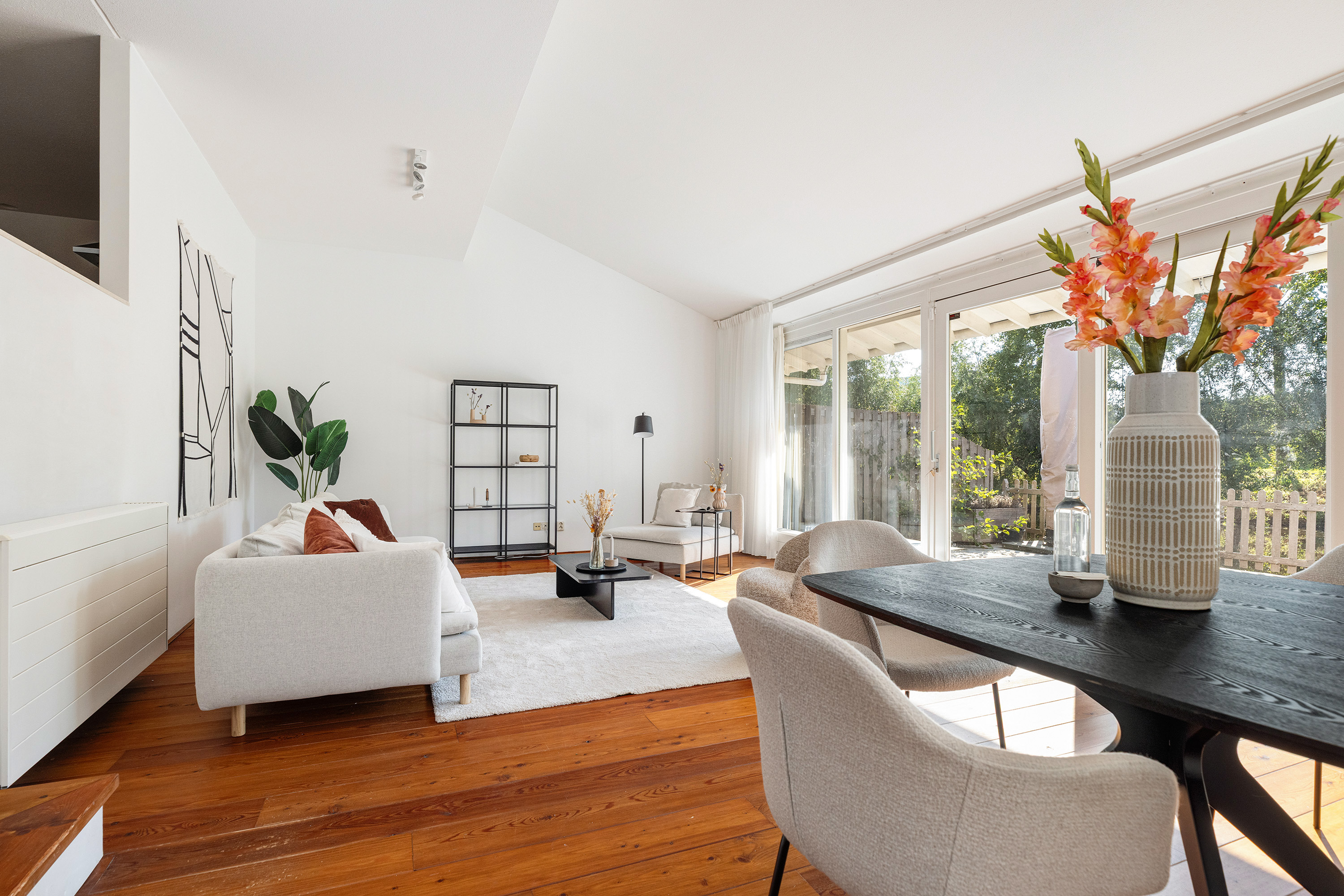 Royale hoekwoning in een verkeersluwe straat, met speelse, ruime woonkamer, woonkeuken, vier slaapkamers, twee badkamers, zonnig terras aan het water en een gezamenlijke speelplaats waar kinderen vrij kunnen spelen. De woonkamer is extra ruimtelijk en licht dankzij het hoge plafond en de raampartijen aan de achterzijde, plus een extra zijraam. De woonkeuken met inbouwapparatuur biedt volop ruimte om samen te koken en te eten. Met vier slaapkamers en twee badkamers is er plek genoeg voor een groot gezin of om extra werk- en hobbyruimte te creëren.