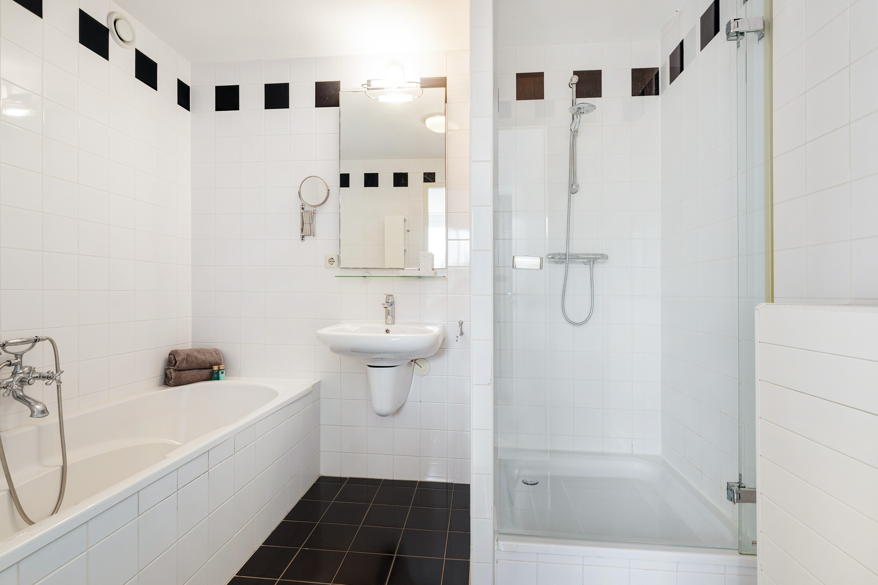Moderne badkamer ca. 2.05 x 2.70 m met ligbad, douche en wastafel