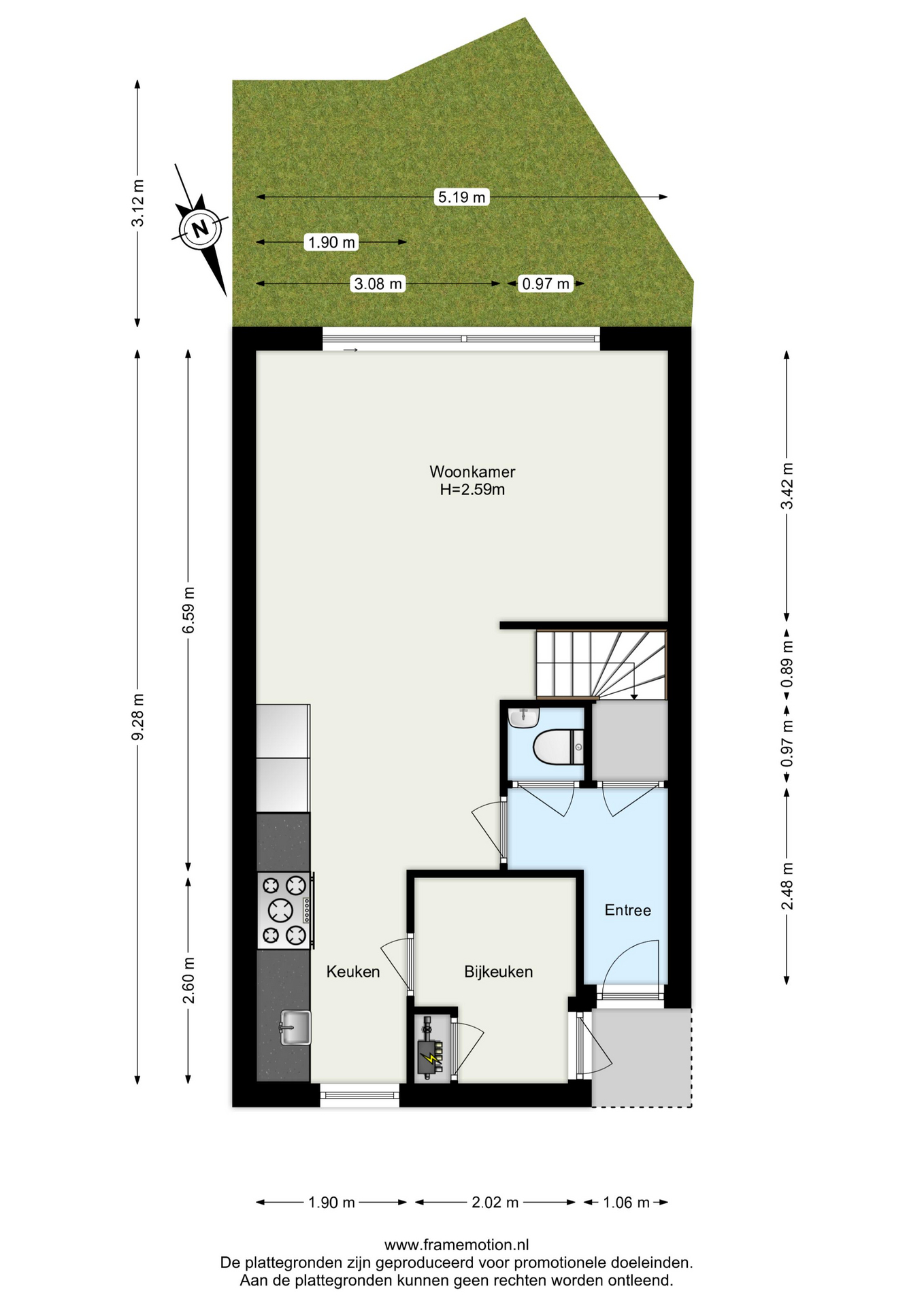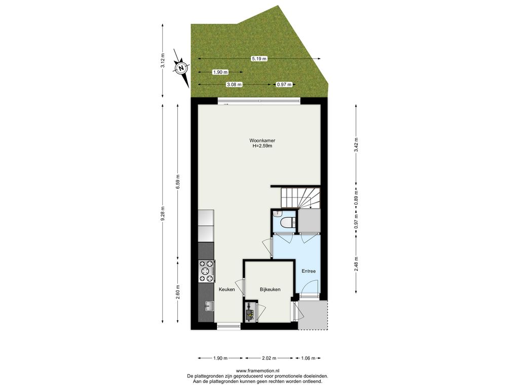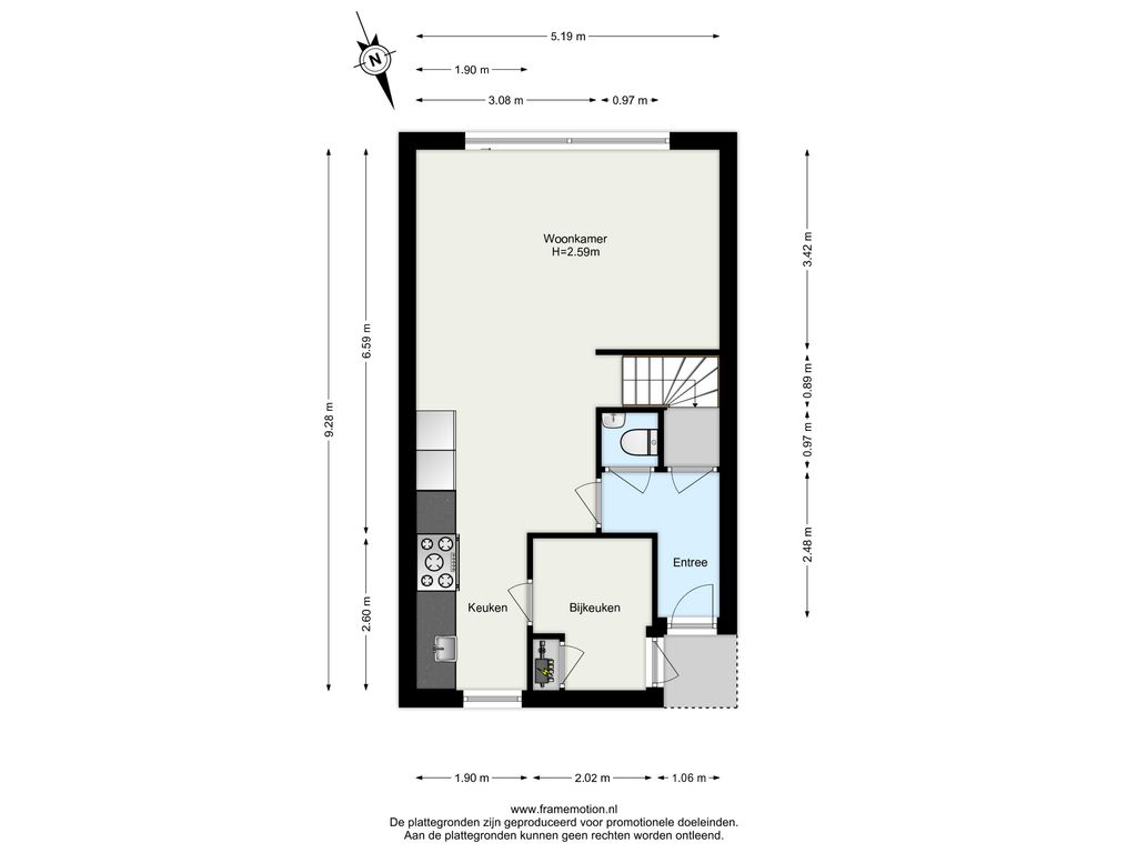 Inpandige berging/bijkeuken met deur naar de straat