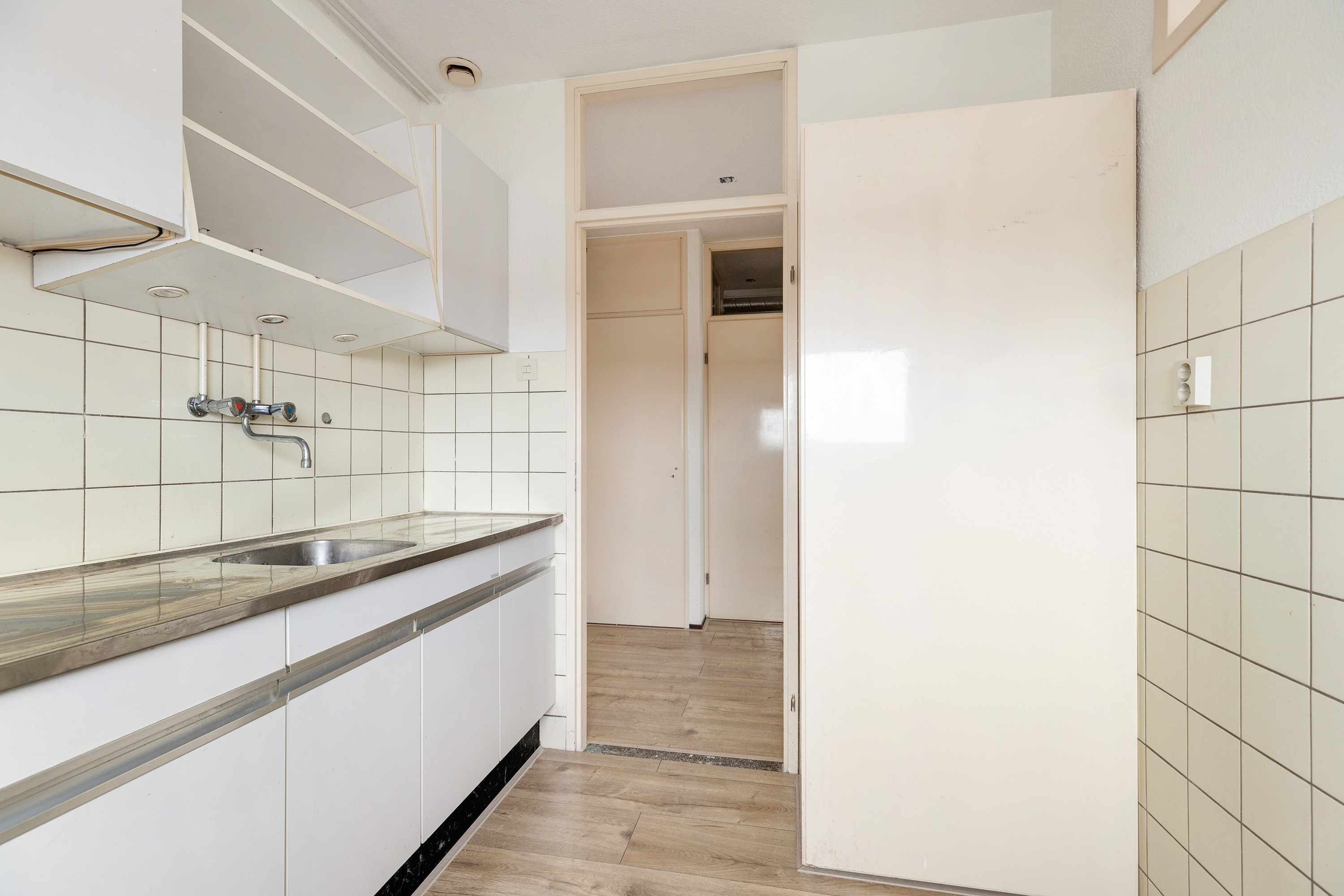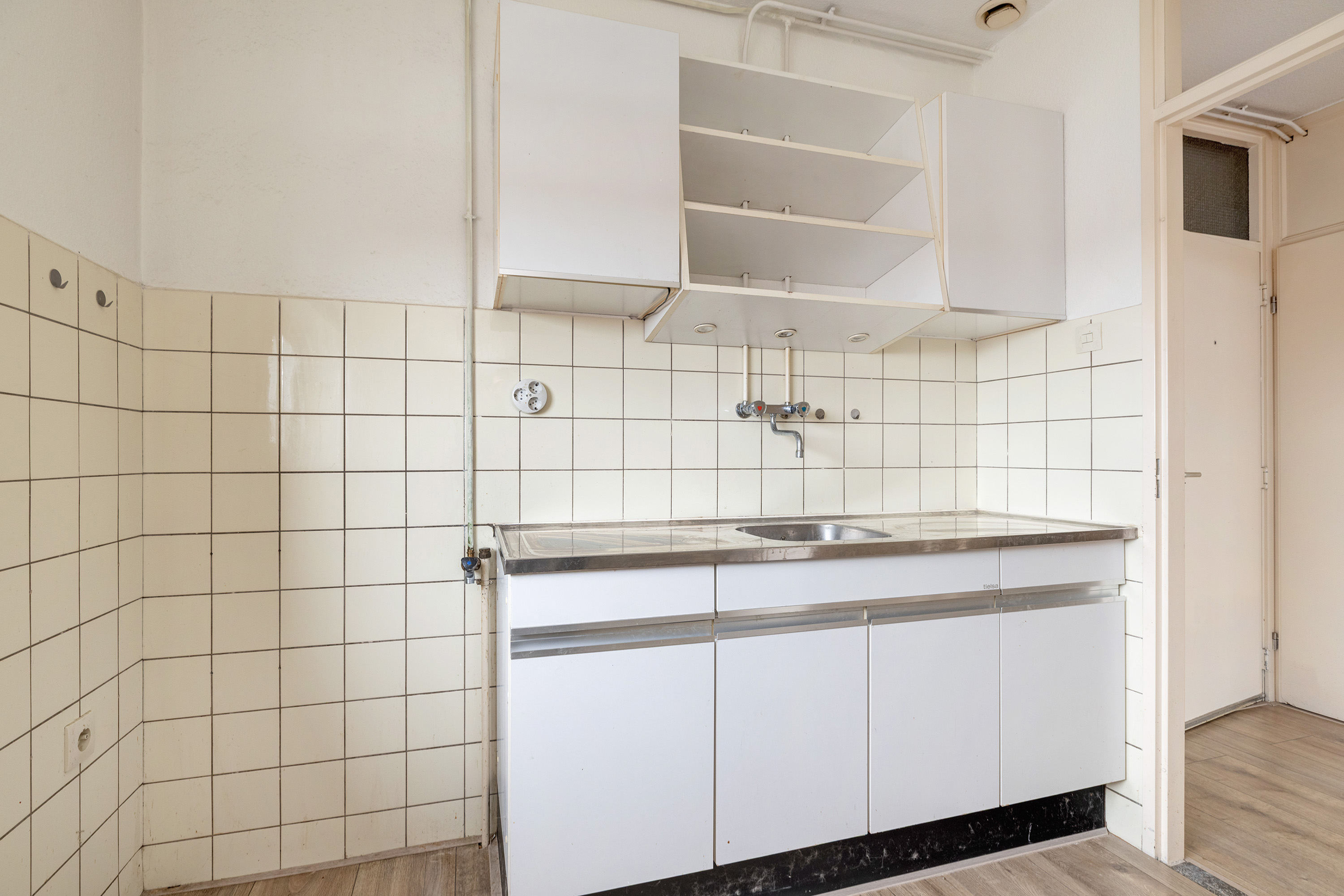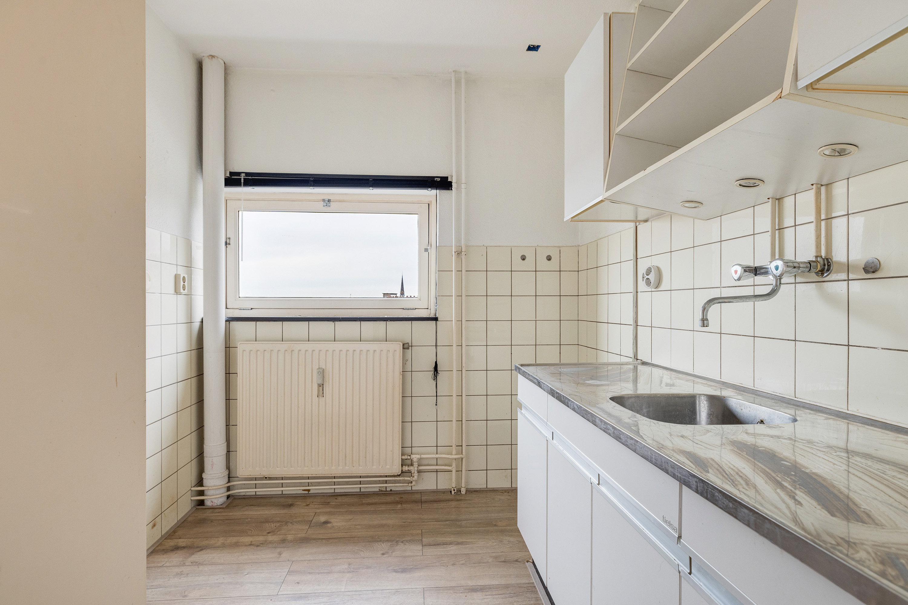 Ideaal gelegen ten opzichte van park en centrum, een in originele staat verkerende 2-kamer HOEKappartement gelegen op de 4e verdieping van een appartementencomplex met lift, berging en balkon. Het praktisch ingedeelde appartement beschikt, naast de lichte woonkamer en slaapkamer over een eenvoudige keuken en badkamer met een aparte ruimte voor de wasmachine