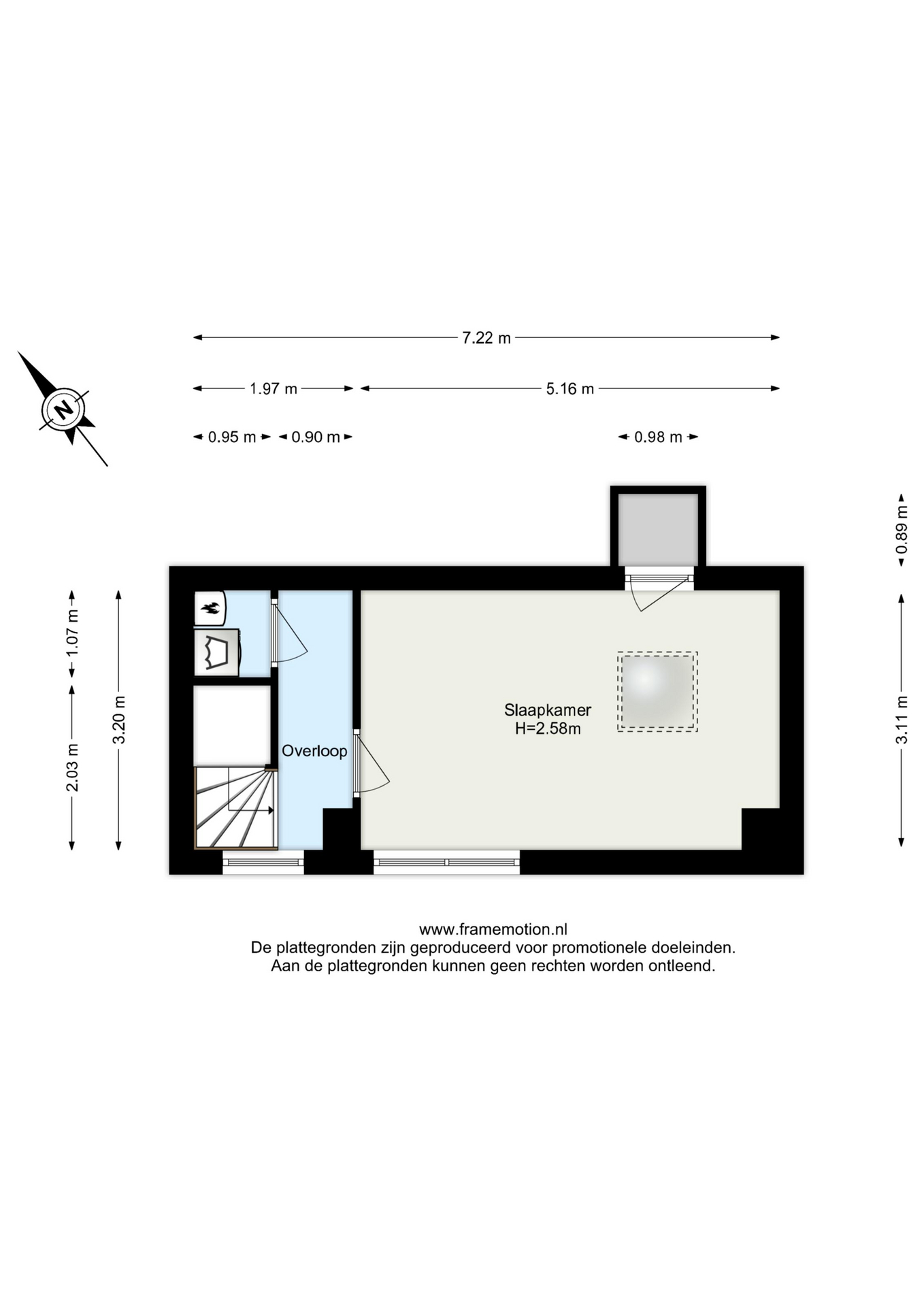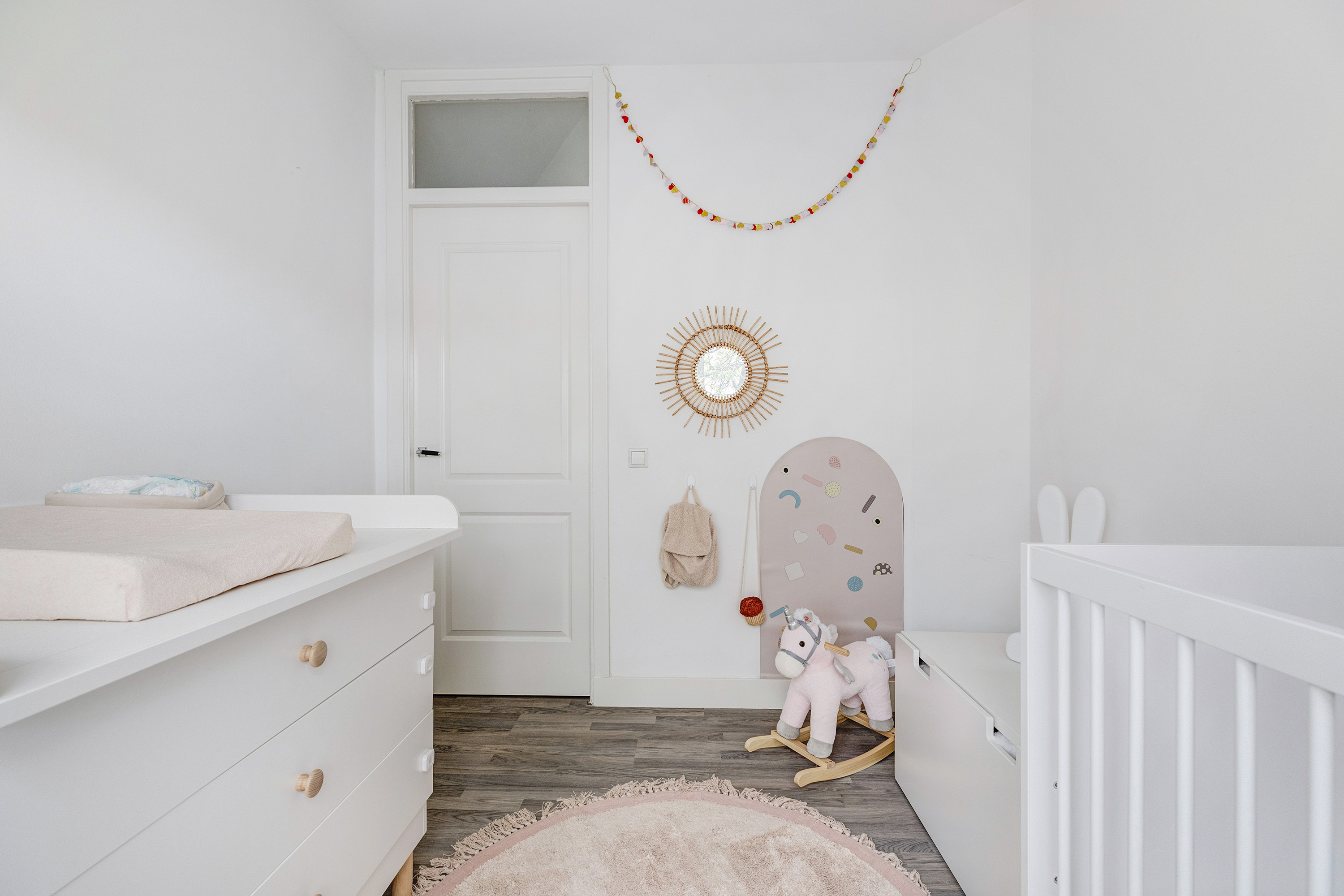 Op deze etage is de tweede slaapkamer te vinden. Dit is een comfortabele hoofdslaapkamer met plek voor een tweepersoonsbed en grote kledingkast. Tevens heeft de kamer ook een inbouwkast, perfect om netjes al je spulletjes op te bergen. Op de overloop vind je een kast met de wasmachineaansluiting en cv-installatie.