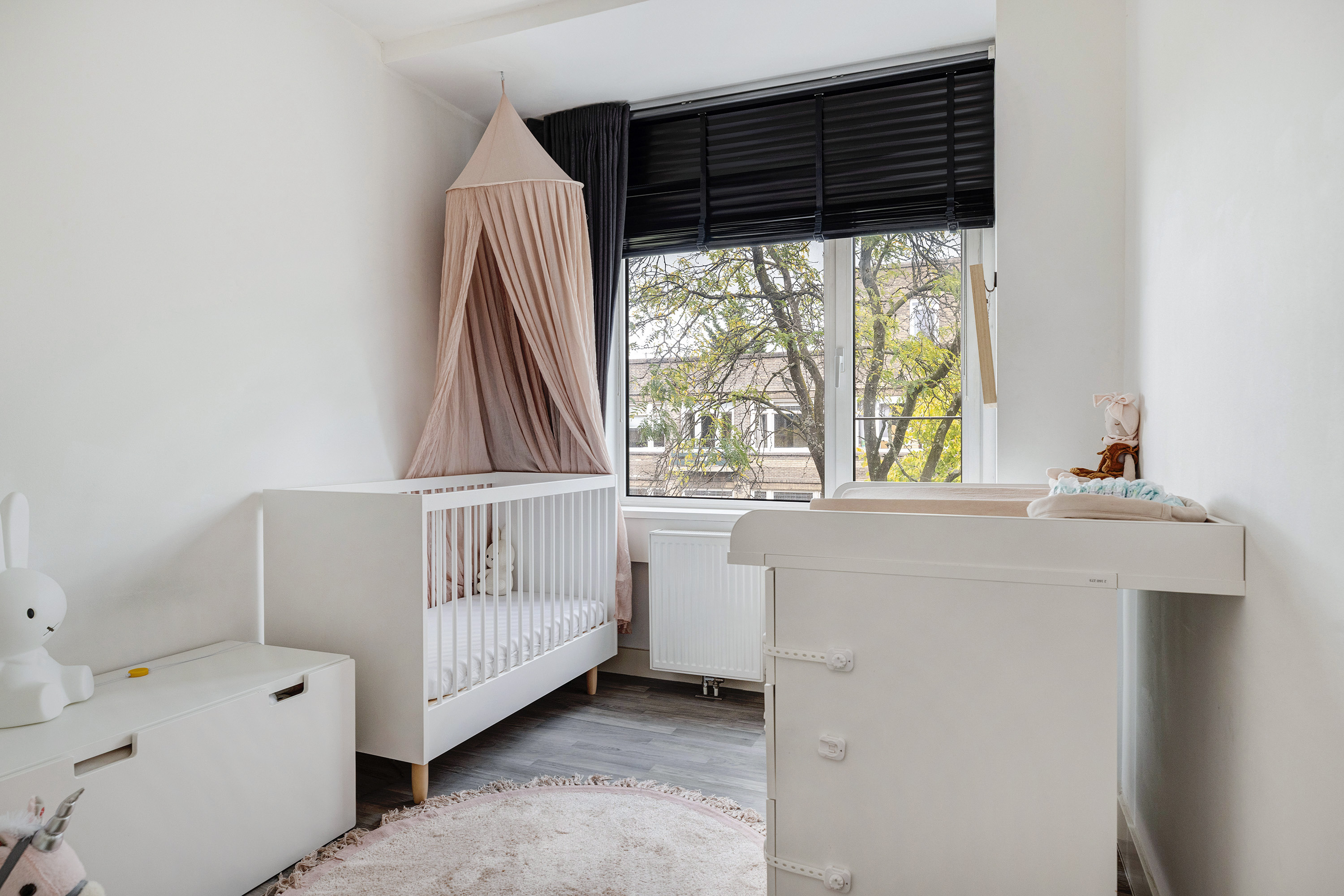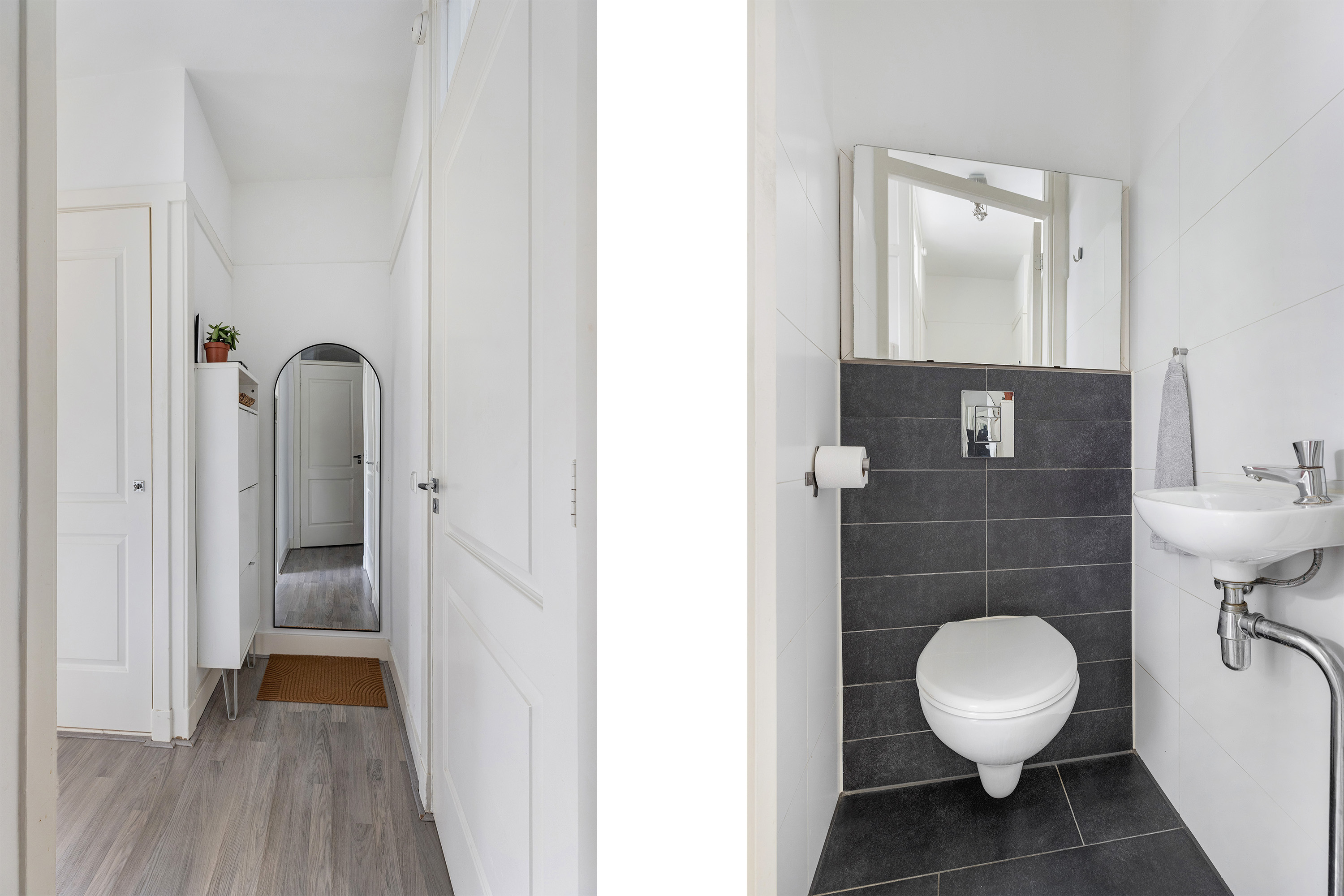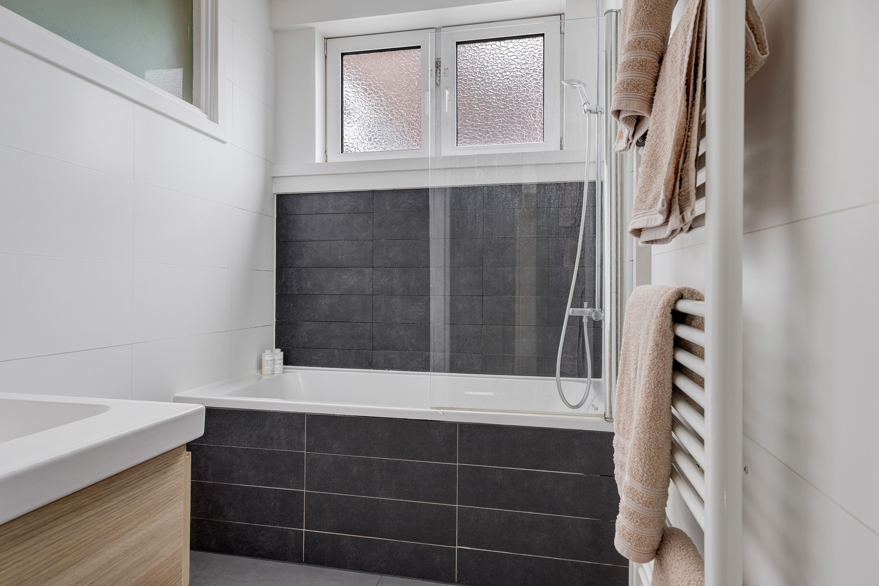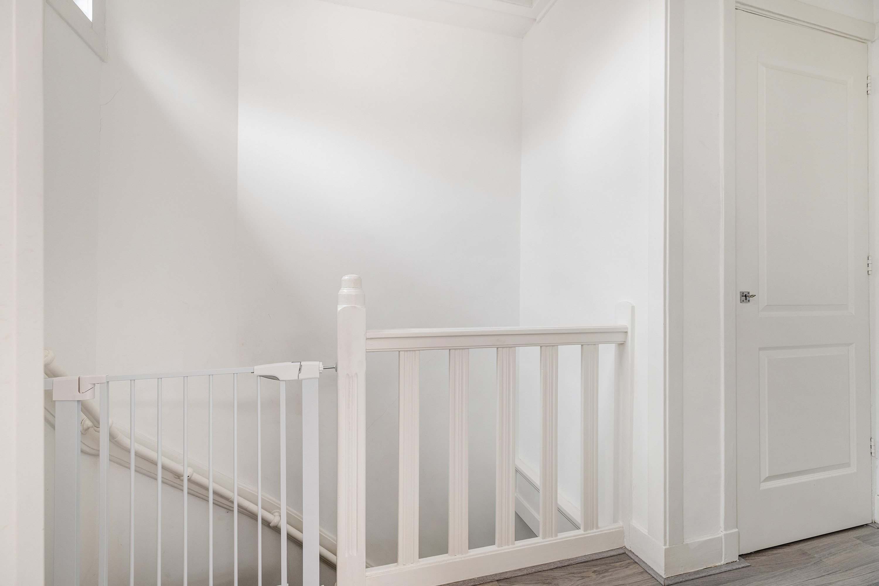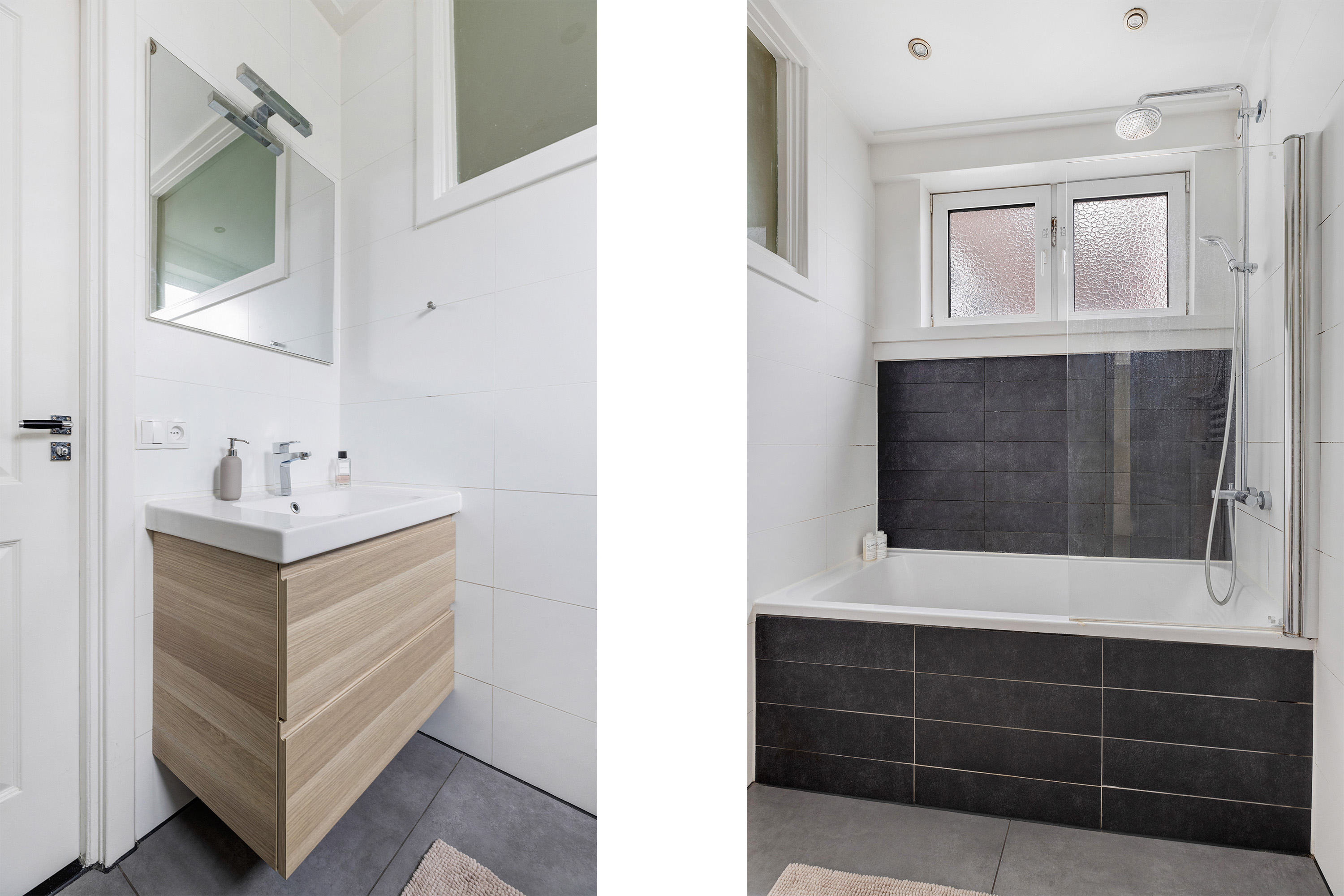 Aan de voorzijde van de woning ligt de eerste slaapkamer, welke ook een fijne lichtinval heeft. Deze kamer is erg geschikt als werkruimte, kinder- of logeerkamer. De badkamer is zeer netjes en voorzien van een ligbad met douche en wastafel met spiegel en lades. Terug in de hal vind je een toilet met fonteintje, de meterkast en de trap naar de vierde etage.
