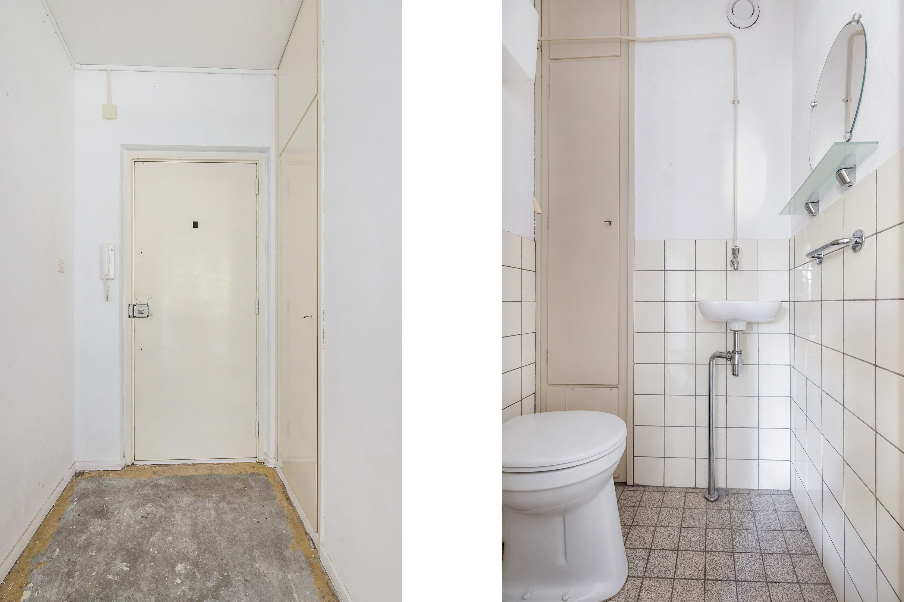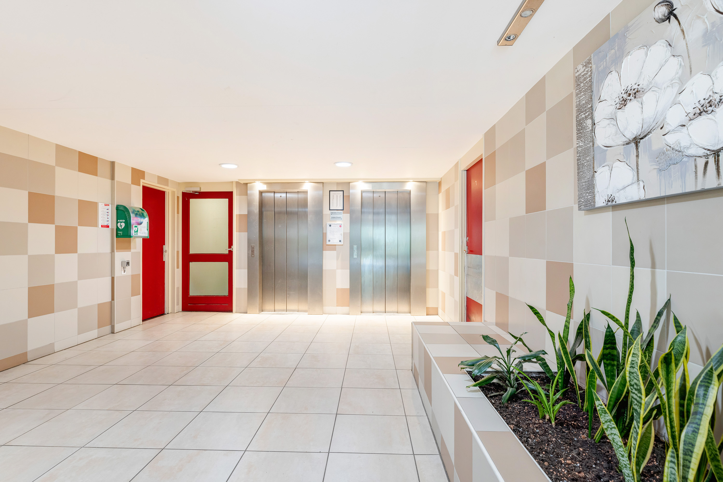 Centrale entree met bellentableau, brievenbussen, toegang tot de bergingen, trappenhuis en lift naar de verdiepingen.