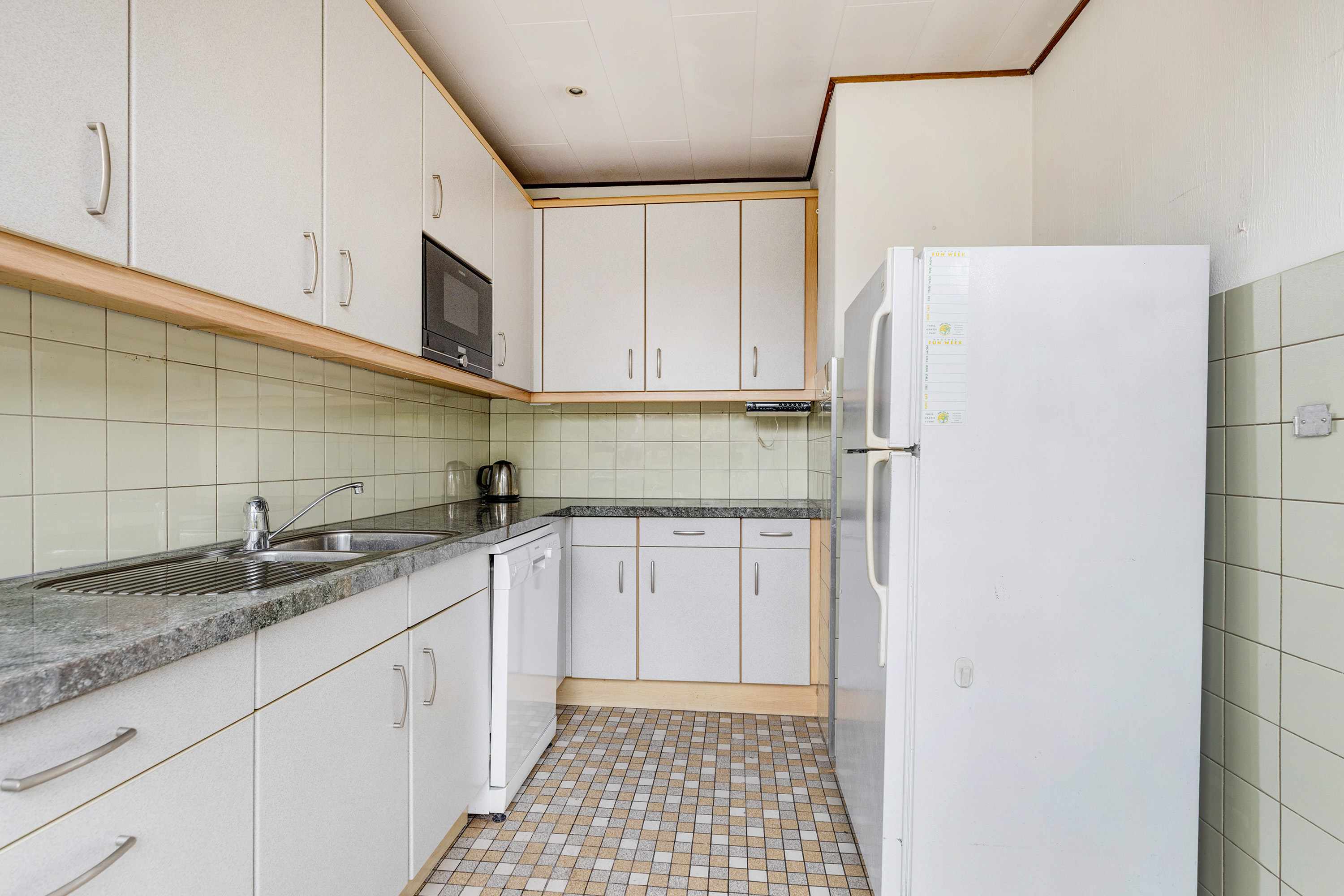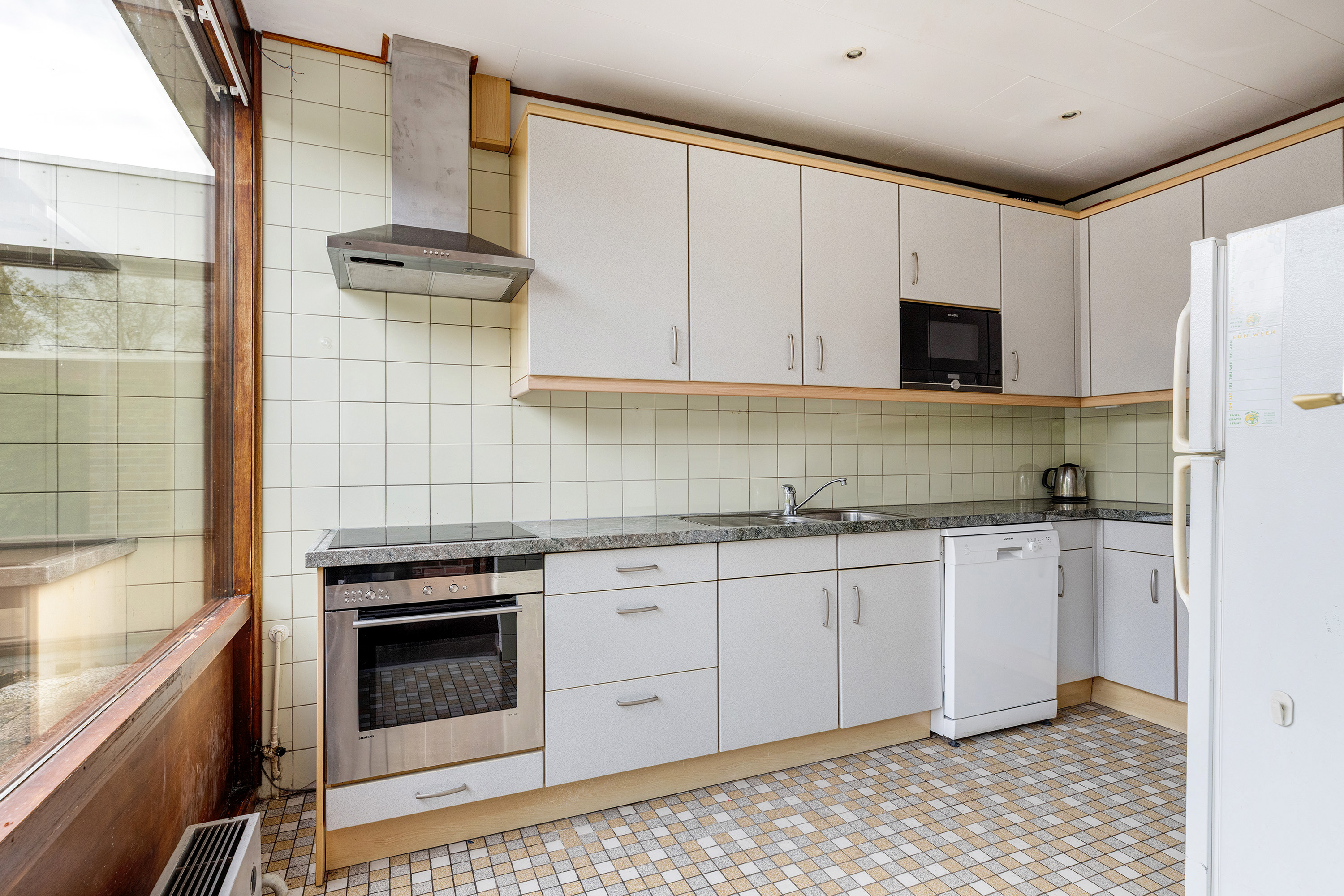 Half-open keuken met eenvoudige maar functionele inrichting voorzien van diverse (inbouw)apparatuur