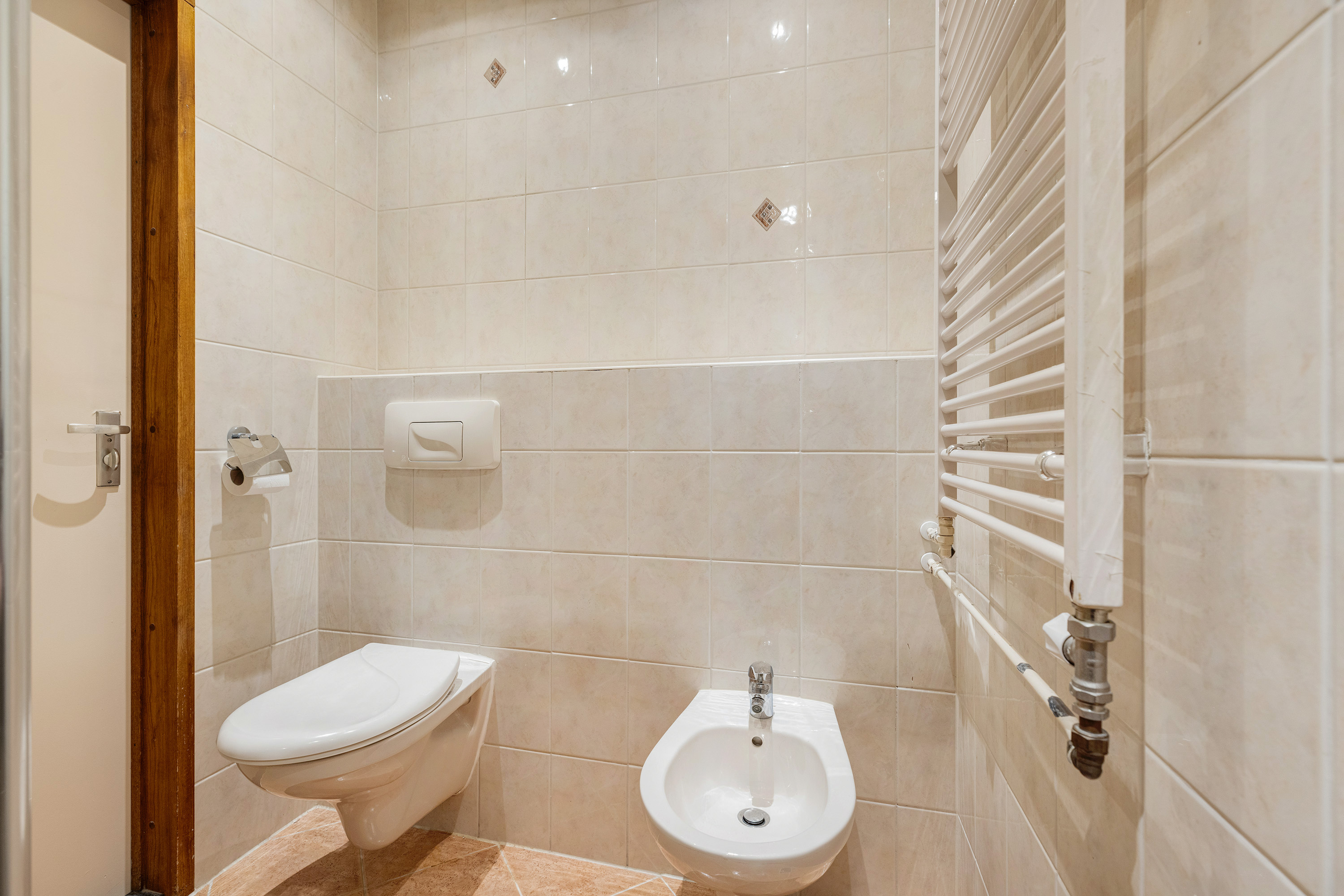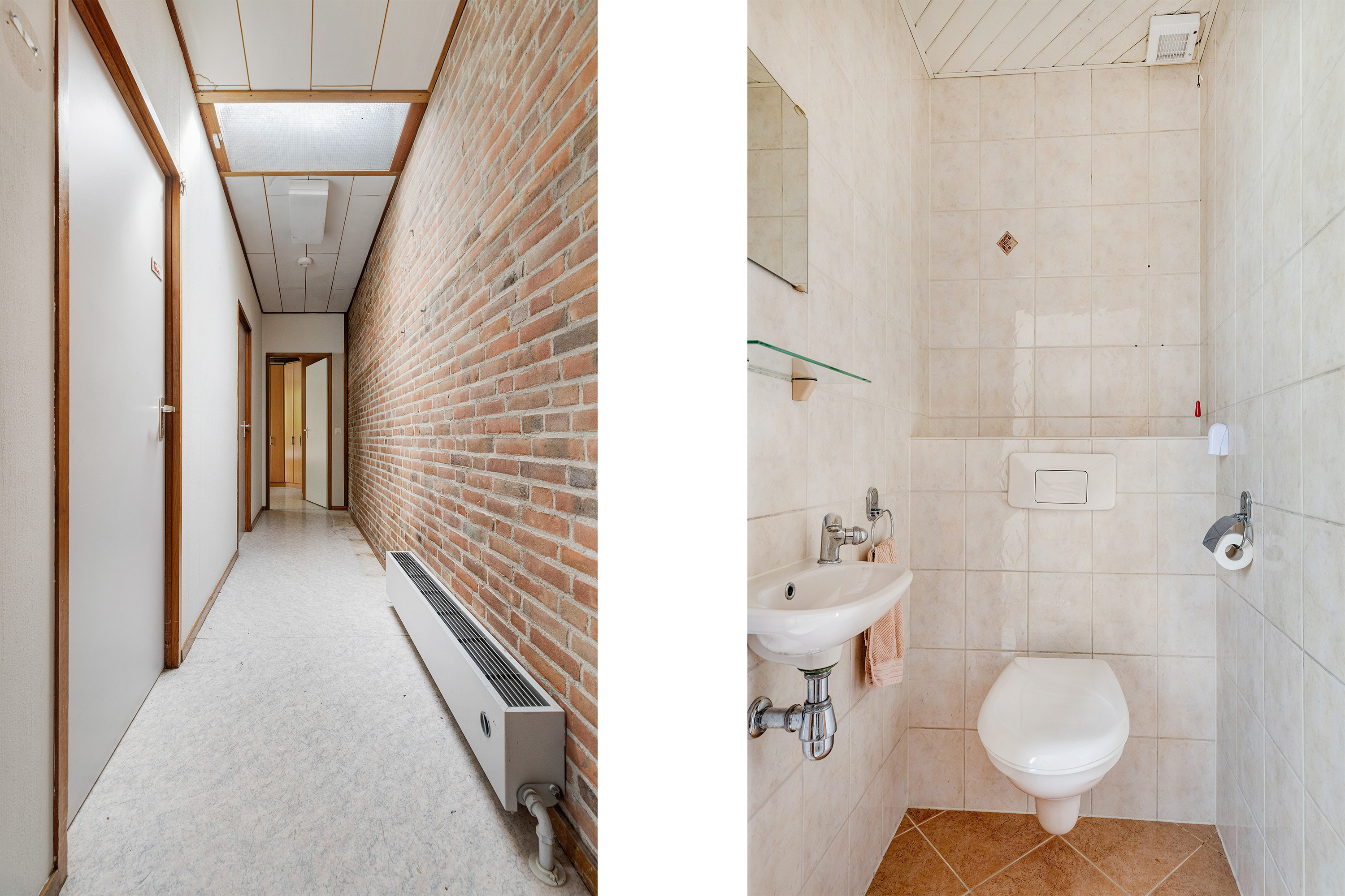 Overloop met aparte WC met fontein, vaste kast, stookruimte/berging en deur naar de achtertuin