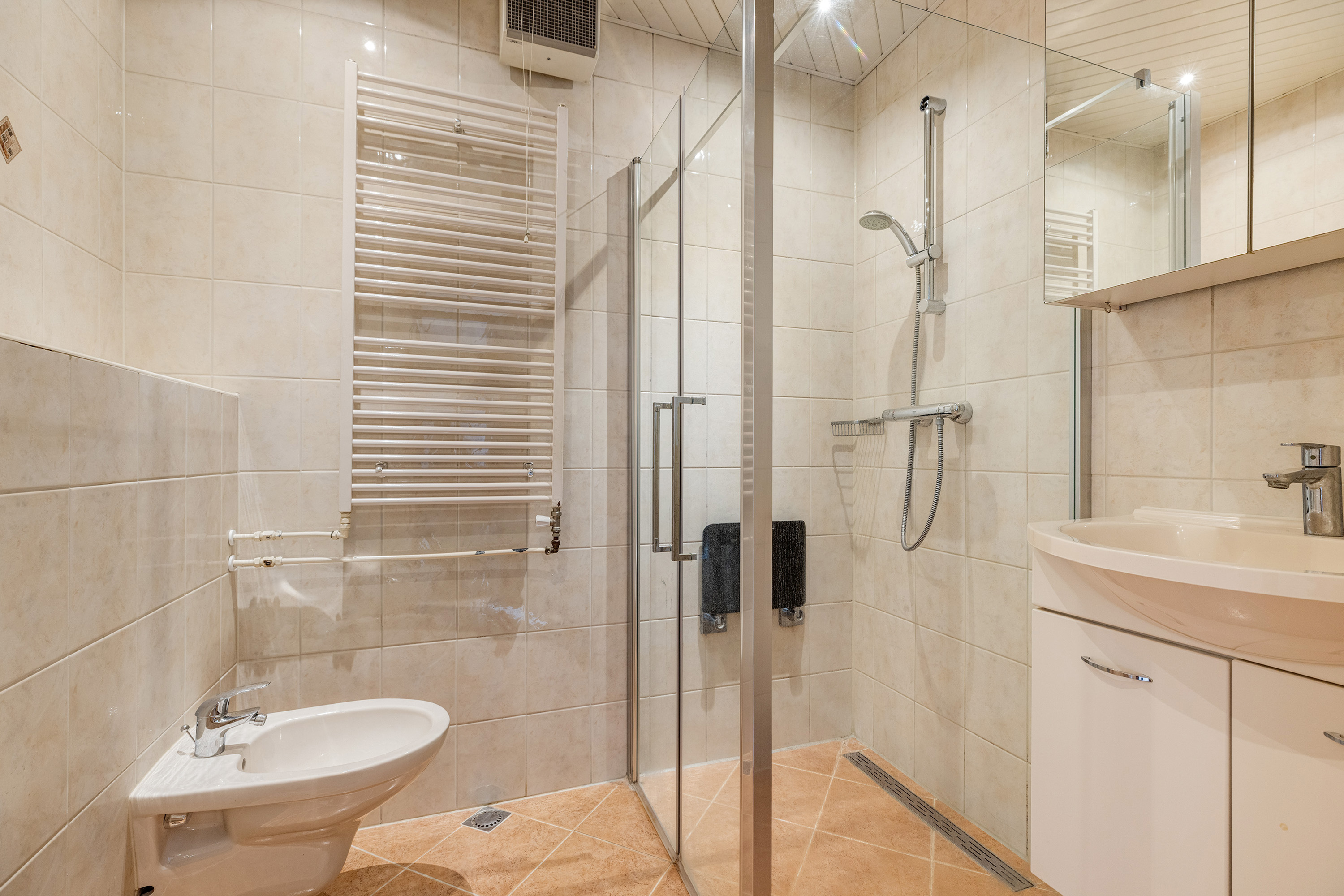 Vanuit de centrale hal is tevens de inpandige garage bereikbaar. Deze garage meet ca. 26 m² en is voorzien van een kastenwand, een uitstortgootsteen en aansluiting voor wasapparatuur