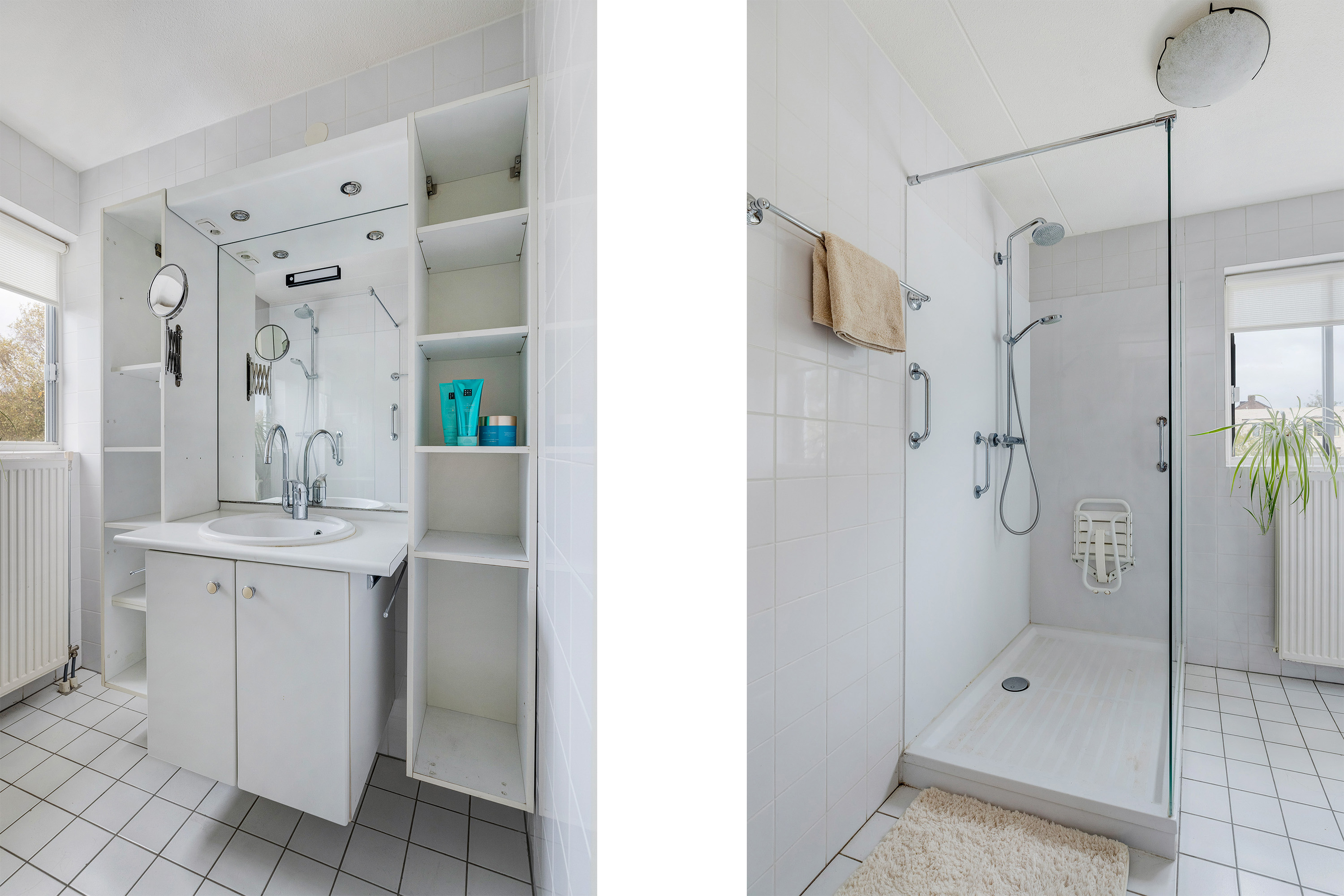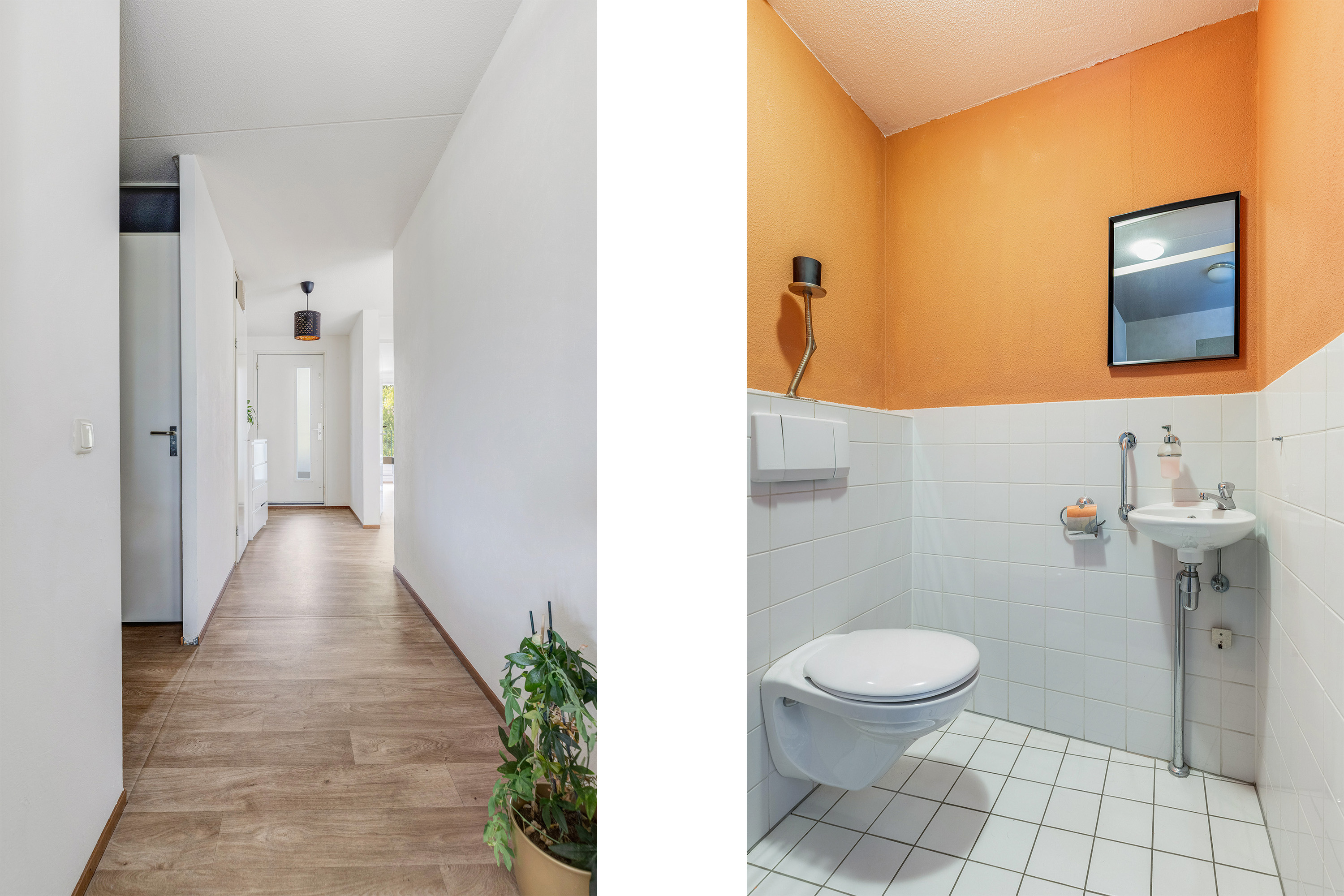 Vanuit de hal zijn alle vertrekken toegankelijk en bevinden zich onder andere het moderne toilet met fontein, een 2e hal met garderobekast, de meterkast en de videofooninstallatie;