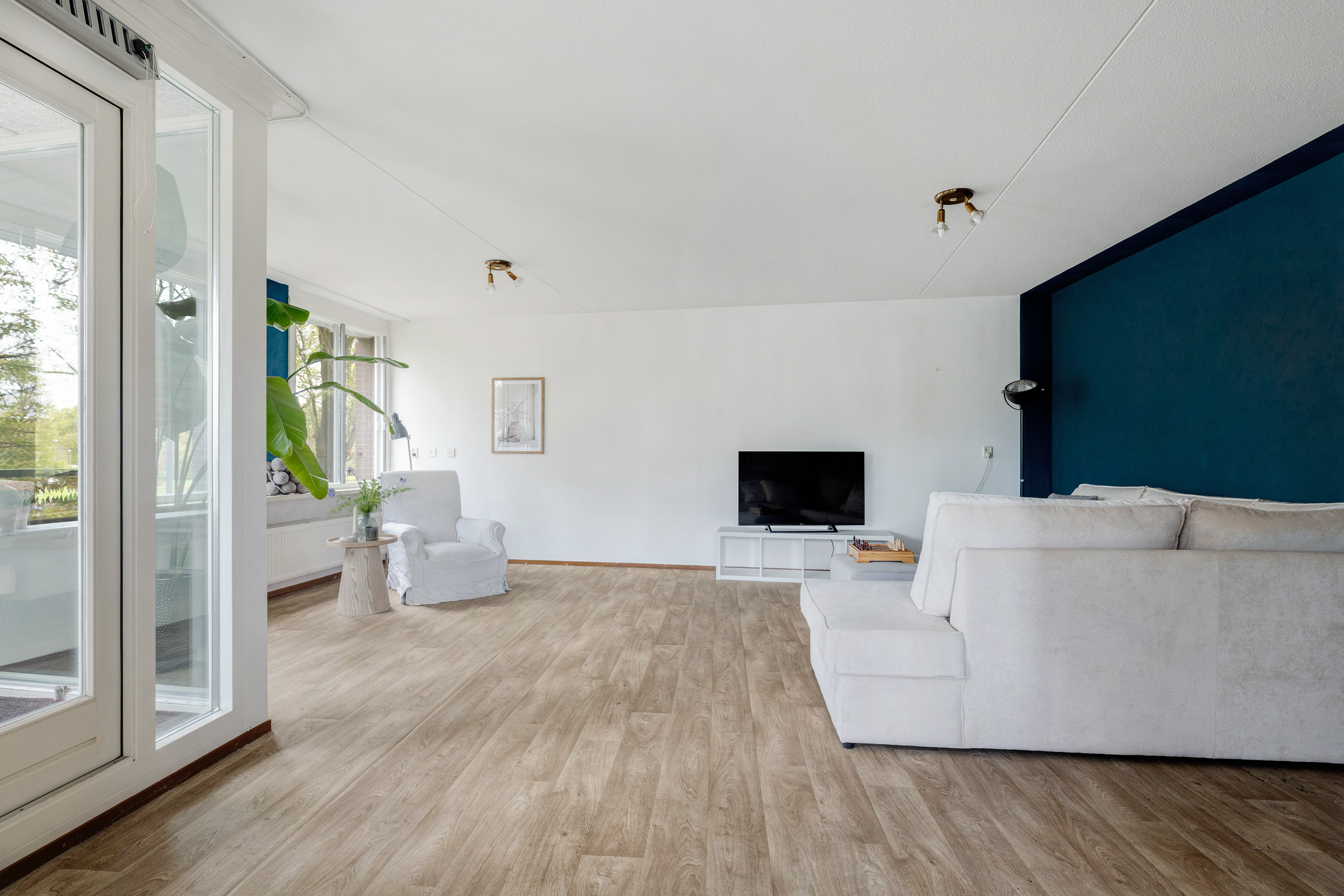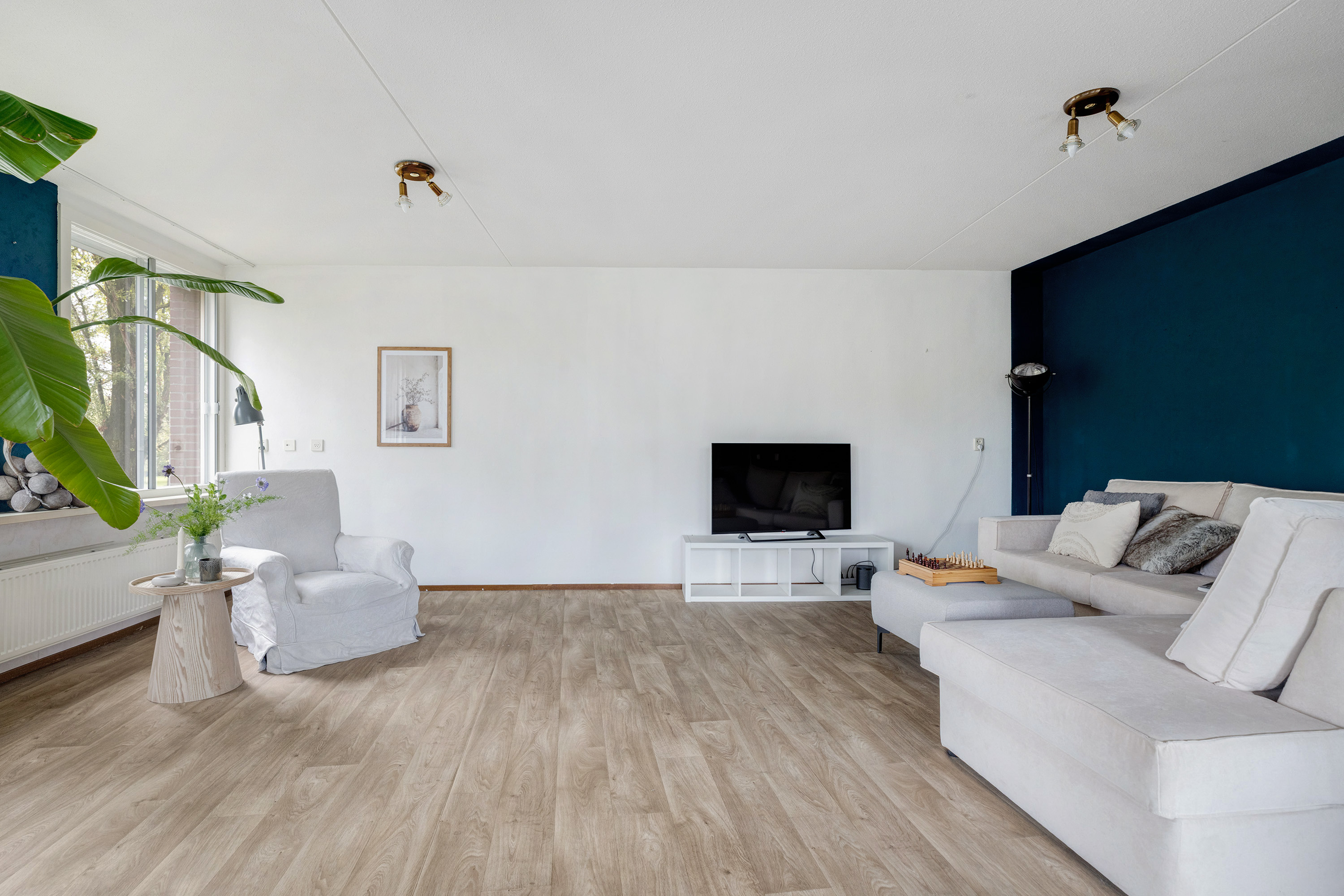Lichte woonkamer met aan twee zijden ramen, afsluitbare balkon van (ca 1.82 x 4.60 m);