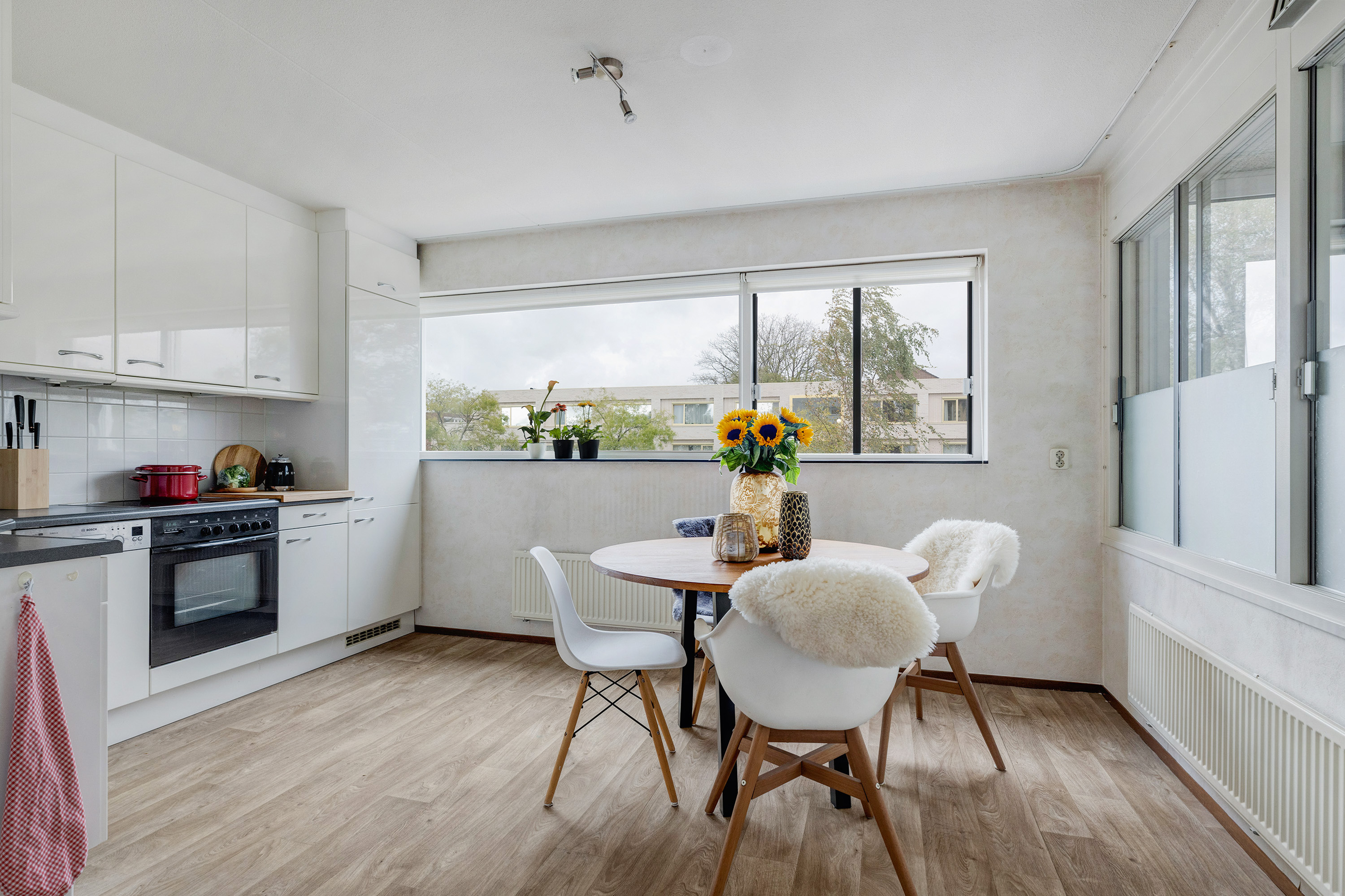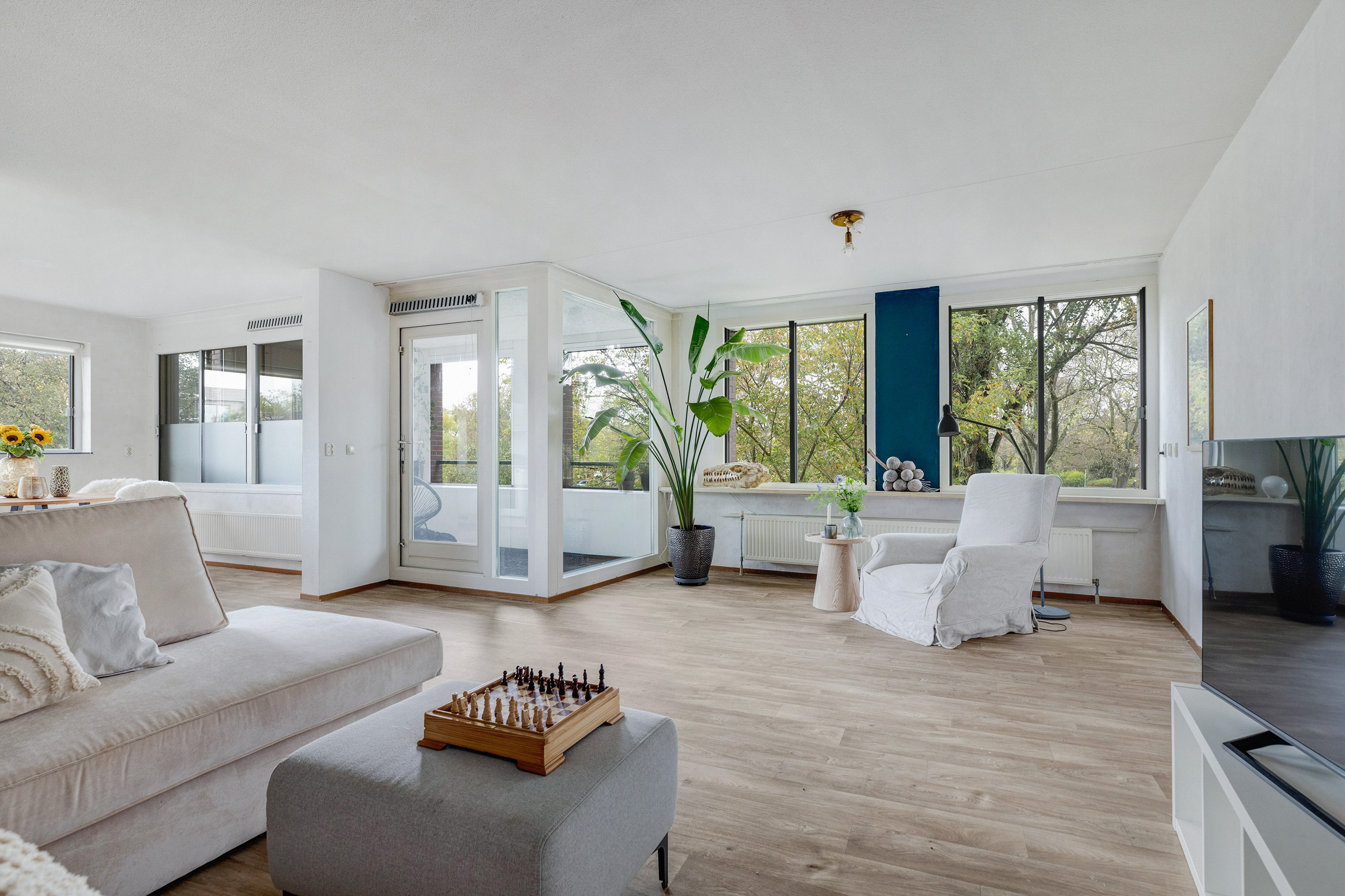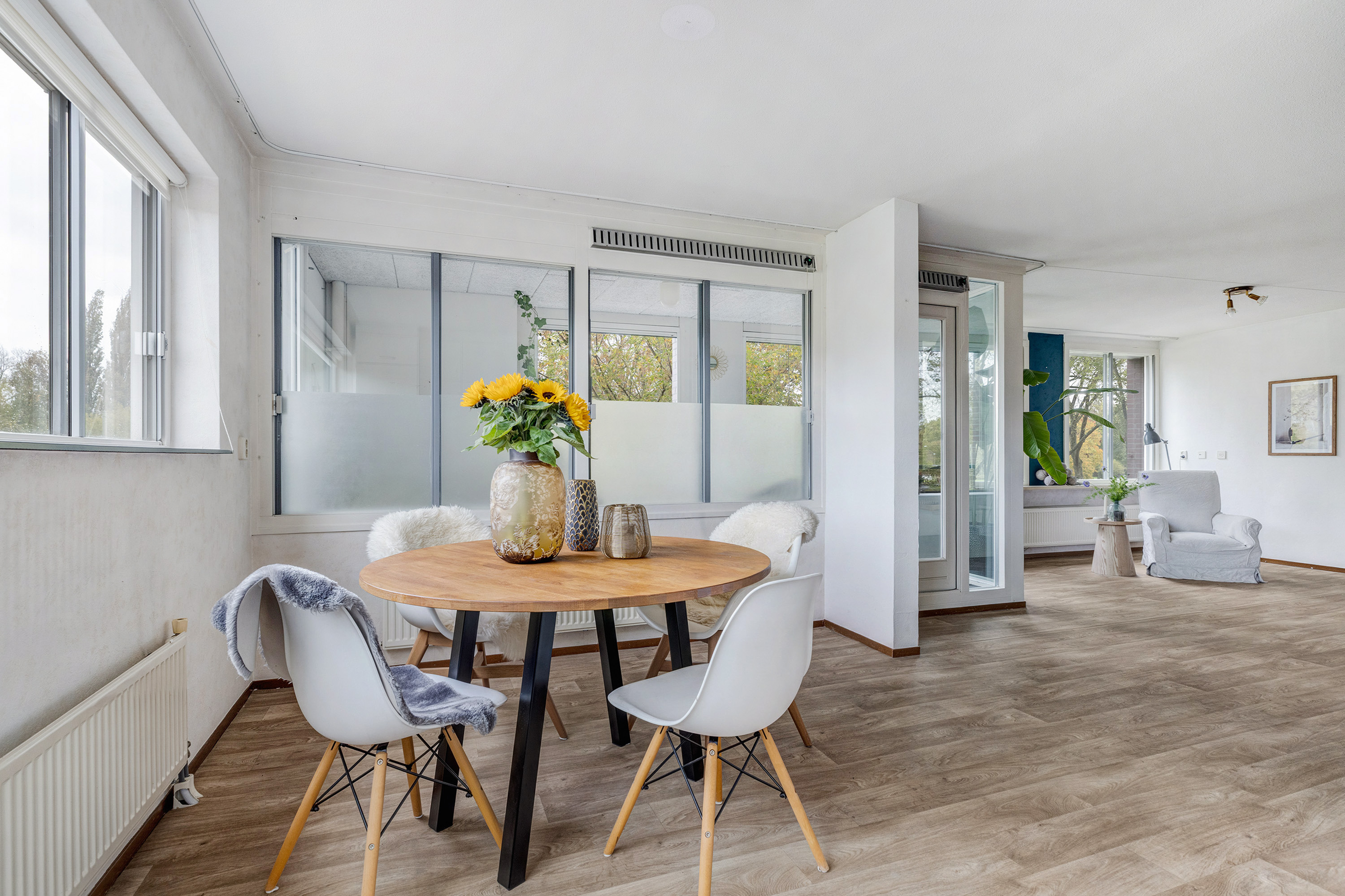 Dankzij de hoekligging is het appartement heerlijk licht en geniet u van extra privacy. De woonkamer sluit aan op de eetkamer en keuken met zijraam, en via de woonkamer bereikt u het afsluitbare balkon waar u beschut van het buitenleven geniet.