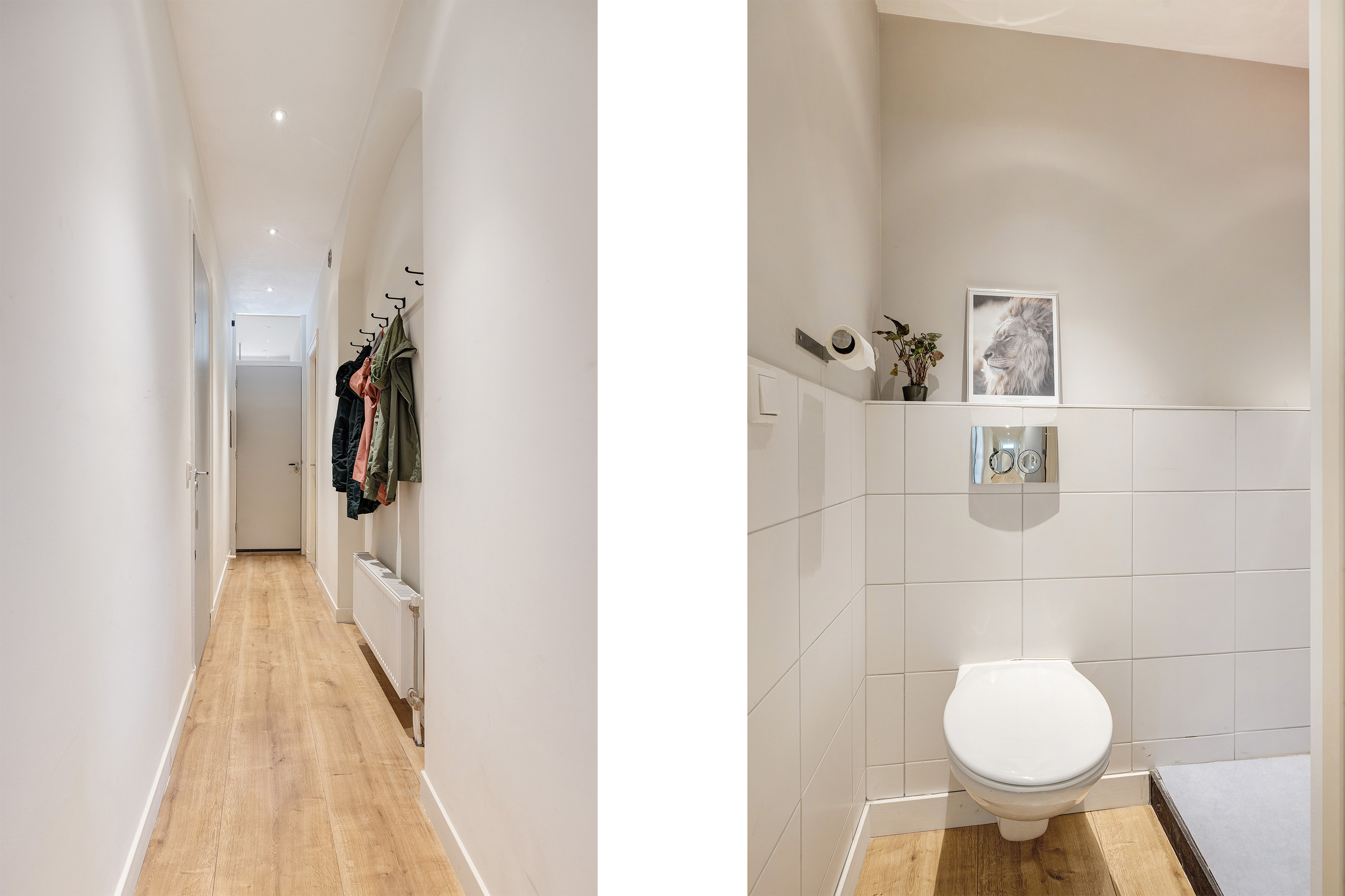 Ruime hal met separaat toilet en een praktische ruimte voor wasmachine en cv-combiketel;