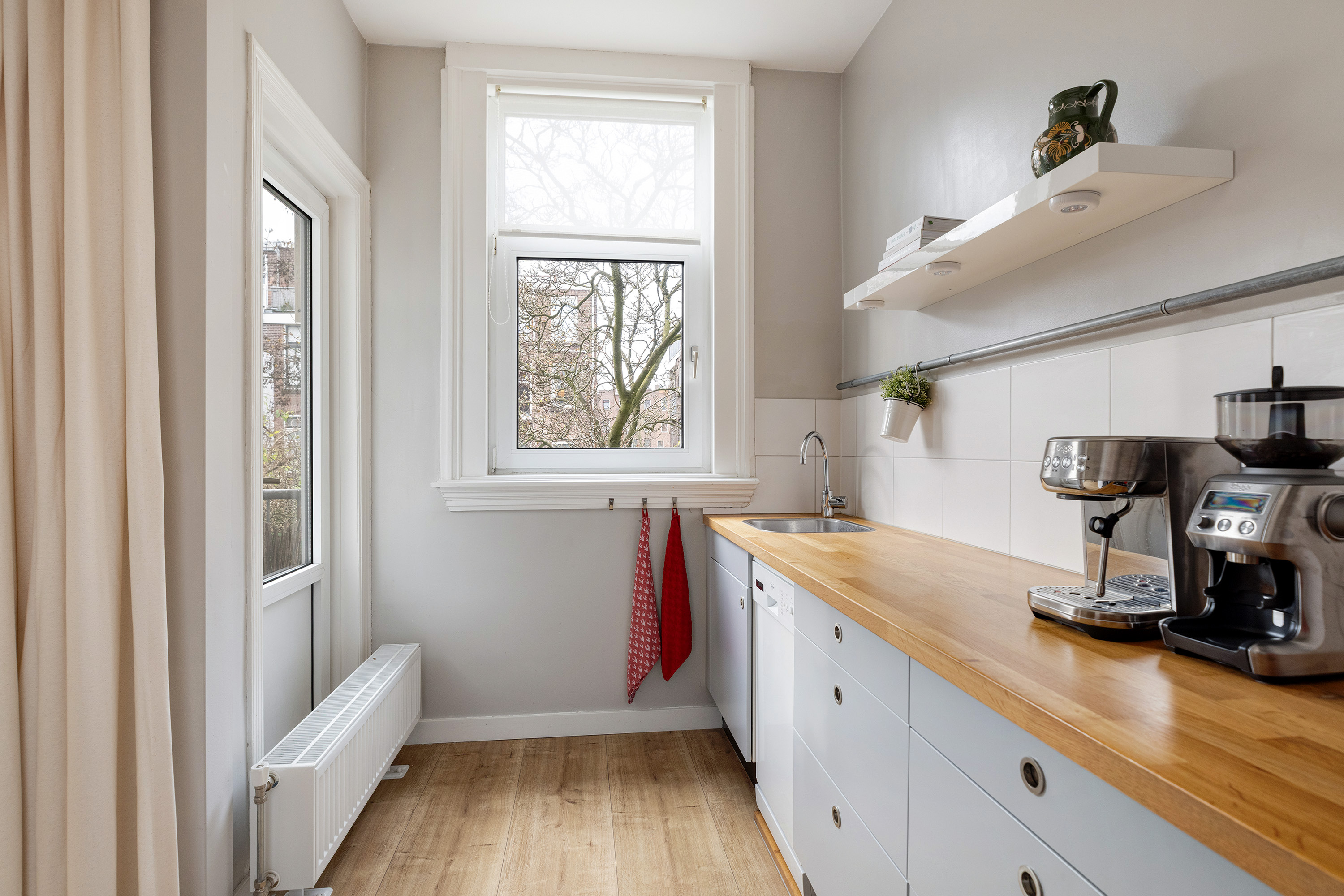 Dit sfeervolle en smaakvol gerenoveerde hoekappartement uit 1912 combineert karakter met een strakke, moderne afwerking. Met ca. 60 m² woonoppervlakte, een hoog plafond van maar liefst 2.80 meter en veel lichtinval voelt de woning verrassend ruim aan. De royale woonkamer met eetgedeelte is licht en prettig ingedeeld; vanuit de eetkamer is het balkon op het westen bereikbaar, waar je heerlijk van de middag- en avondzon geniet. Via de ruime hal zijn de slaapkamer, de moderne badkamer en het separate toilet toegankelijk. Gelegen in het populaire en karakteristieke Liskwartier, met een actieve VvE, is dit een plek waar comfort, sfeer en stadse levendigheid samenkomen.