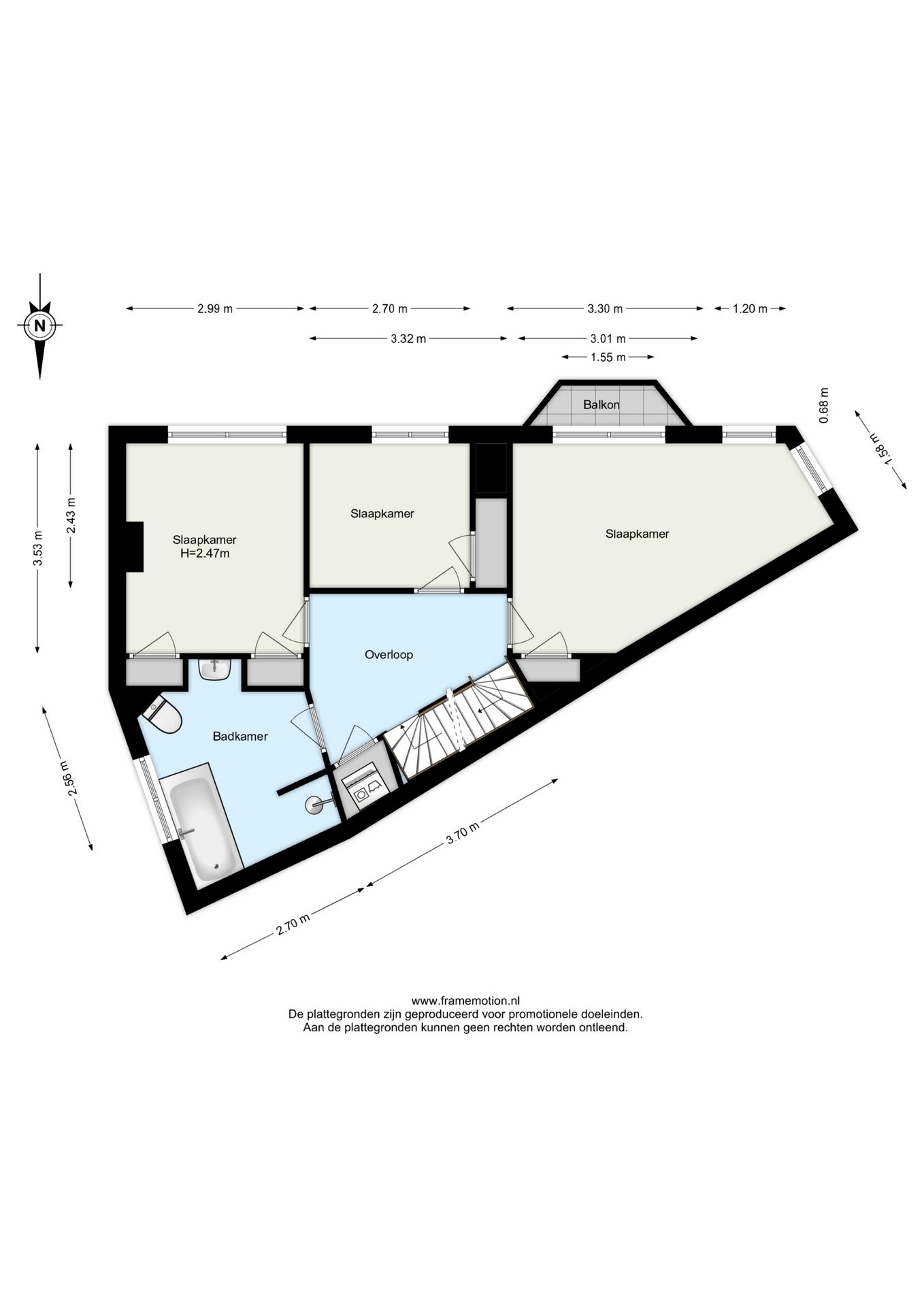 Overloop met toegang tot drie slaapkamers en trap naar de 2e verdieping.