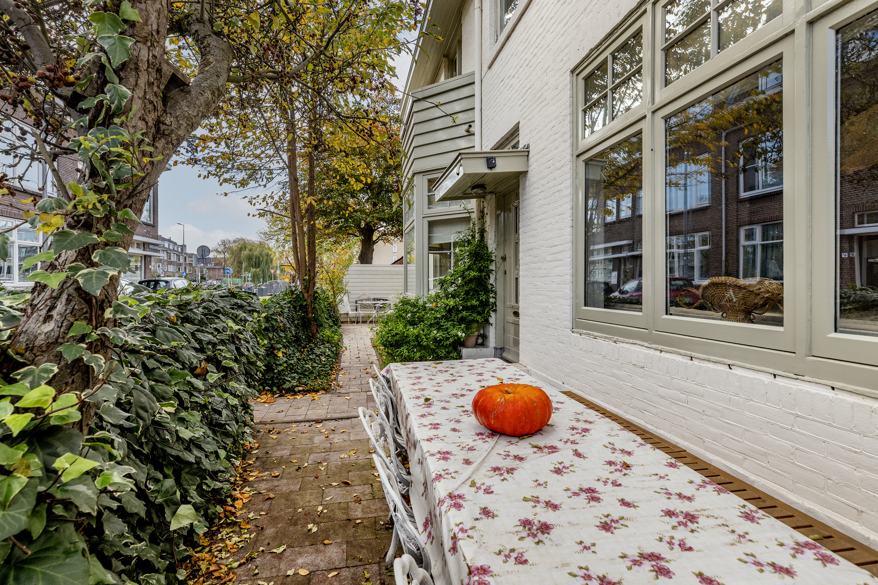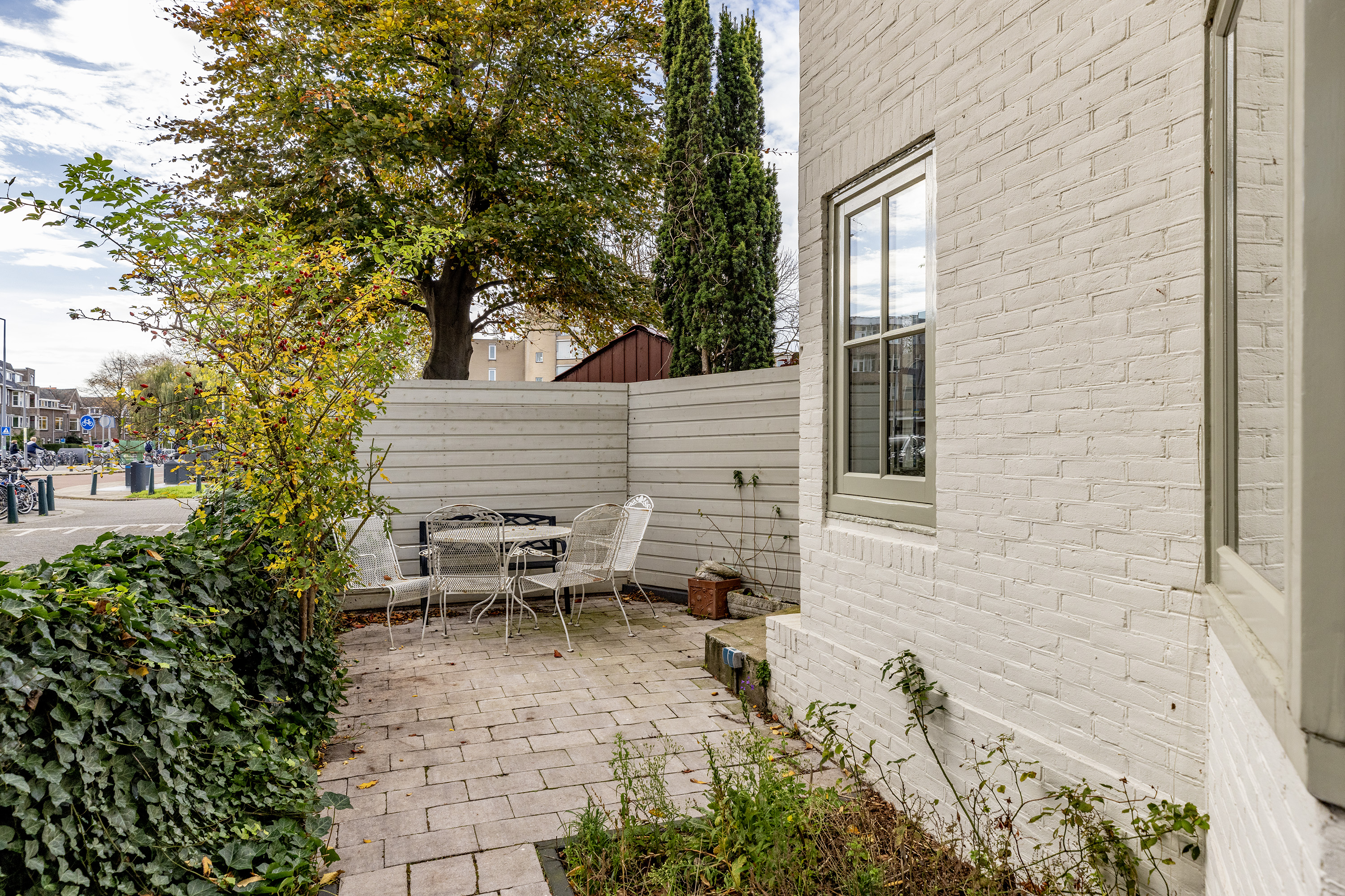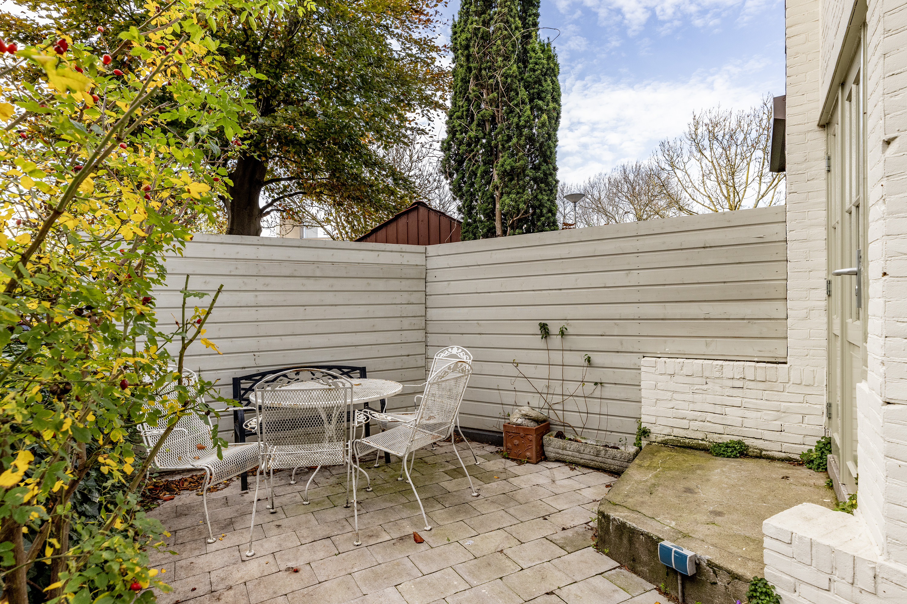 De woning ligt aan een verkeersluwe straat in een rustige, groene omgeving. Zowel de zonnige voortuin (zuid) als de achterplaats zijn niet groot, maar precies goed om heerlijk buiten te zitten.