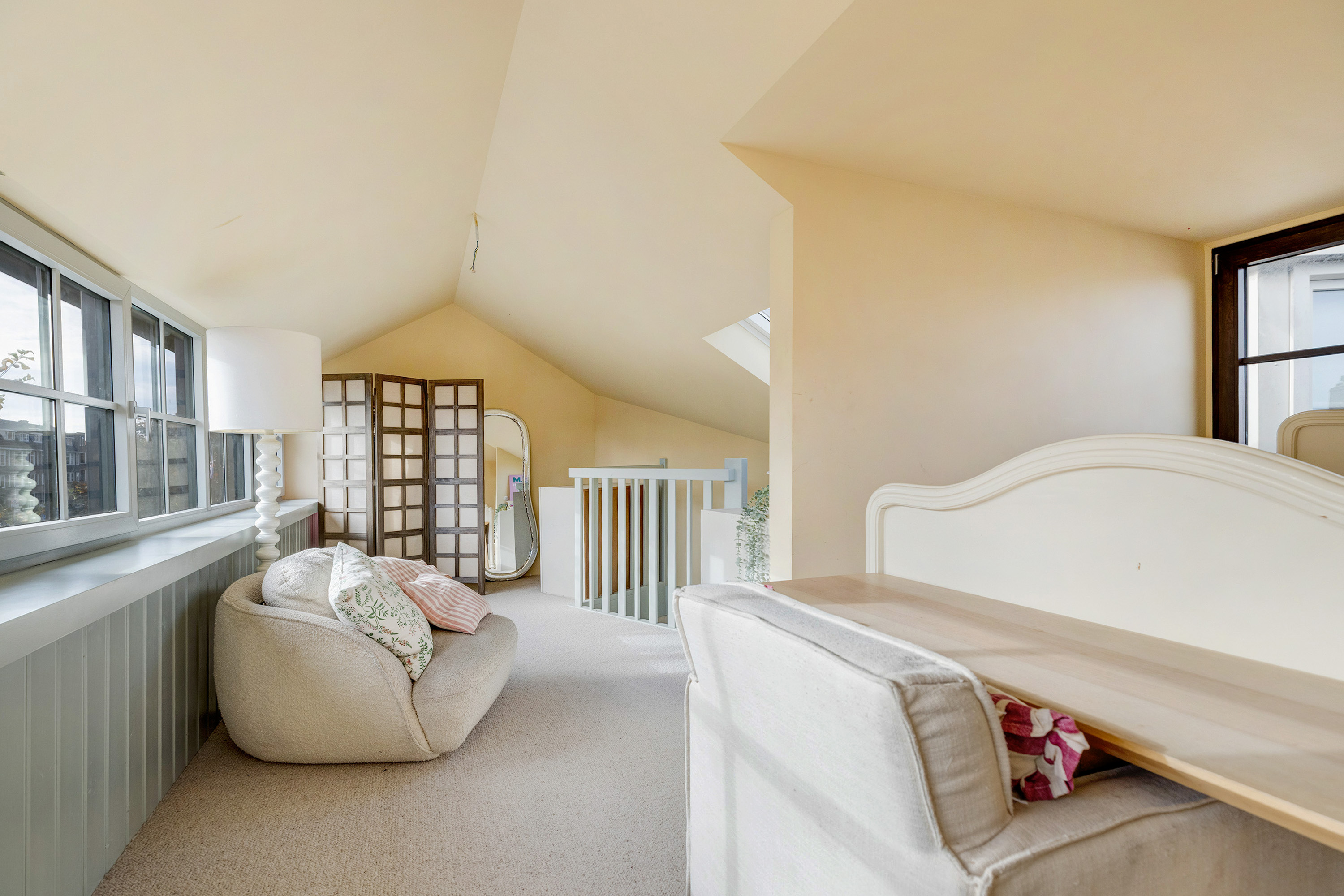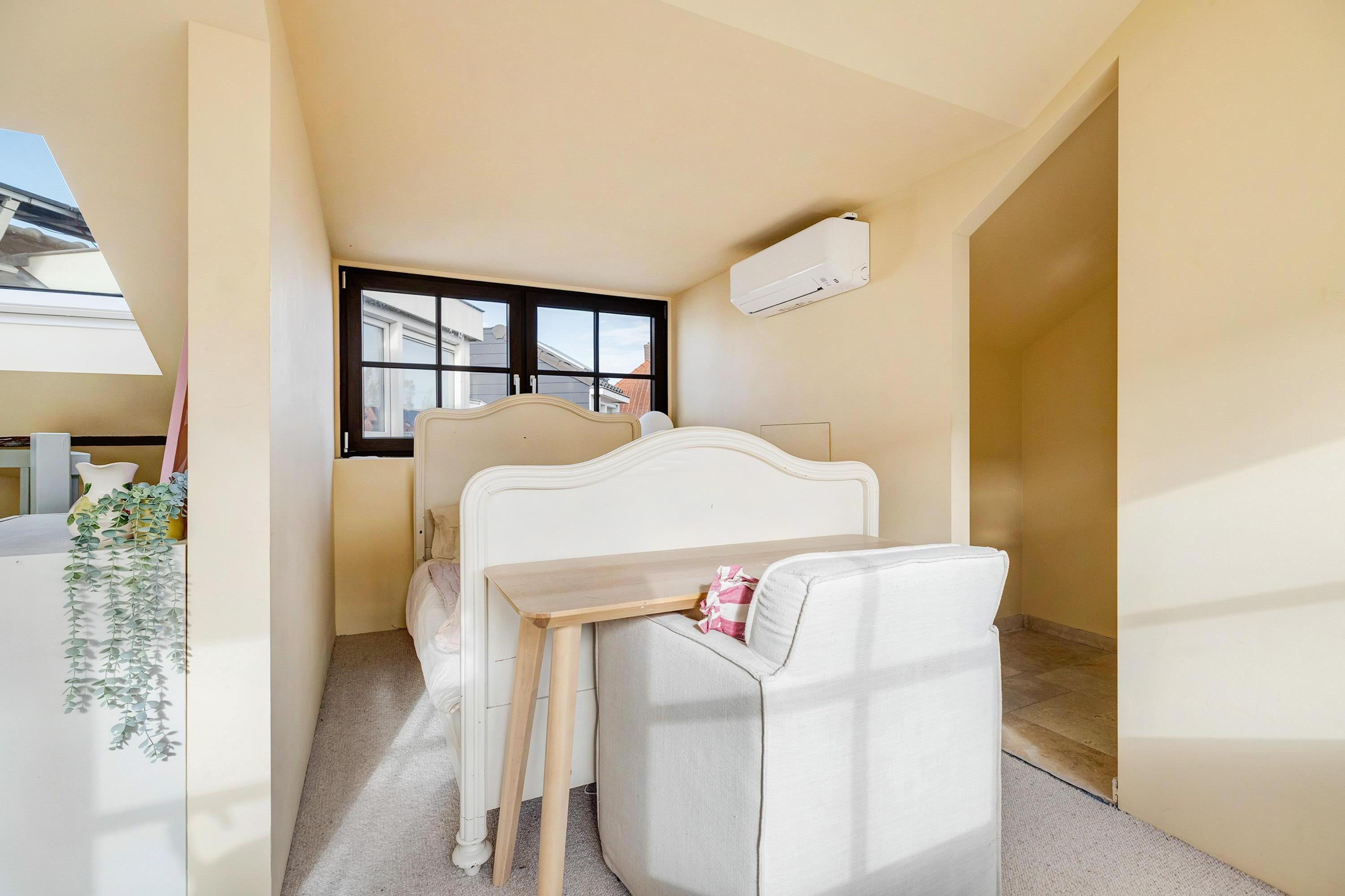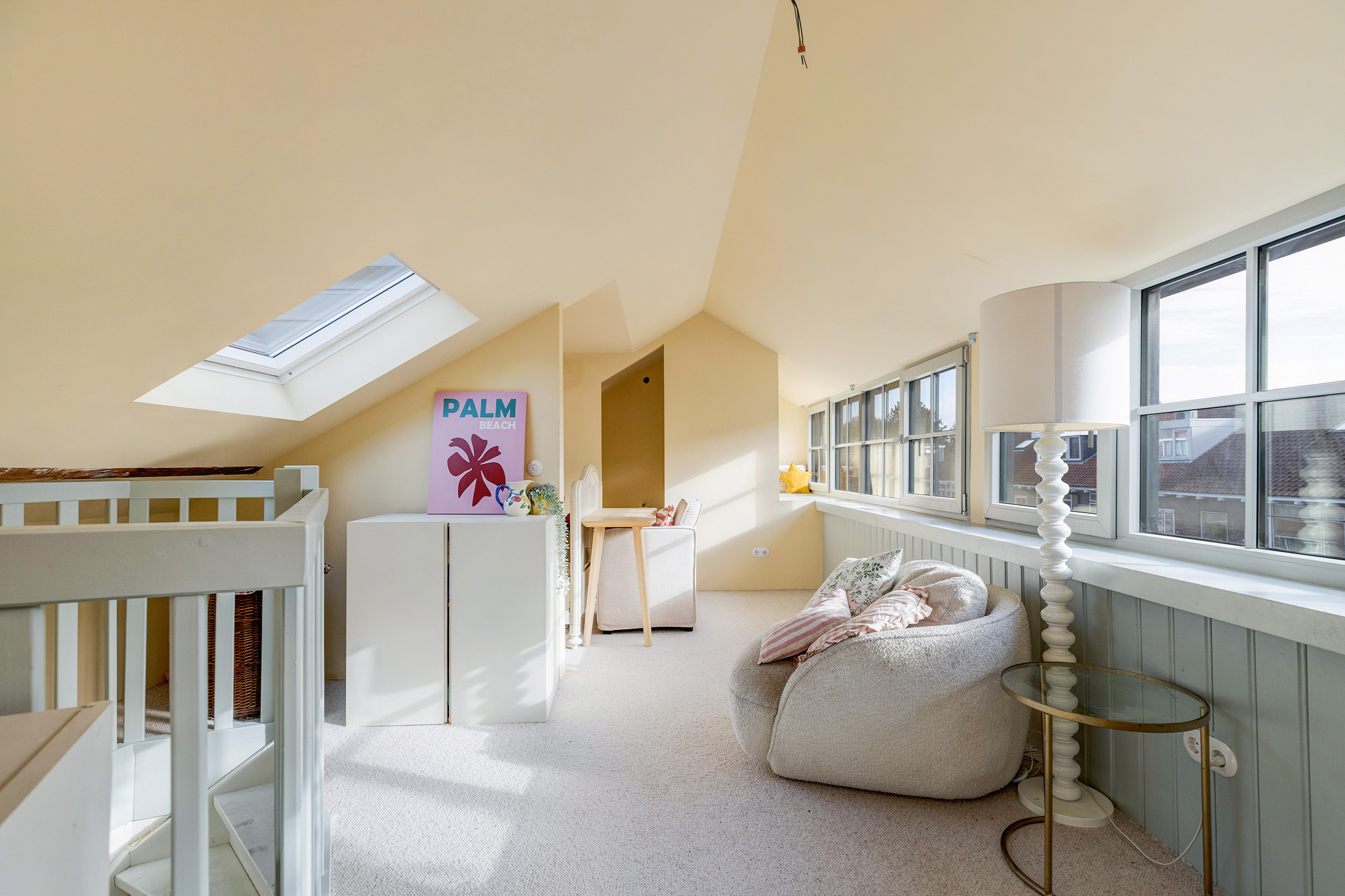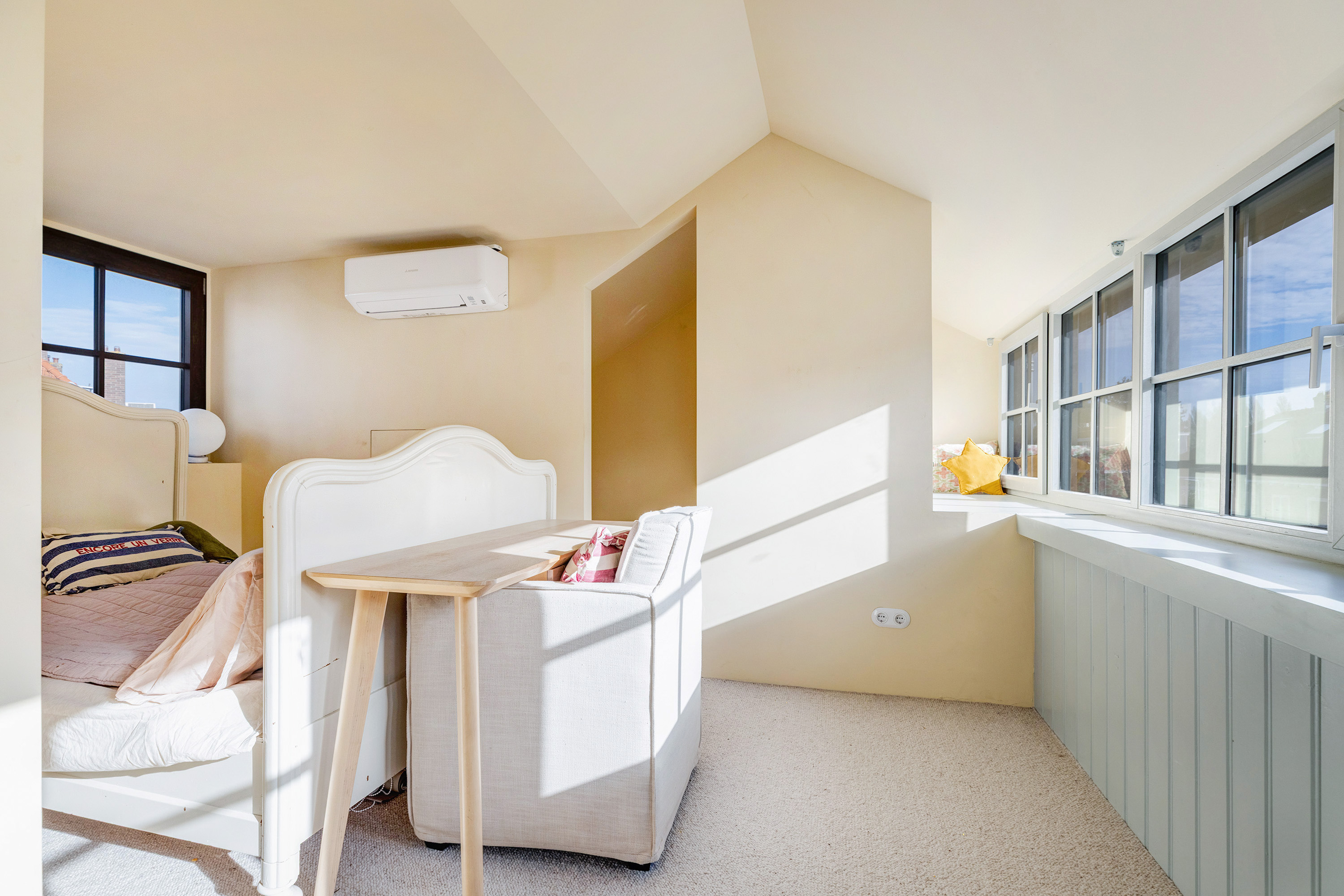 Vierde slaapkamer met groot dakkapel, veel licht en een ruimtelijk gevoel. Aangrenzend bevindt zich een ruimte met aansluitingen en tegels voor het realiseren van een tweede badkamer. Dankzij de airco is het hier het hele jaar door comfortabel: koel in de zomer en warm in de winter.