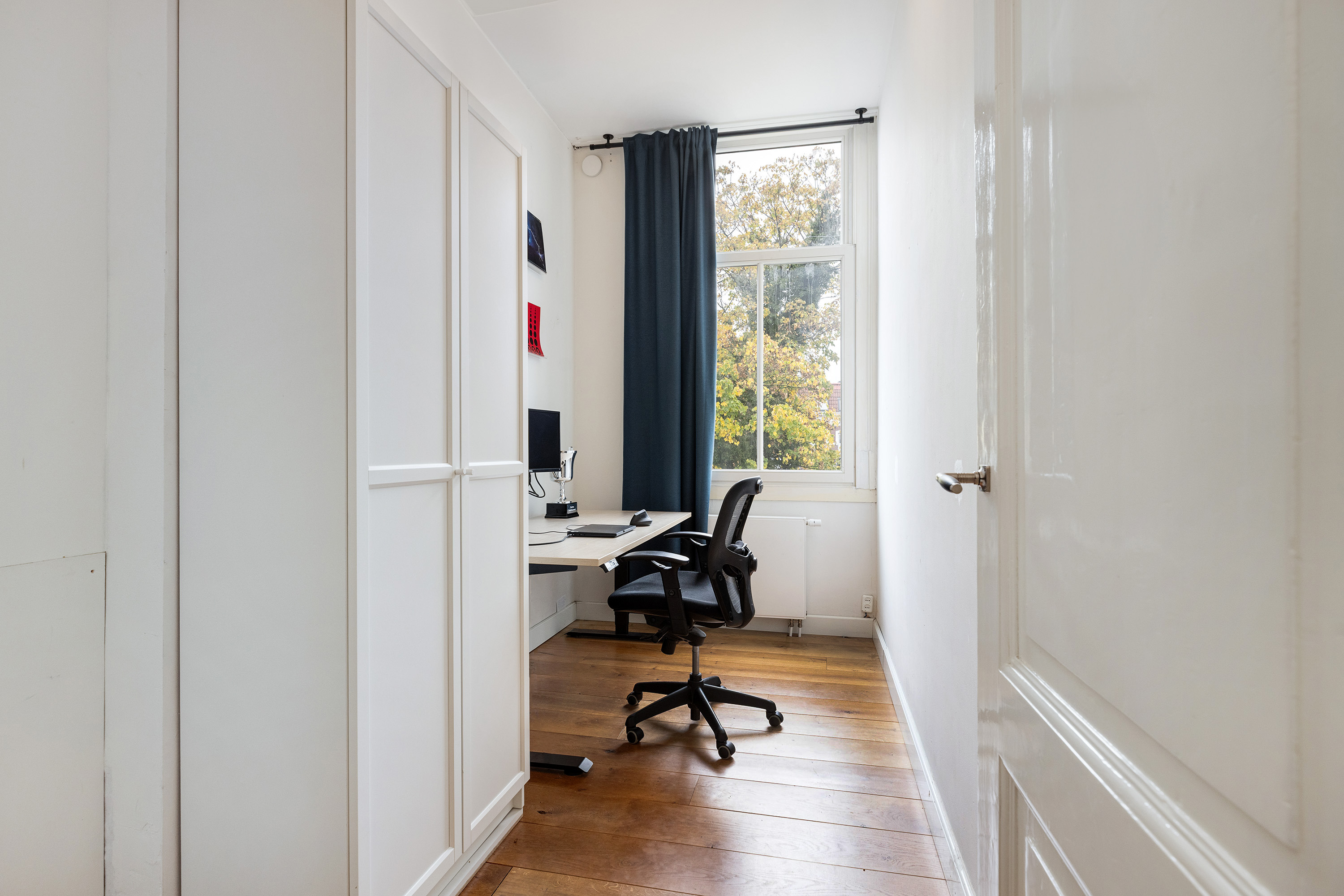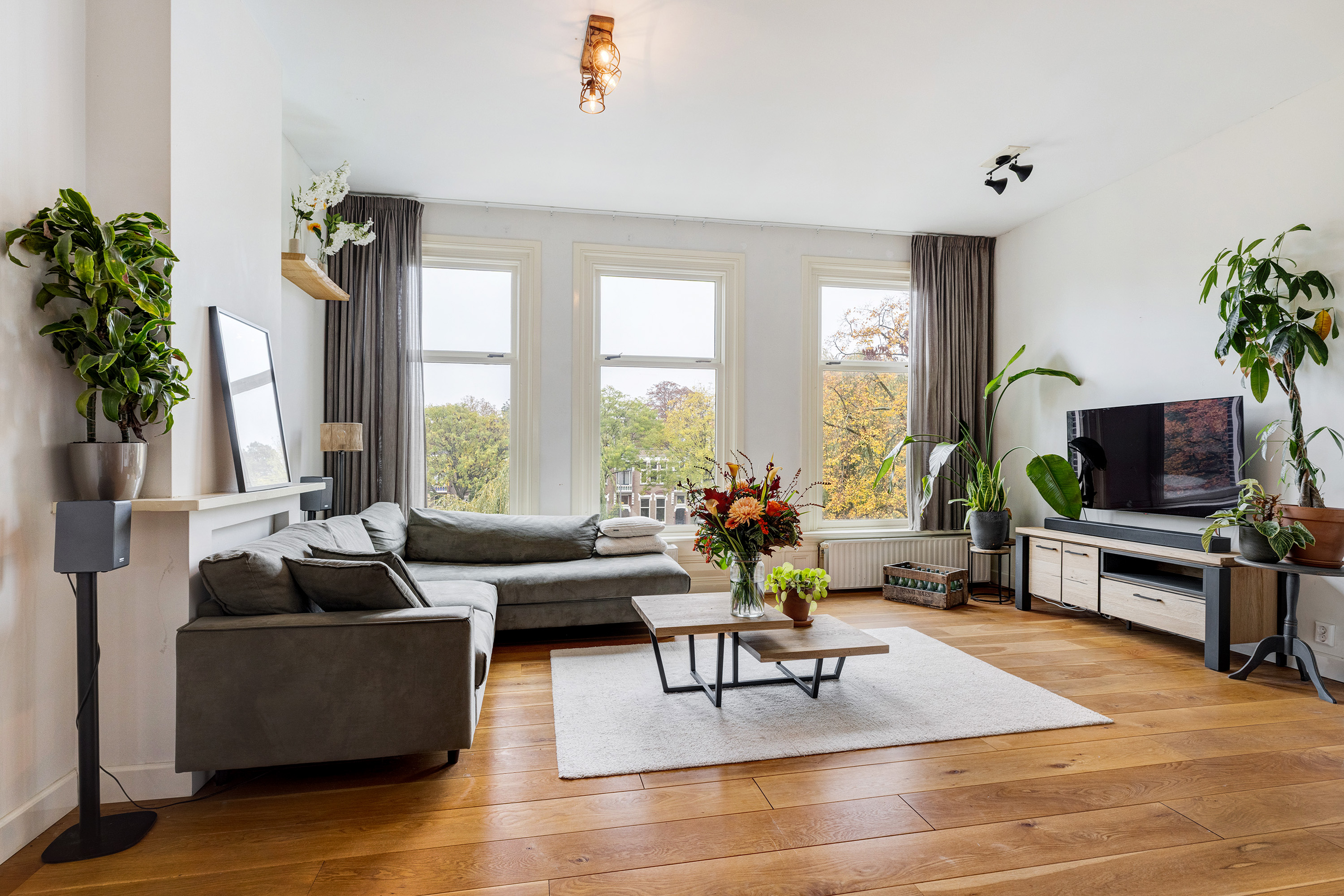 De lichte woonkamer van ca. 50 m² biedt een prachtig uitzicht over de groene singel en valt op door de hoge plafonds, grote ramen en massief eiken vloer. De woning (149 m²) beschikt over een ruime woonkamer, drie slaapkamers, een nieuwe keuken en toilet, en is goed onderhouden. In 2015 is bovendien de fundering volledig vernieuwd.
