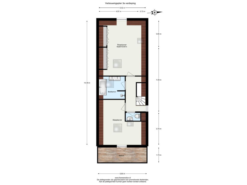 Een verbouwingsplan voor de 3e verdieping is als plattegrond bijgevoegd.