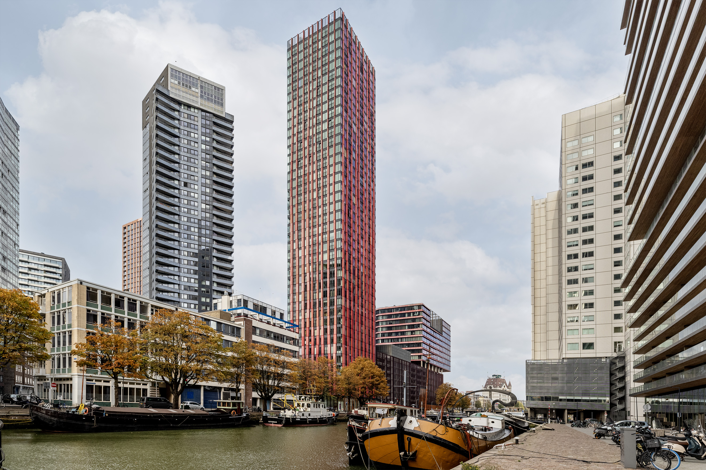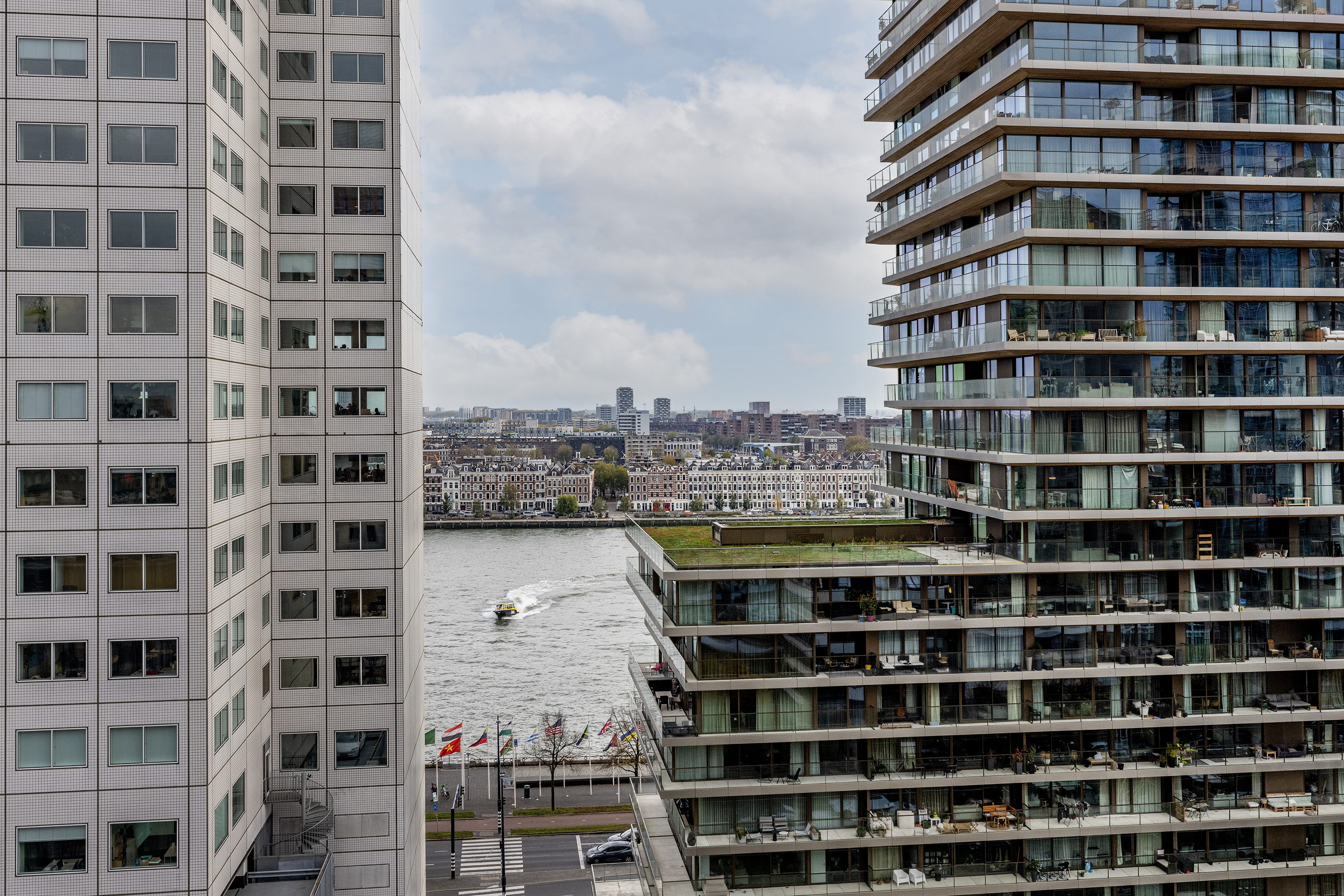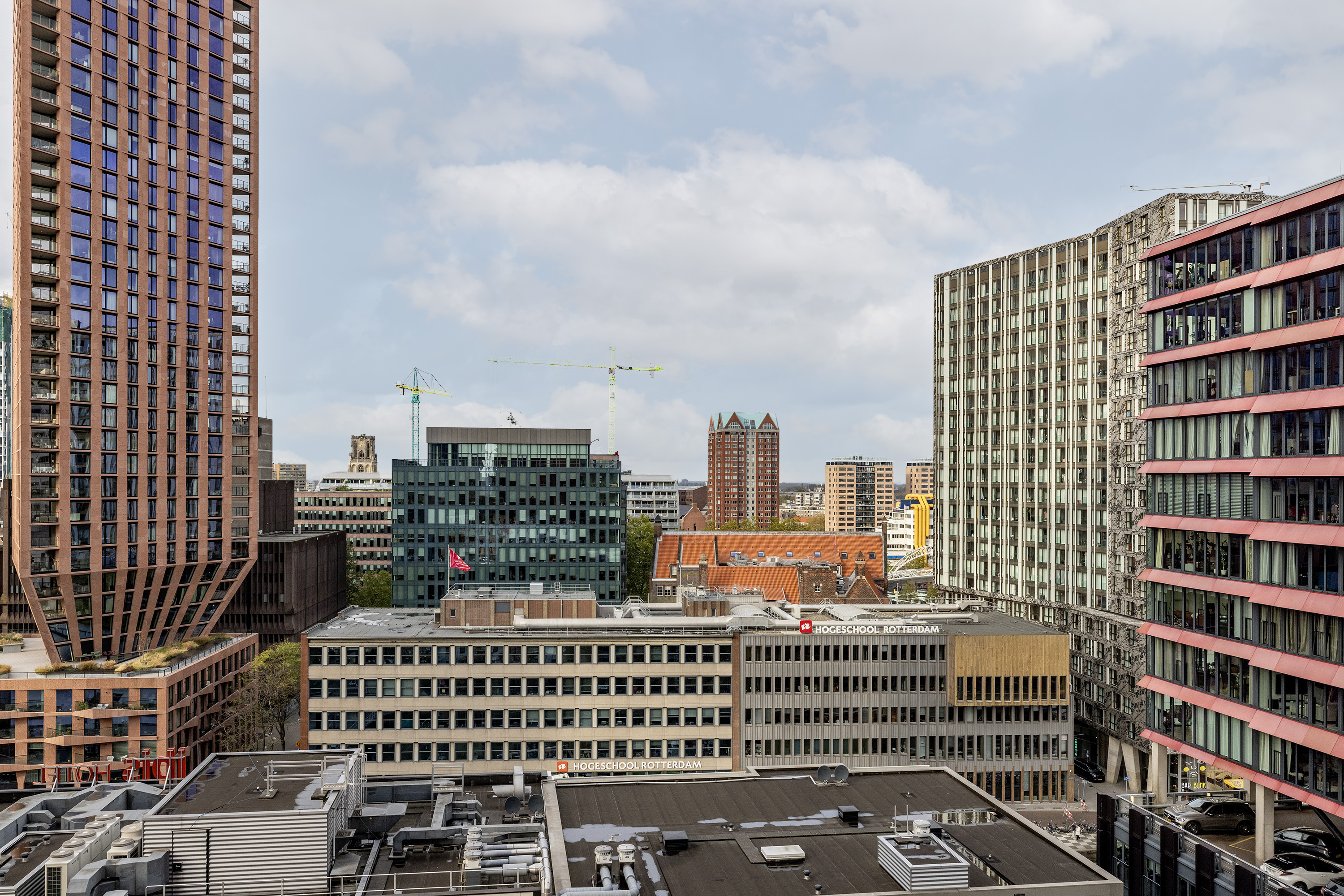 Dit lichte HOEK-appartement, gesitueerd op de 13e verdieping in de moderne woontoren de Red Apple‚ biedt een schitterende panorama over de Maas, stadscentrum, de Kralingse Plas en weide omgeving! Het complex is gebouwd in 2009.