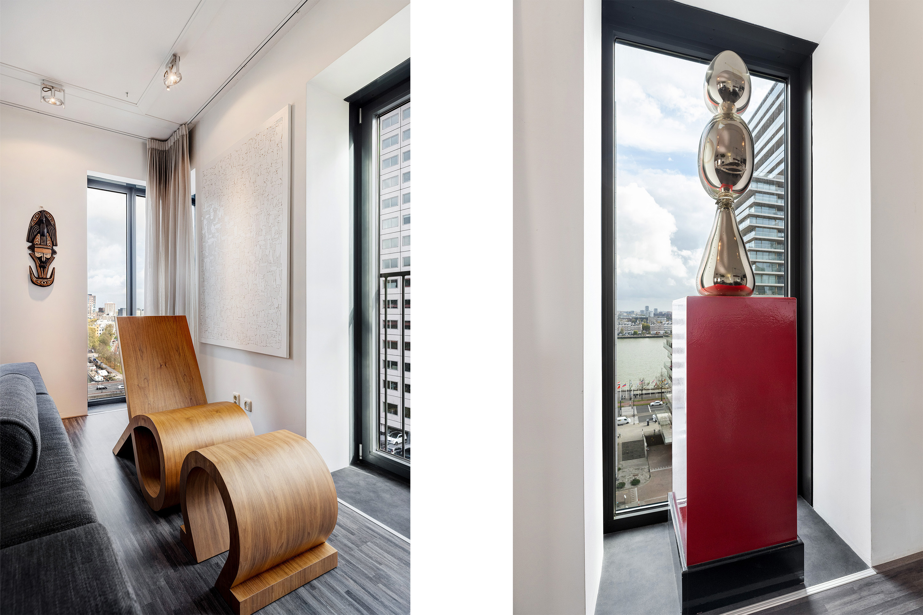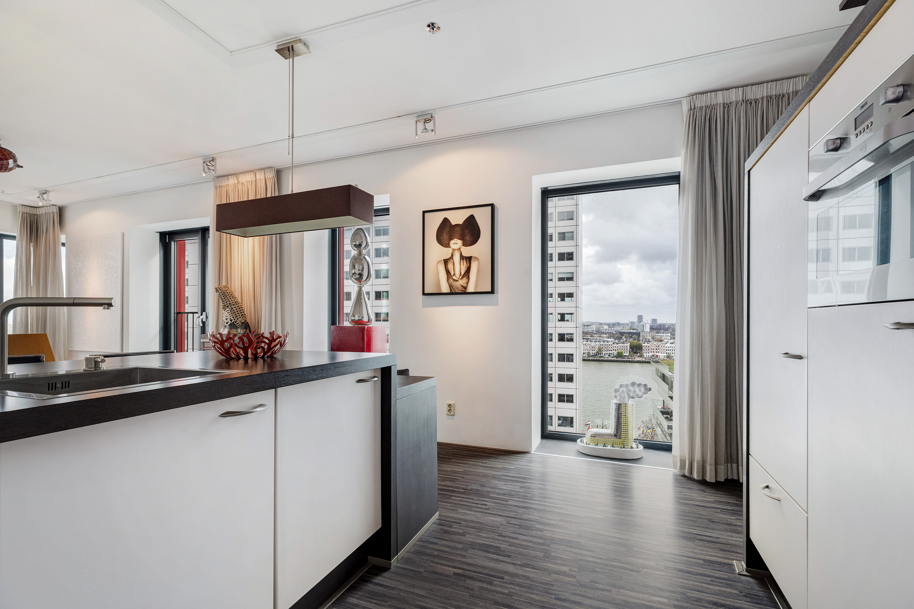 Het appartement zelf heeft een goede indeling en is instapklaar te noemen. De glaspartijen rondom maken het uitzicht in 1 woord: spectaculair! Zeer gunstige ligging, op loopafstand van o.a. restaurantjes, winkels, openbaar vervoer, de Markthal en de Oude Haven. De stad is tevens binnen directe handbereik. Eigen grond en een jachthaven voor de deur van het appartementencomplex maken het geheel compleet en briljant