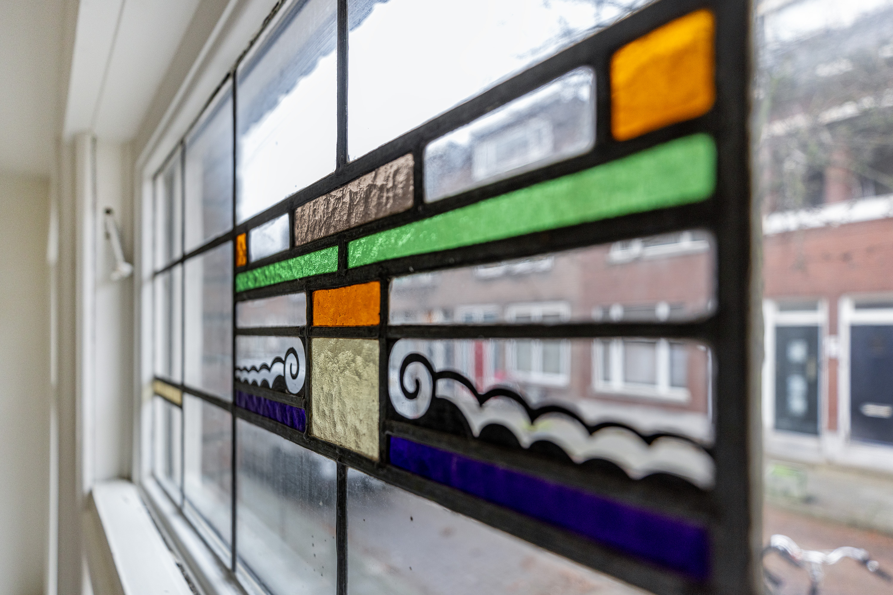 Originele glas-in-lood ramen voorzien van voorzetglas