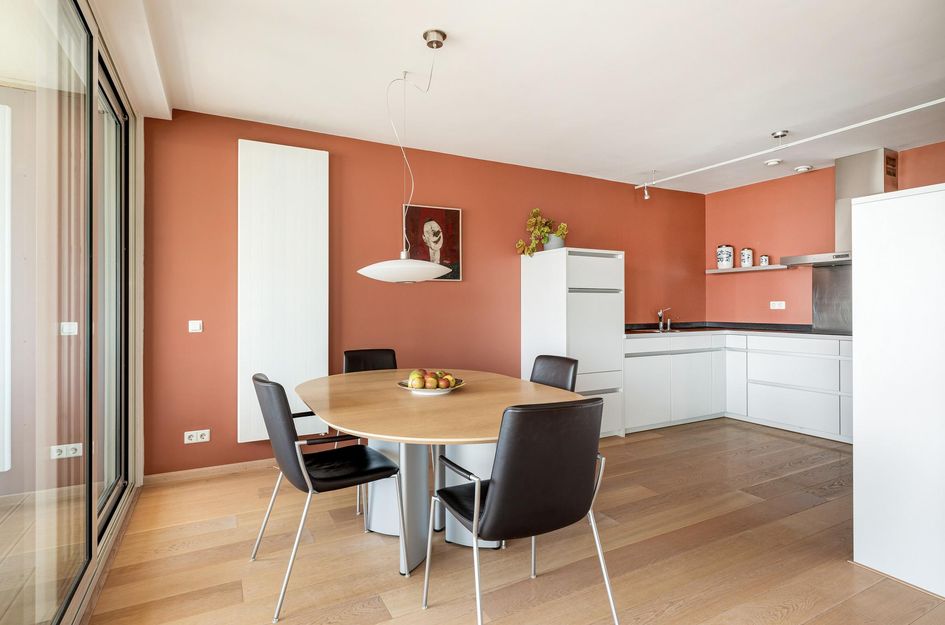 Luxe en ruimtelijk wonen. Dit hoogwaardige appartement is ontworpen met oog voor detail en een verfijnde afwerking. De royale woonruimte baadt in natuurlijk licht dankzij de grote raampartijen en biedt een ongekend gevoel van vrijheid. De open indeling creëert een harmonieuze overgang tussen de living, eetruimte.